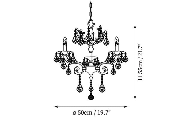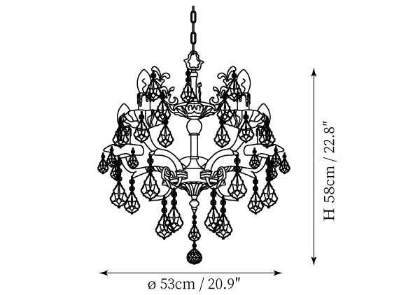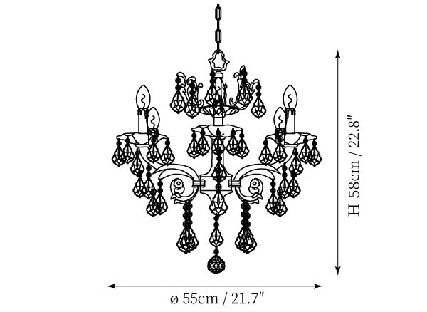 - 6-Lights Size: Dia 55cm x H 58cm / ∅ 21.7″ x H 22.8″