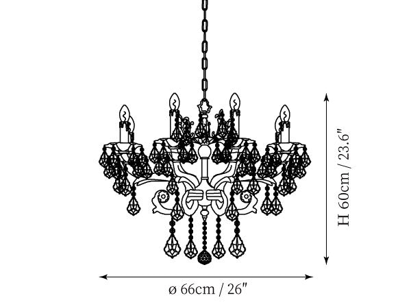 - 8-Lights Size: Dia 66cm x H 60cm / ∅ 26″ x H 23.6″