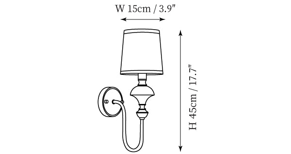 - 1-Light Size: W 15cm x H 45cm / W 3.9″ x H 17.7″