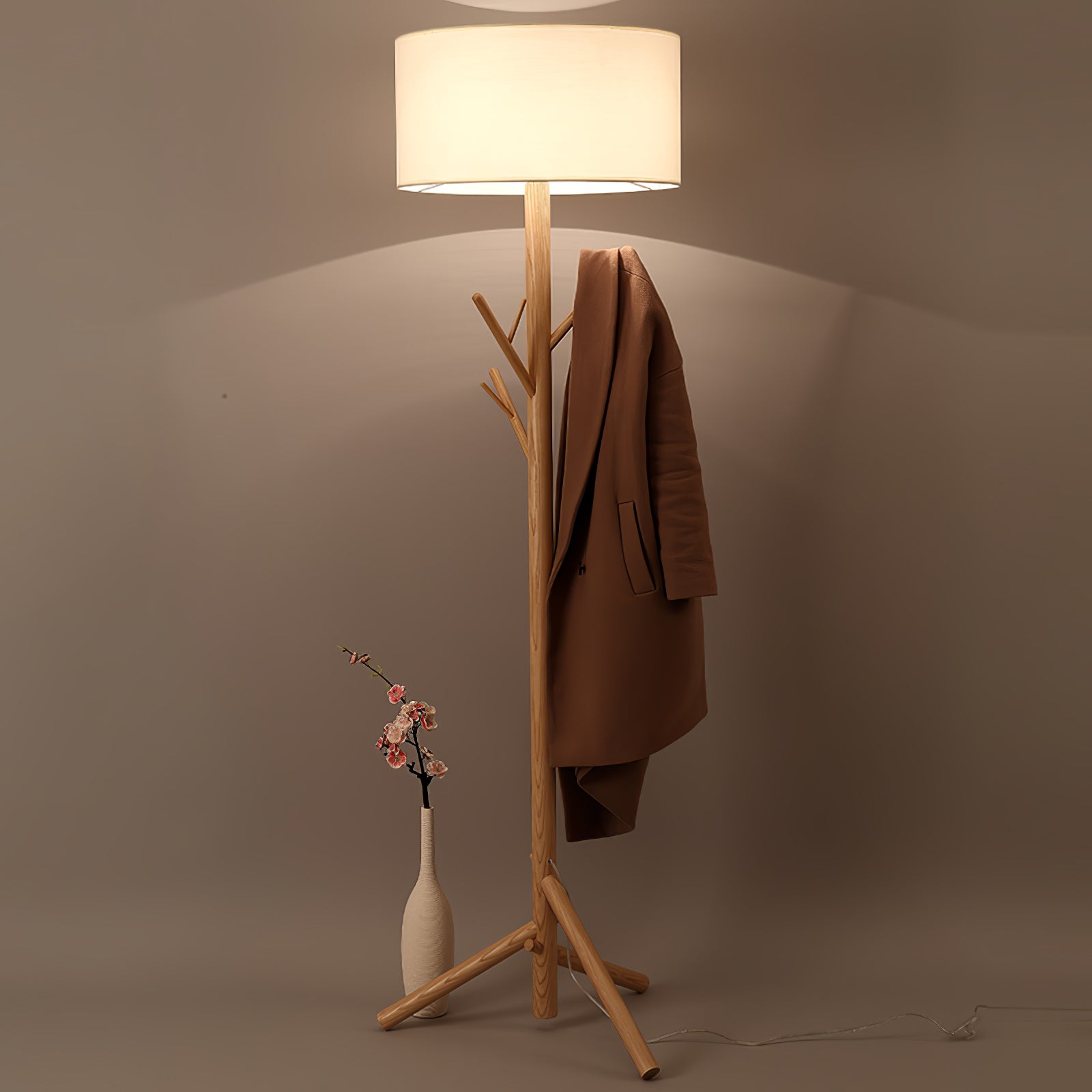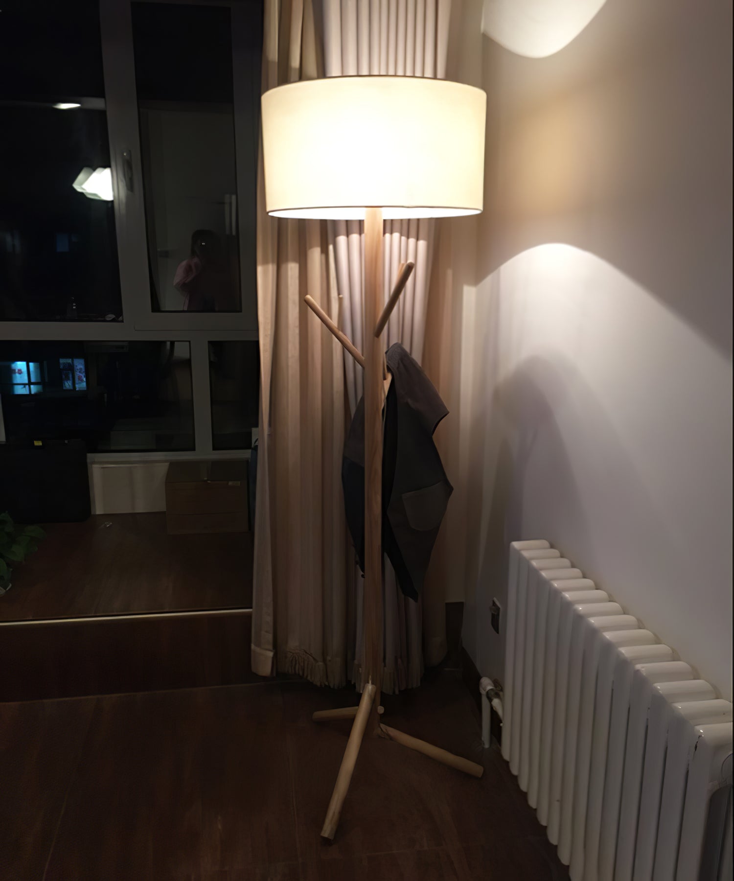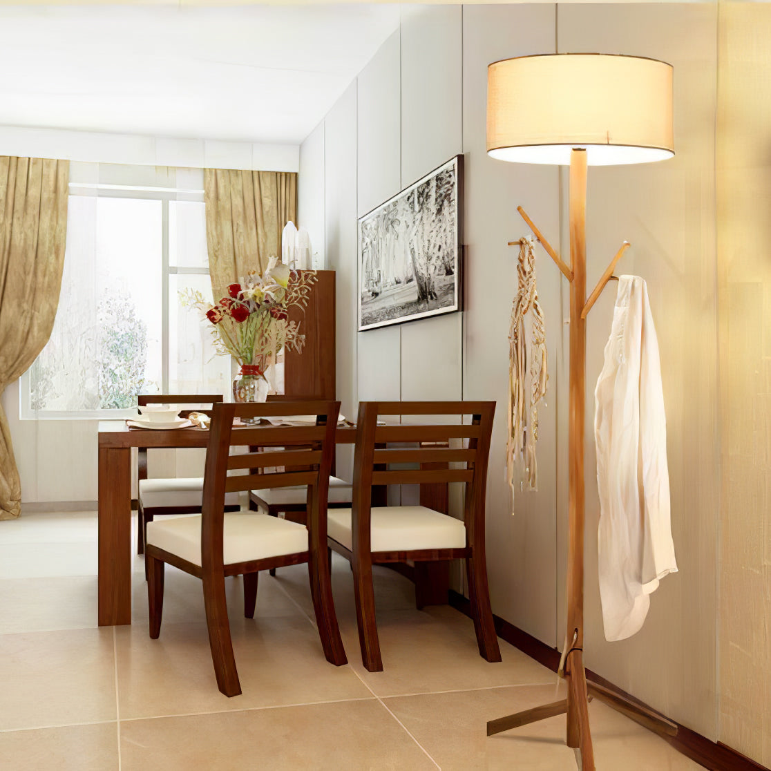 The design of this floor lamp is inspired by the sense of comfortable life, the floor lamp is composed of solid wood and plate, and the tree-like shape design makes us feel as if we are in the forest so that we are liberated from the busy life in the city. The unique combination of coat rack and floor lamp can place clothes and hats. Linen fabric lampshade, creating a warm and elegant lighting atmosphere, and soft light. Placed in any corner is a bright decoration.