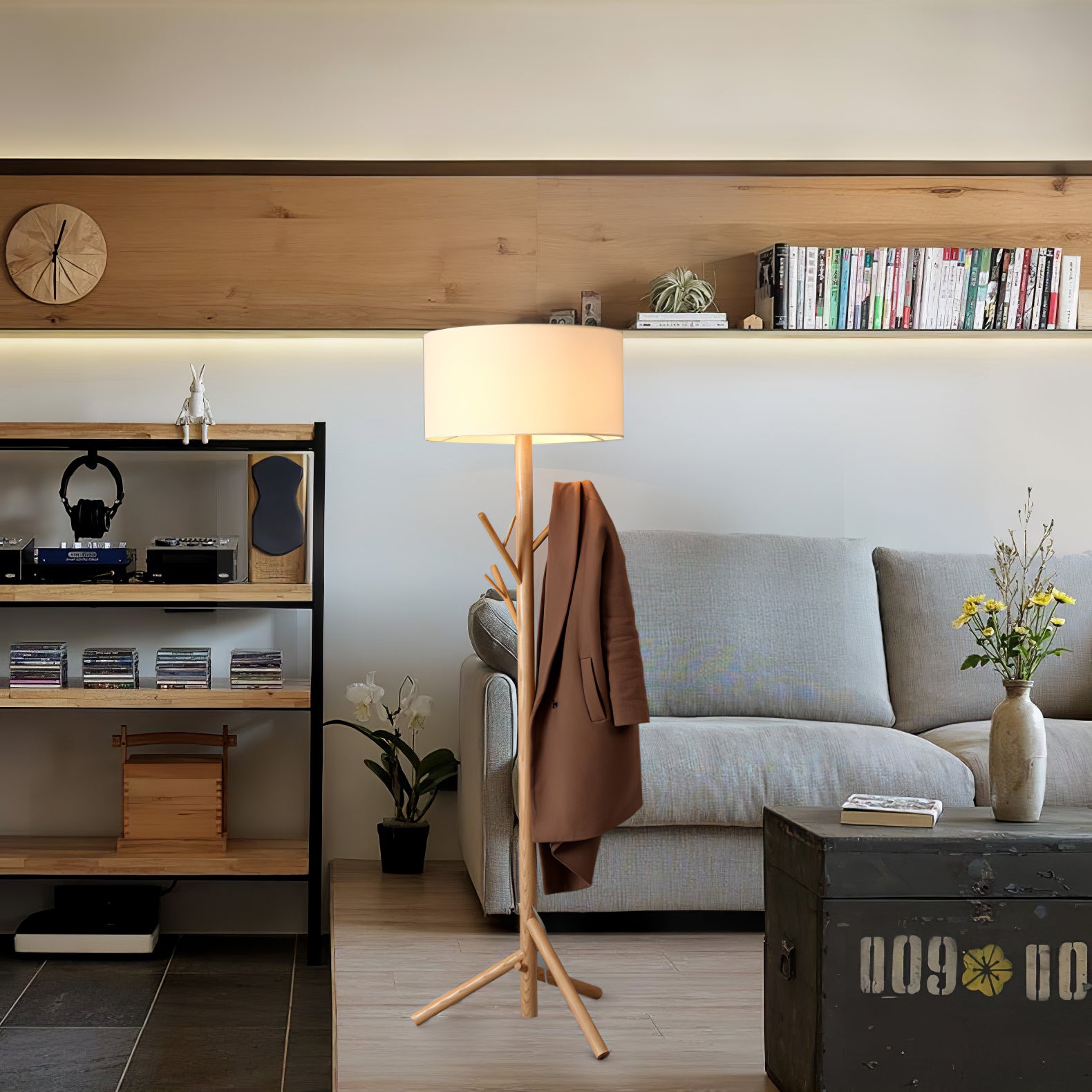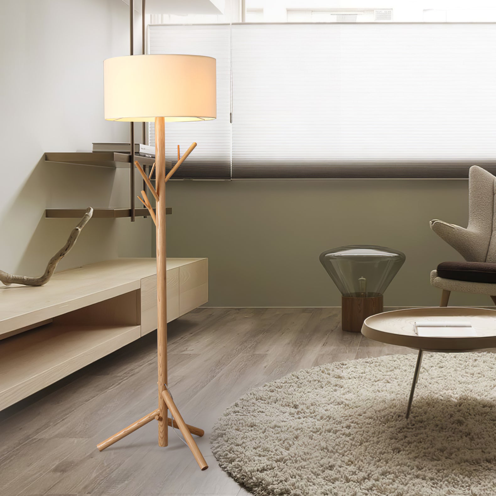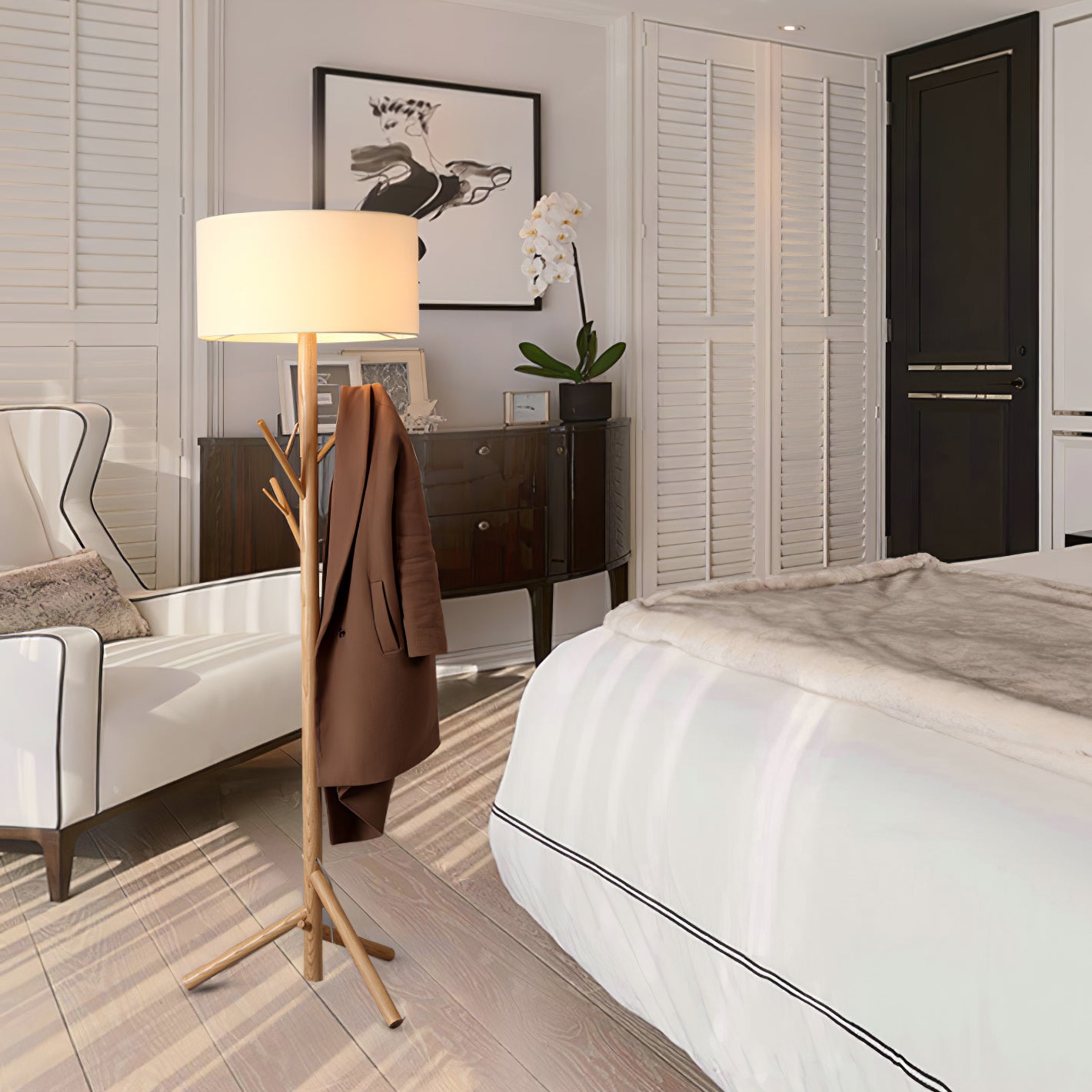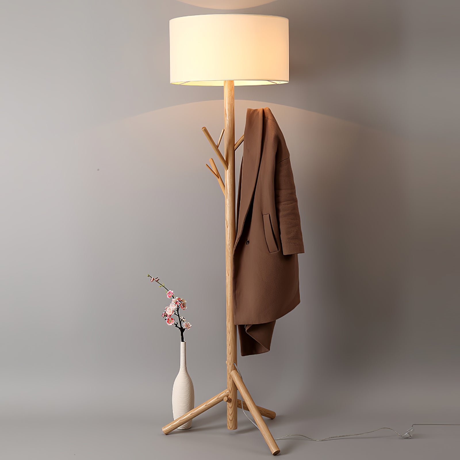 The design of this floor lamp is inspired by the sense of comfortable life, the floor lamp is composed of solid wood and plate, and the tree-like shape design makes us feel as if we are in the forest so that we are liberated from the busy life in the city. The unique combination of coat rack and floor lamp can place clothes and hats. Linen fabric lampshade, creating a warm and elegant lighting atmosphere, and soft light. Placed in any corner is a bright decoration.