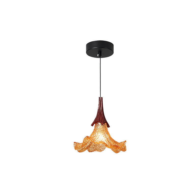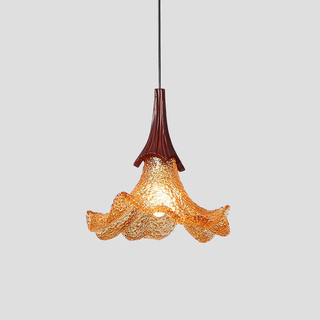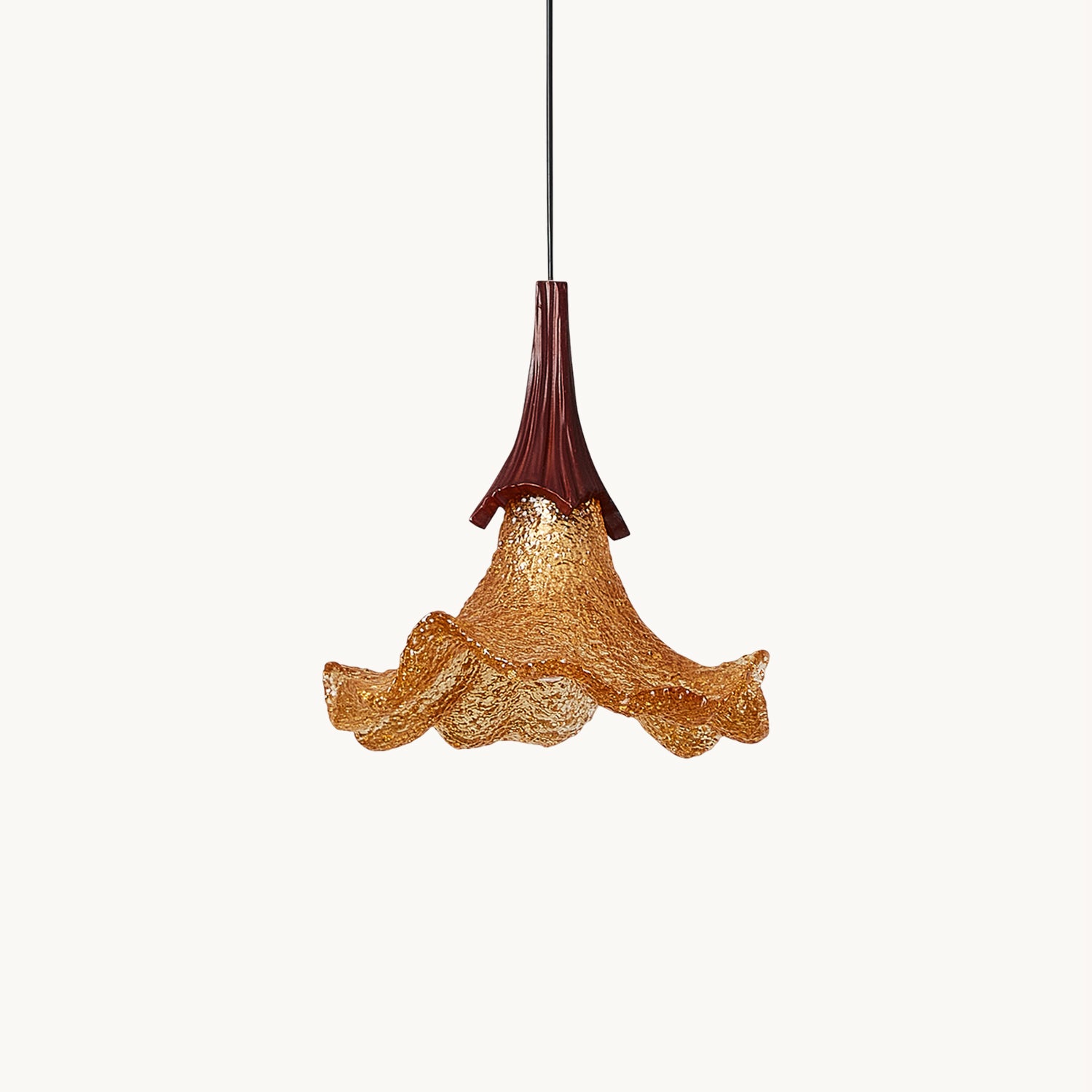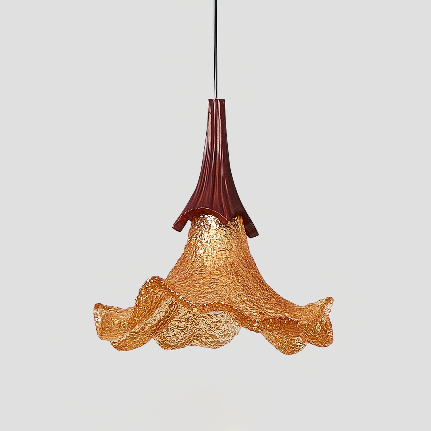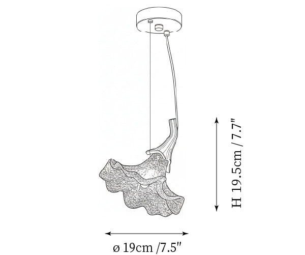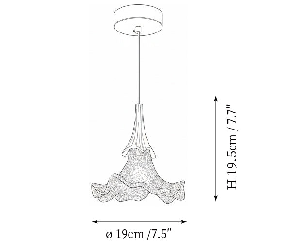 The Tressin Pendant Lamp from Mooijane features a petal-inspired design that exudes elegance and artistry. Its resin lampshade, with delicate wavy textures, diffuses a warm, inviting glow reminiscent of a blooming flower. Suspended from a sleek metal fixture for stability and style, this pendant light combines functionality with decorative appeal, perfect for creating a cozy, romantic ambiance in bedrooms, living rooms, or hallways.