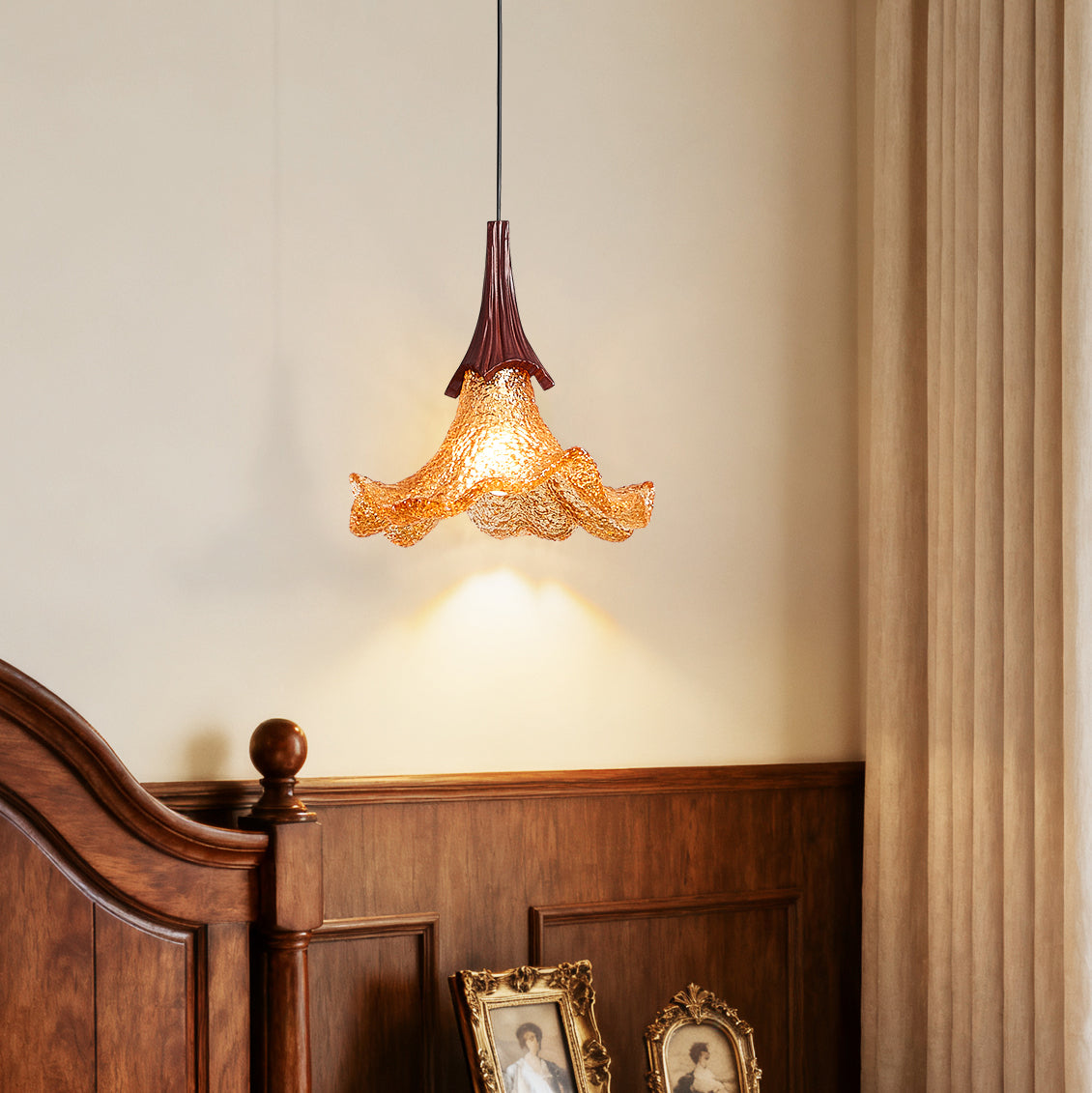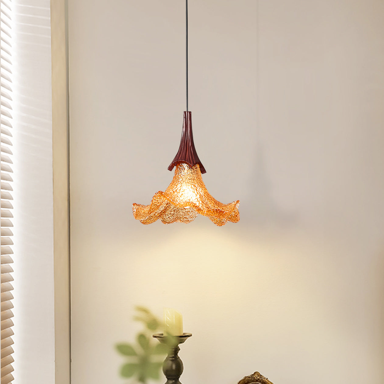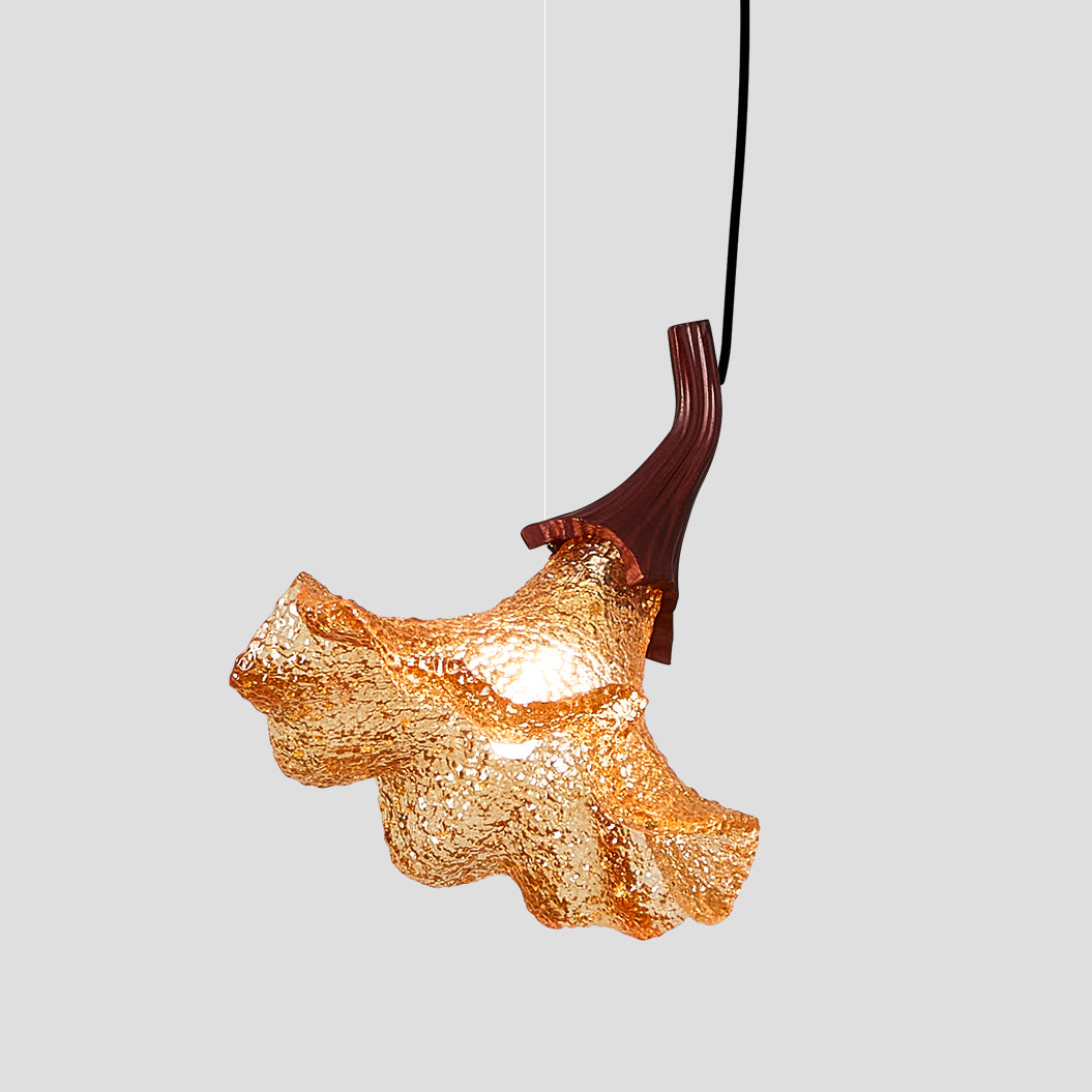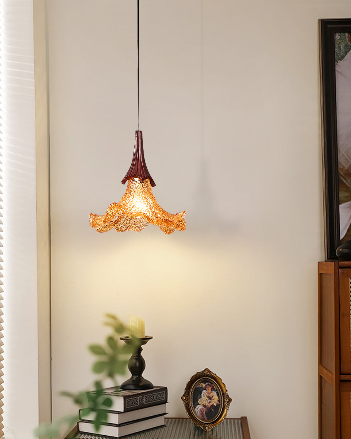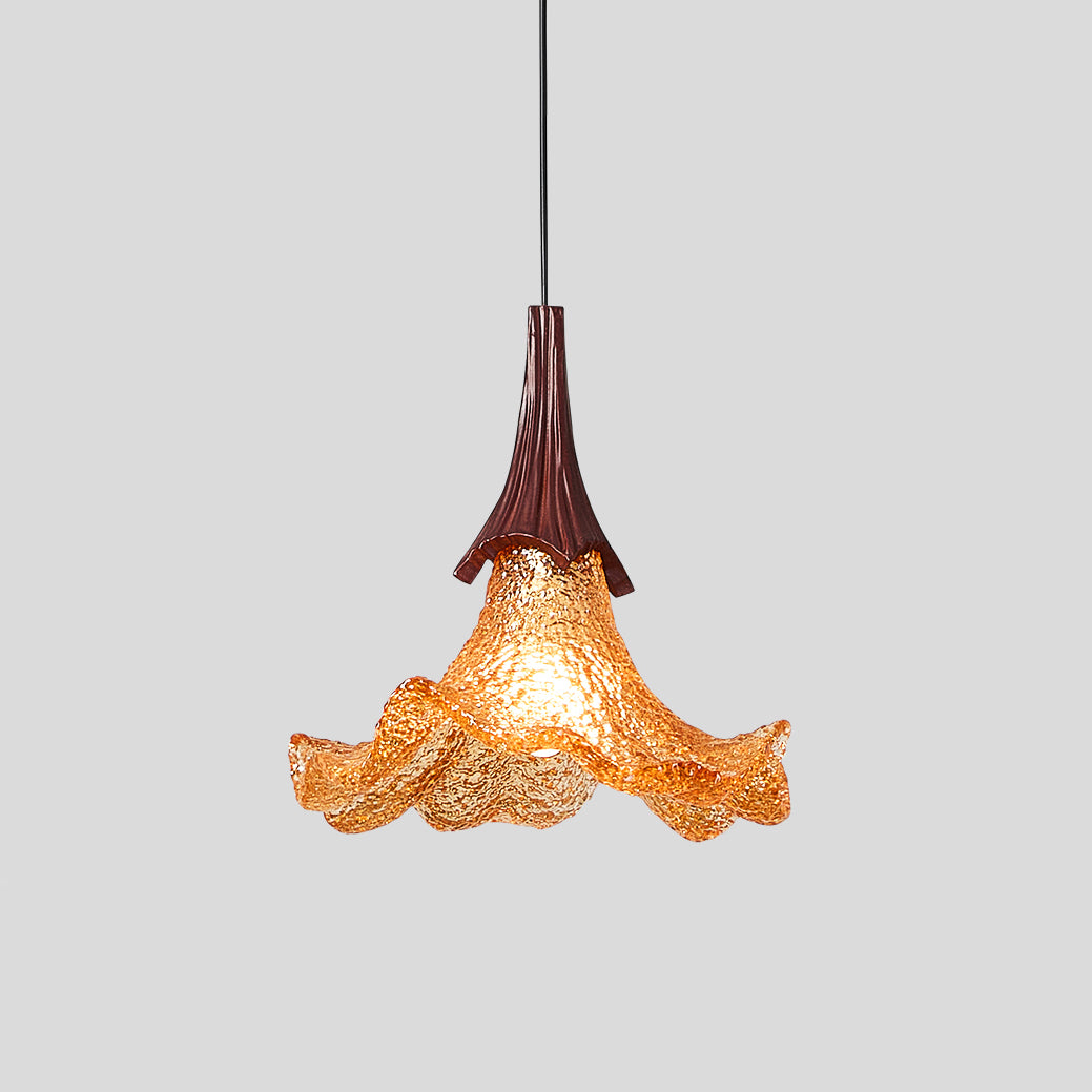 The Tressin Pendant Lamp from Mooijane features a petal-inspired design that exudes elegance and artistry. Its resin lampshade, with delicate wavy textures, diffuses a warm, inviting glow reminiscent of a blooming flower. Suspended from a sleek metal fixture for stability and style, this pendant light combines functionality with decorative appeal, perfect for creating a cozy, romantic ambiance in bedrooms, living rooms, or hallways.