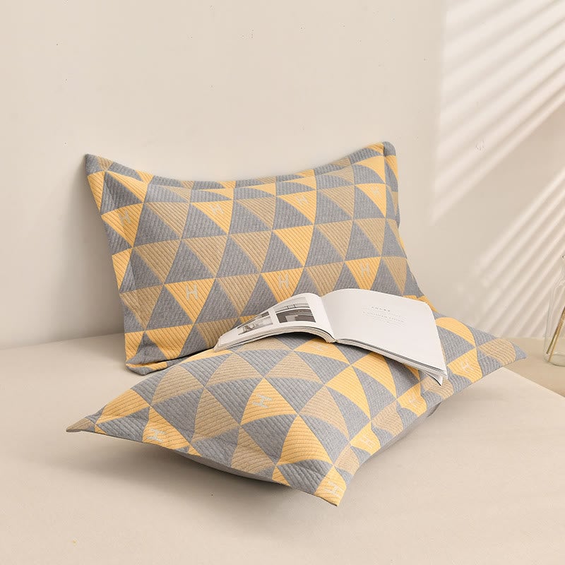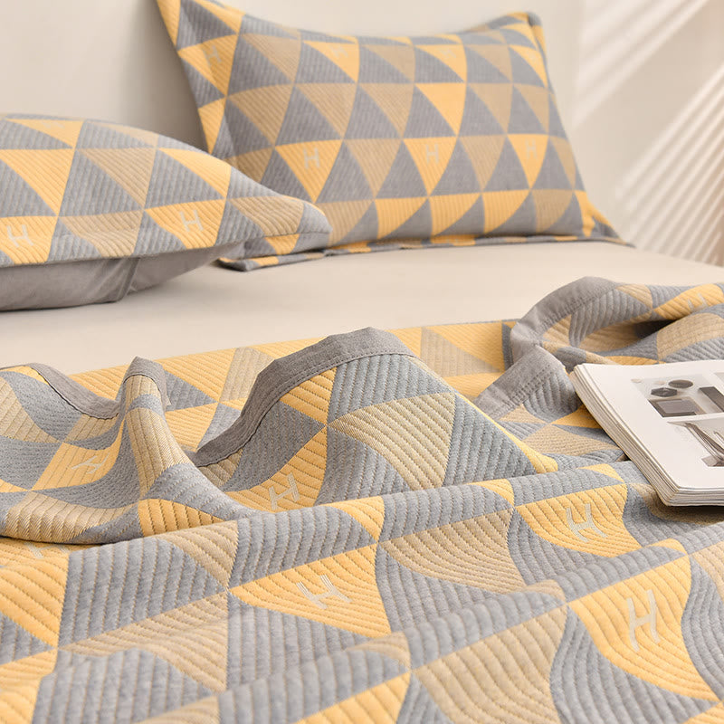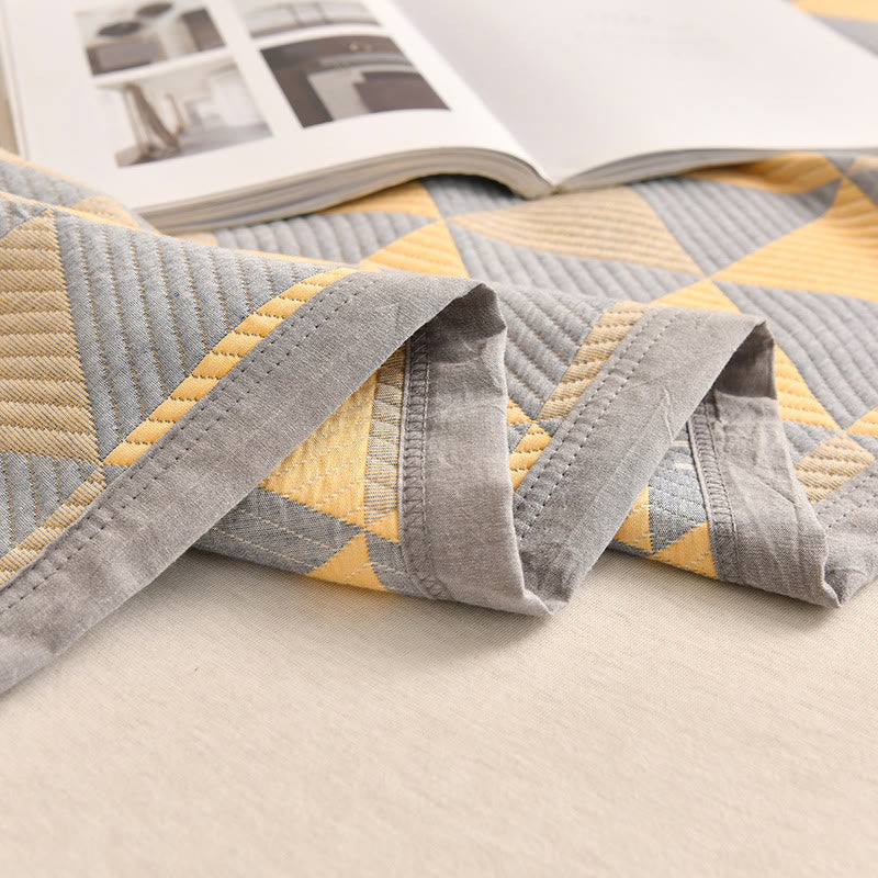 Ownkoti Triangle Pattern Gray & Yellow Cotton Quilt