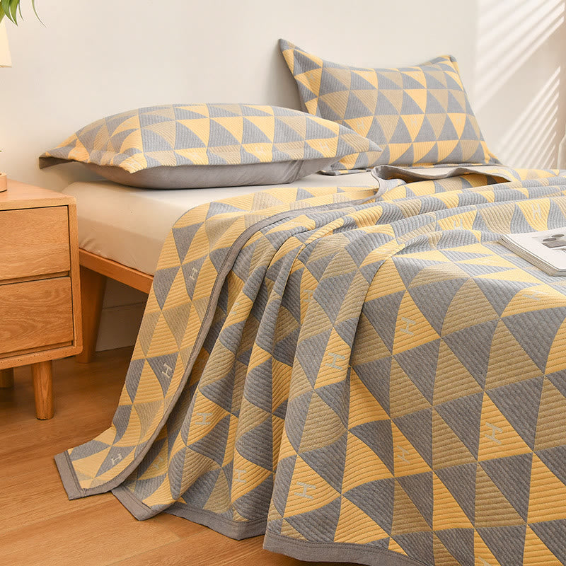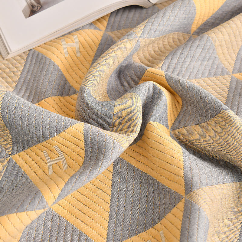 Geometric triangle pattern printed in gray and yellow, adding innovative design concepts and minimalist style, which provides a high-quality visual effect to your room. Made from high-quality cotton, this quilt is soft and cozy, providing warmth on even the coldest nights. Reactive printing and dyeing technology make it not easy to fade and durable. It can be also used as an air conditioning blanket, airplane blanket, bedside towel, sofa blanket, or shawl blanket.