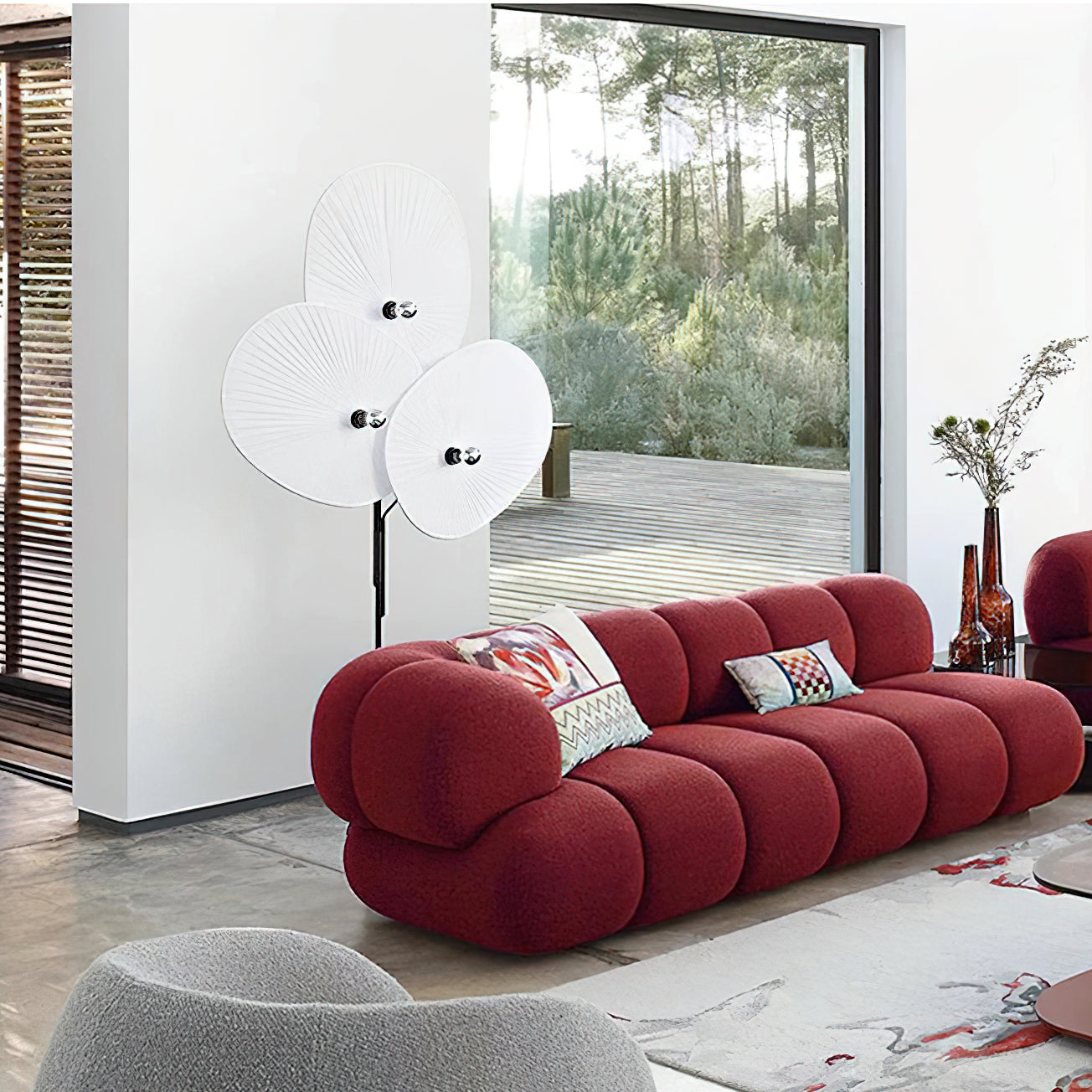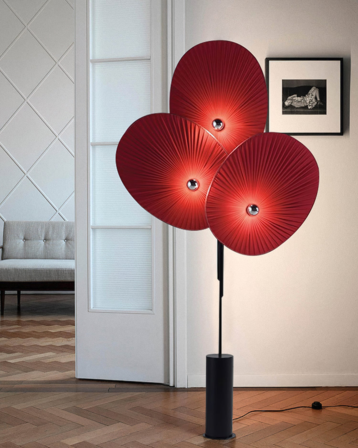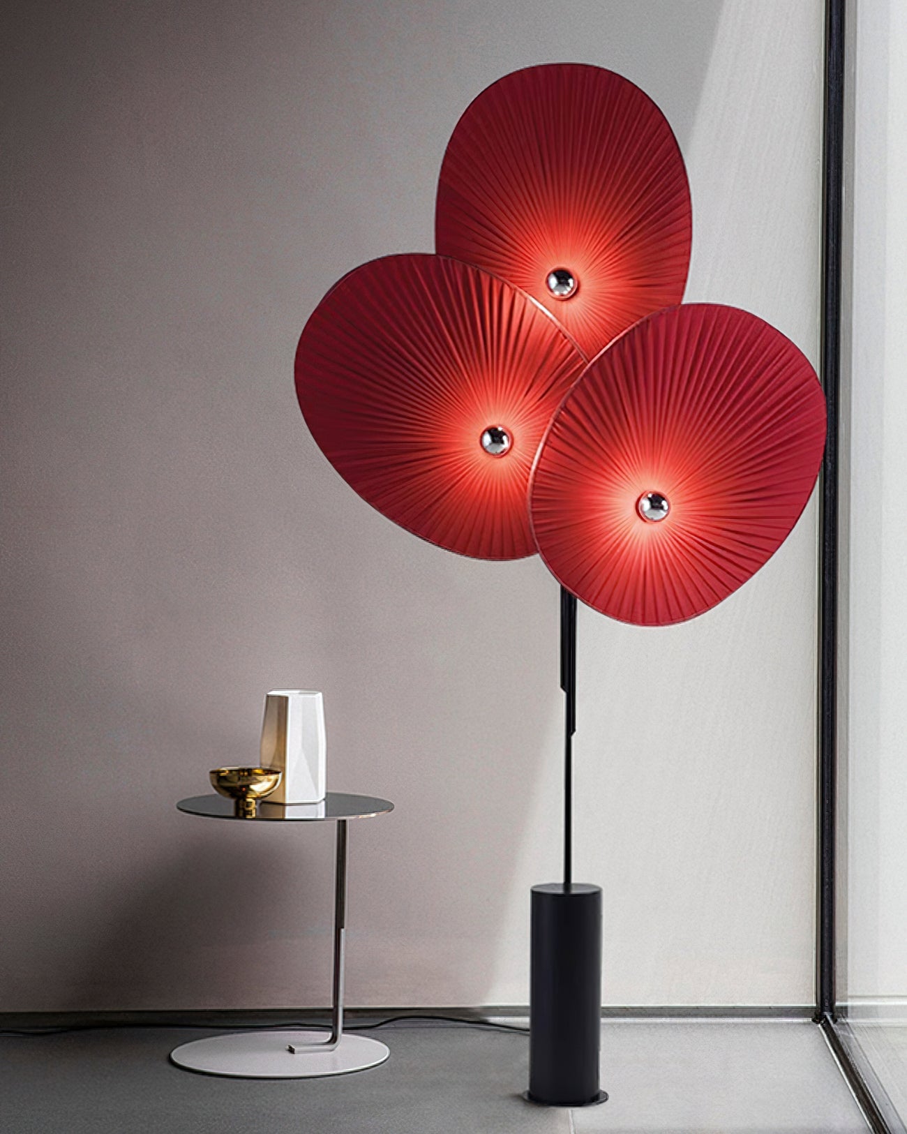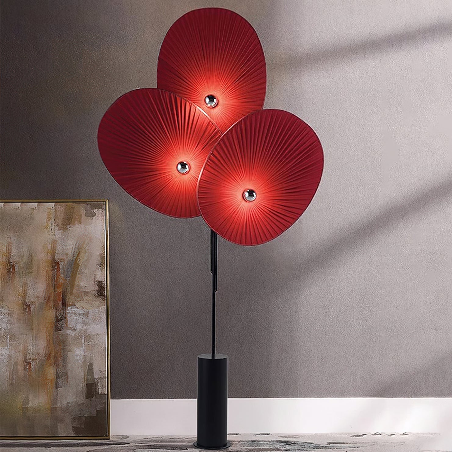 With three colors and an intricate petal design, the Triple Floral Floor Lamp is a versatile and vibrant addition to any space. Made with delicate grooves that softly diffuse light, this lamp brings a hint of spring into your room. Supported by a minimalist black frame, it seamlessly blends form with function to suit any decor style. Illuminate your living area, bedroom, or office with this unique nature-inspired lamp.