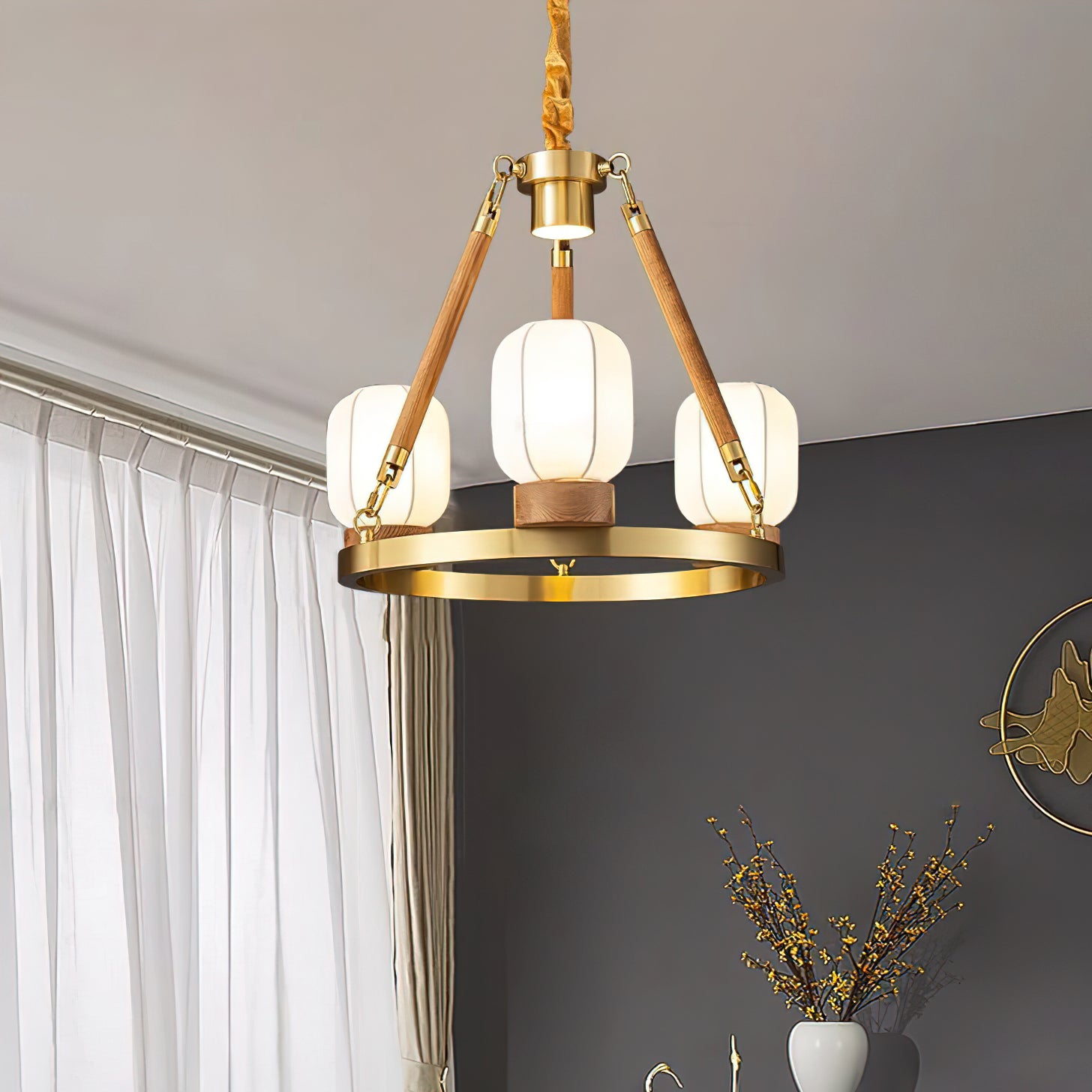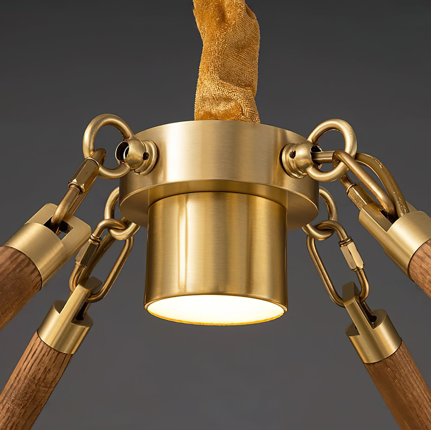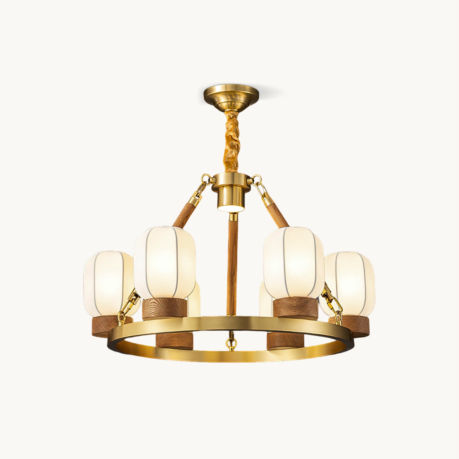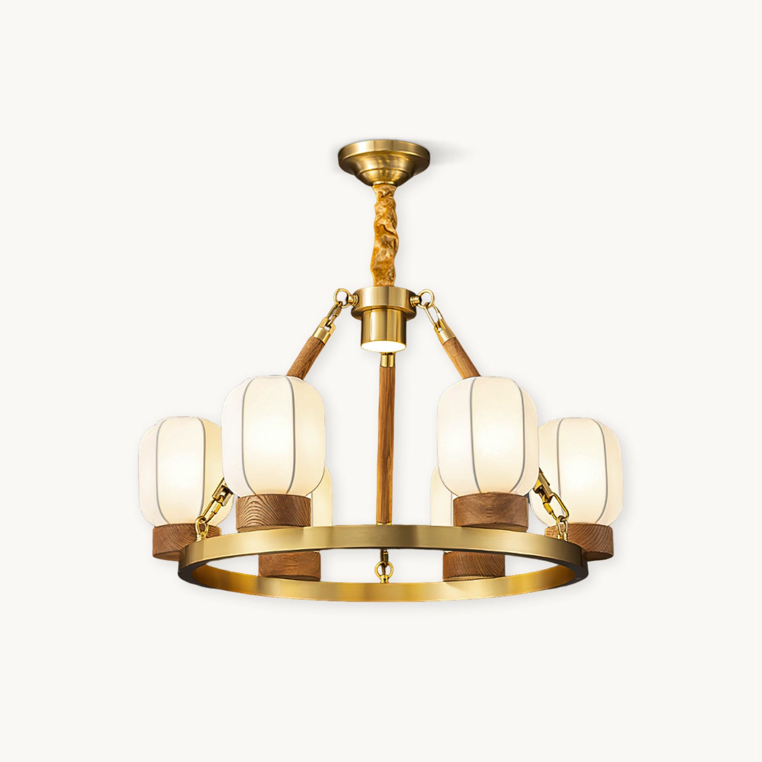 Add warmth and elegance to your space with the Upton Fabric Chandelier from Mooijane. This luxurious piece boasts a vintage fabric shade and a refined brass body, creating a cozy and sophisticated ambiance. Shop now for a unique touch to your decor.