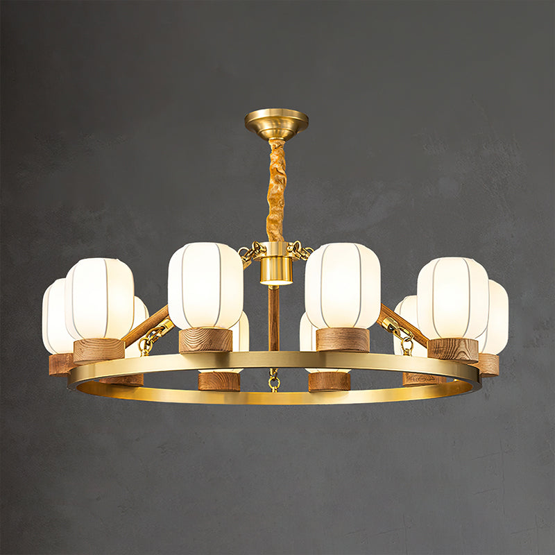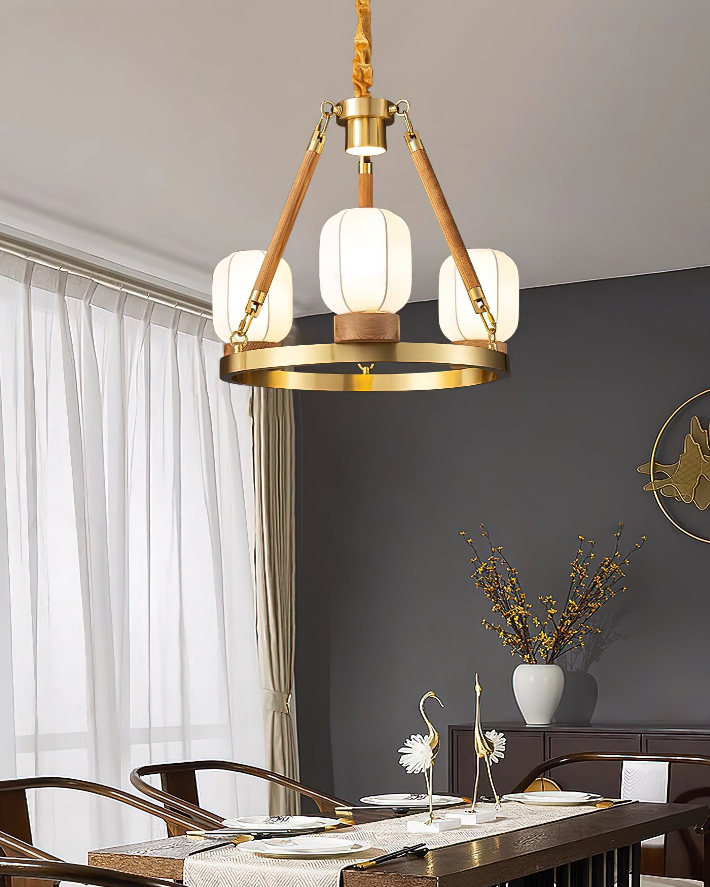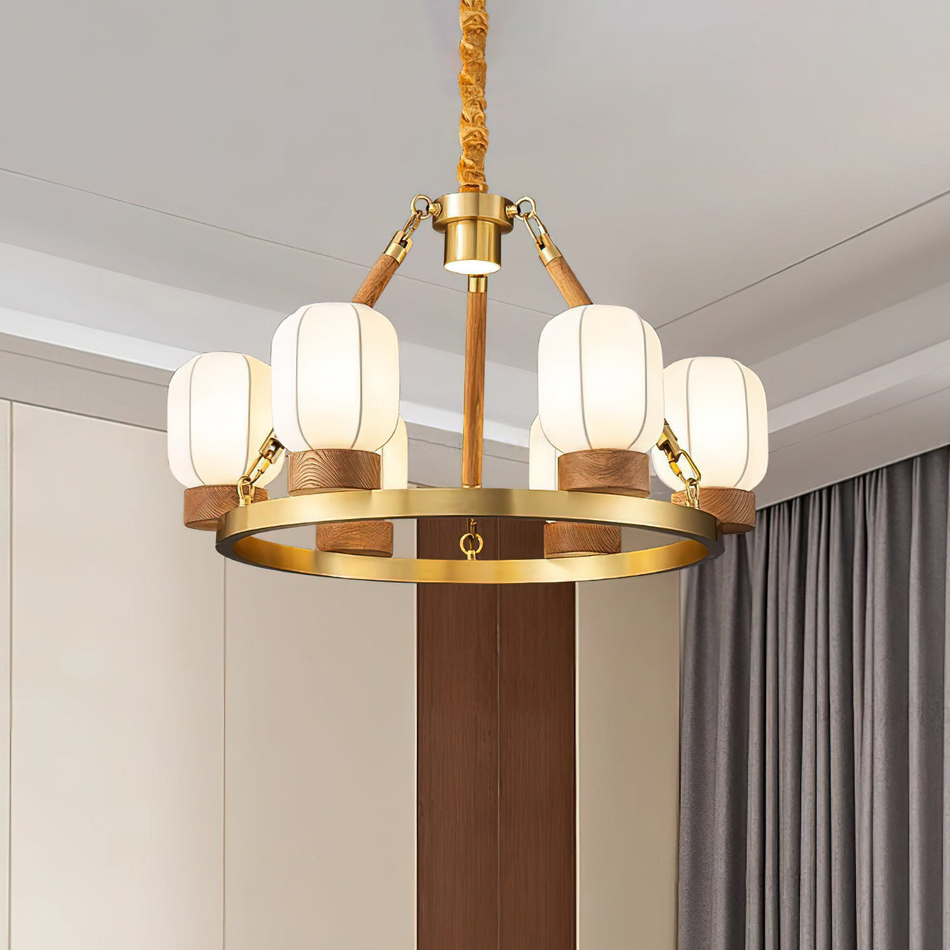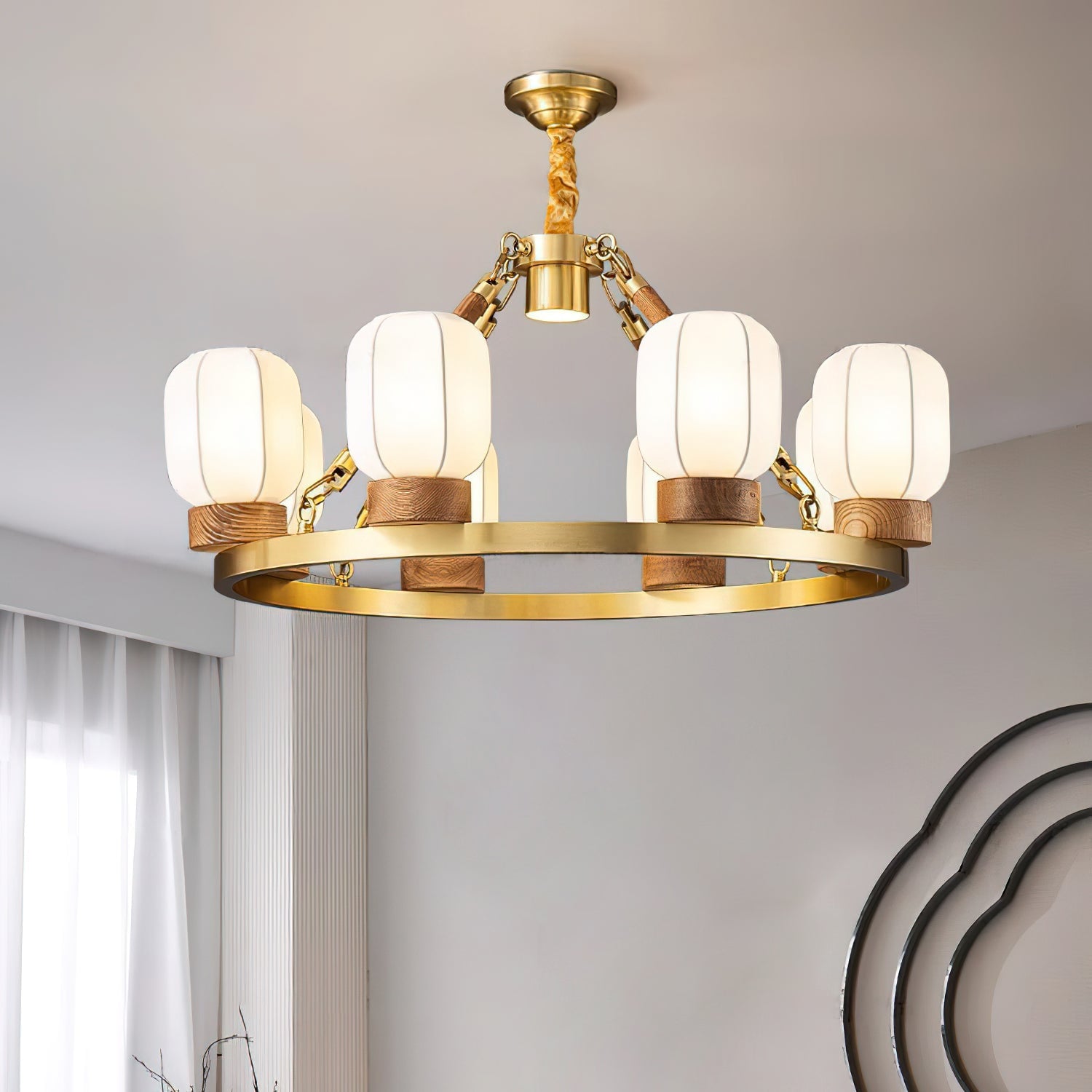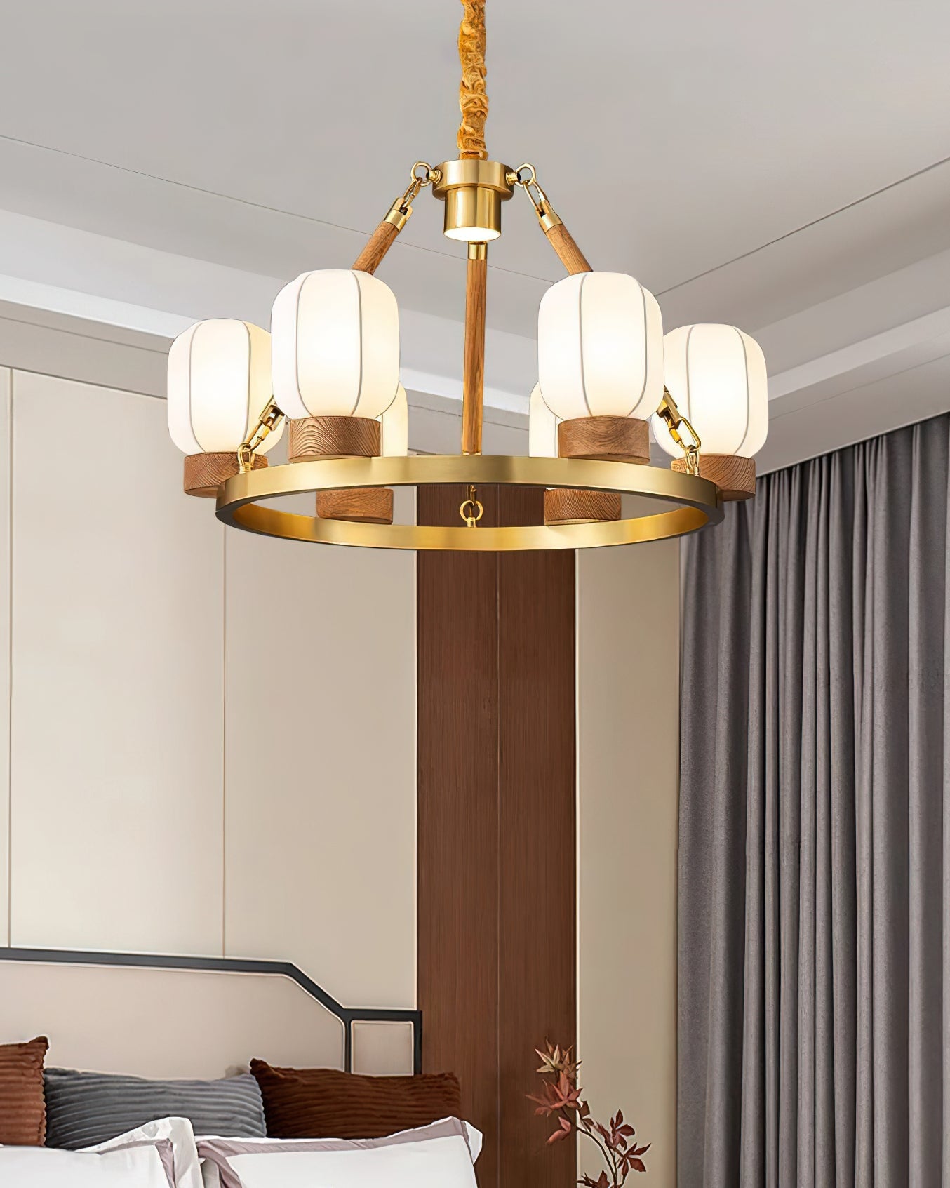 Add warmth and elegance to your space with the Upton Fabric Chandelier from Mooijane. This luxurious piece boasts a vintage fabric shade and a refined brass body, creating a cozy and sophisticated ambiance. Shop now for a unique touch to your decor.