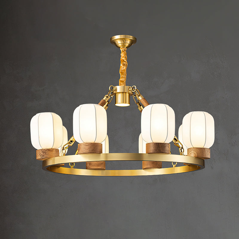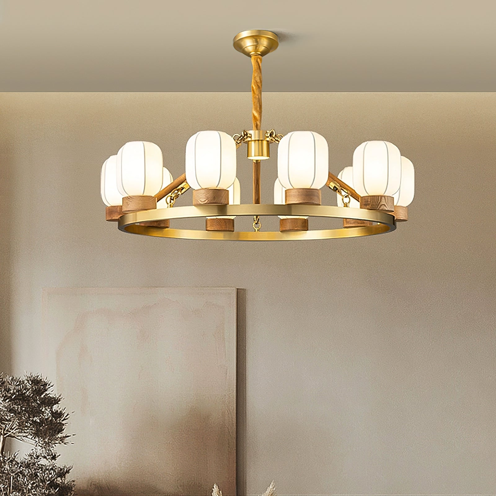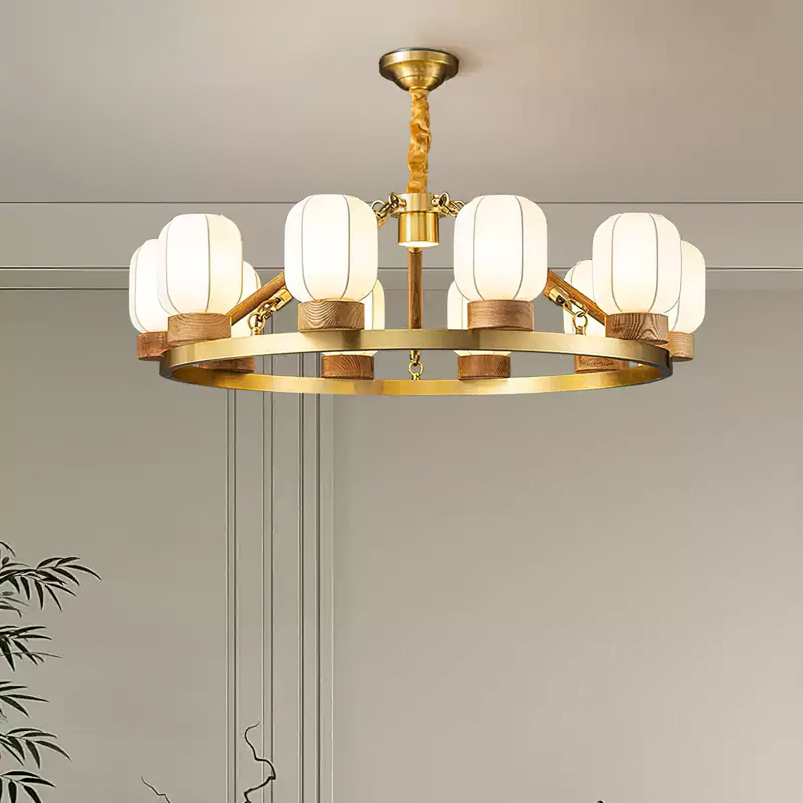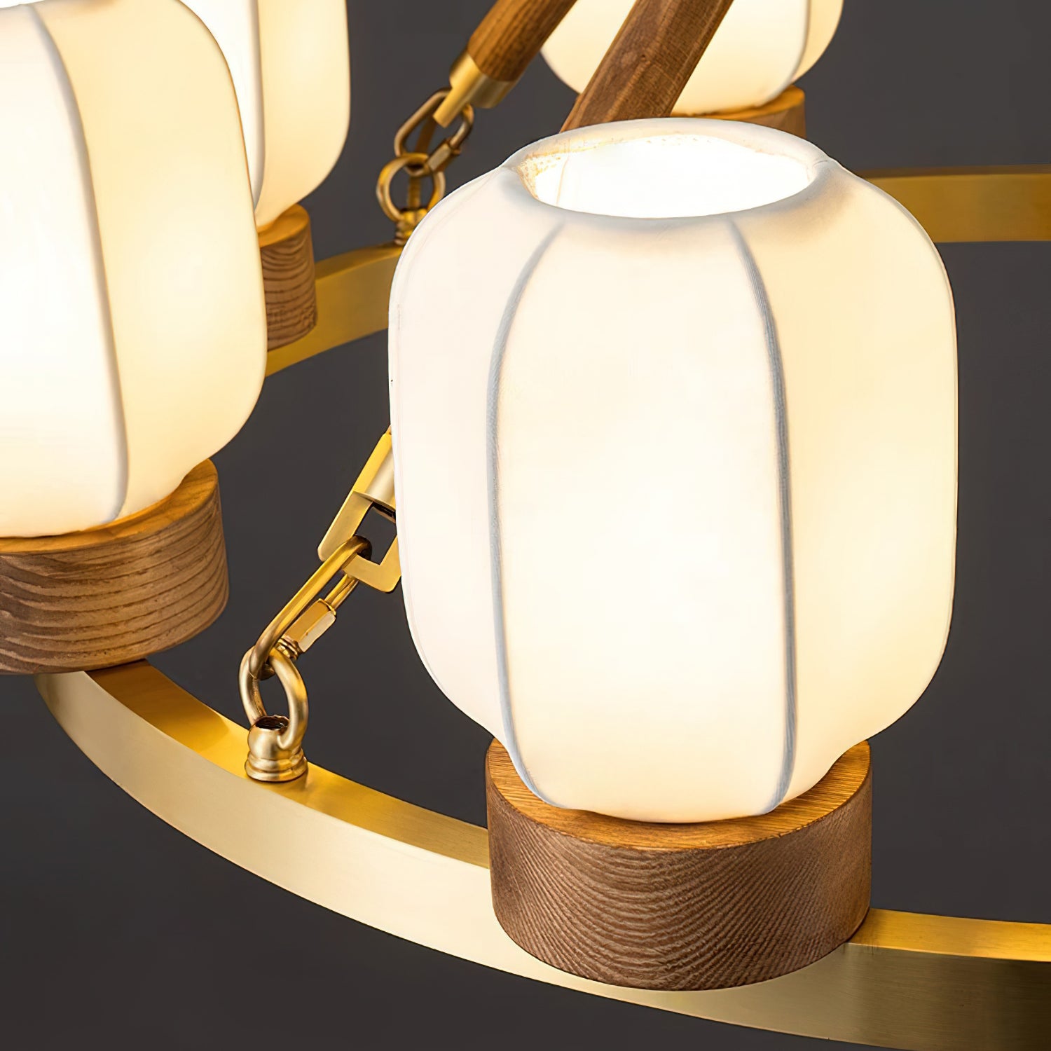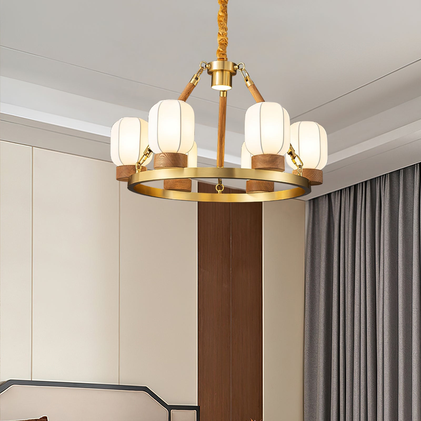 Add warmth and elegance to your space with the Upton Fabric Chandelier from Mooijane. This luxurious piece boasts a vintage fabric shade and a refined brass body, creating a cozy and sophisticated ambiance. Shop now for a unique touch to your decor.