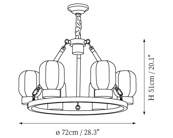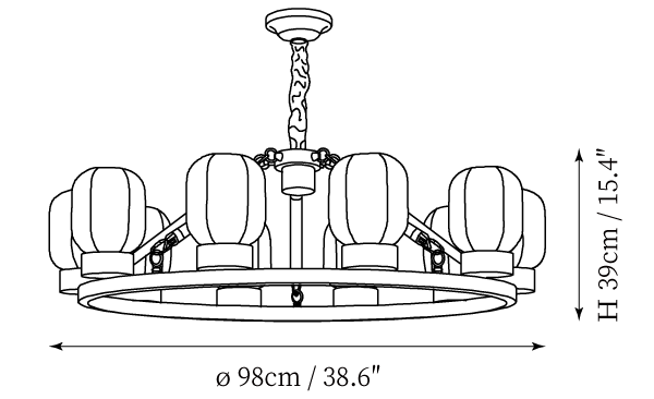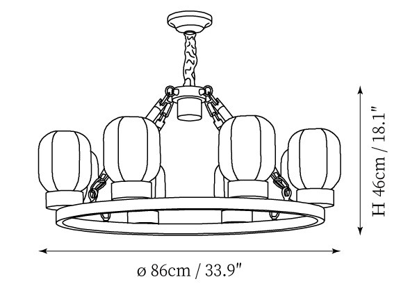 - 8-Lights Size: Dia 86cm x H 46cm / ∅ 33.9″ x H 18.1″