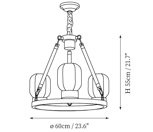 - 3-Lights Size: Dia 60cm x H 55cm / ∅ 23.6″ x H 21.7″