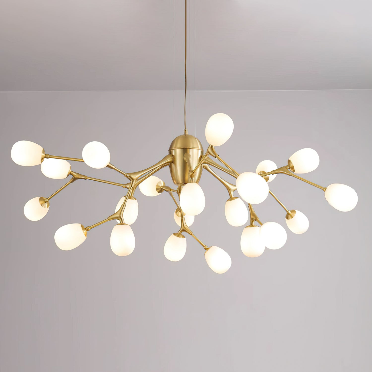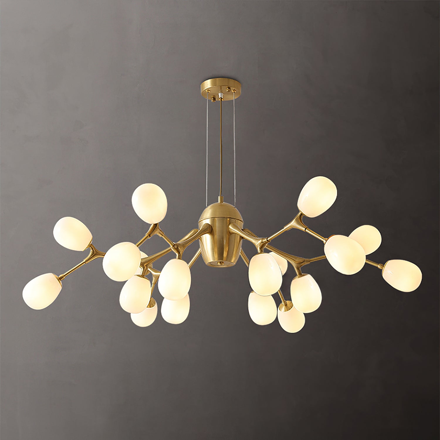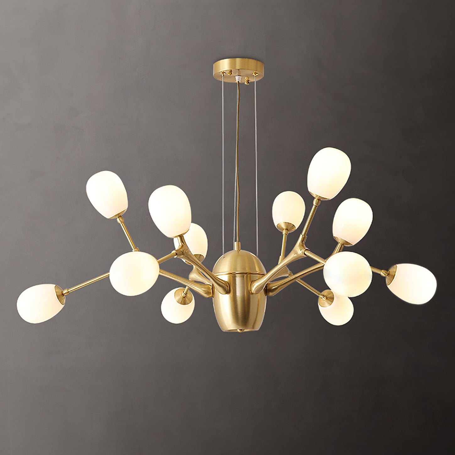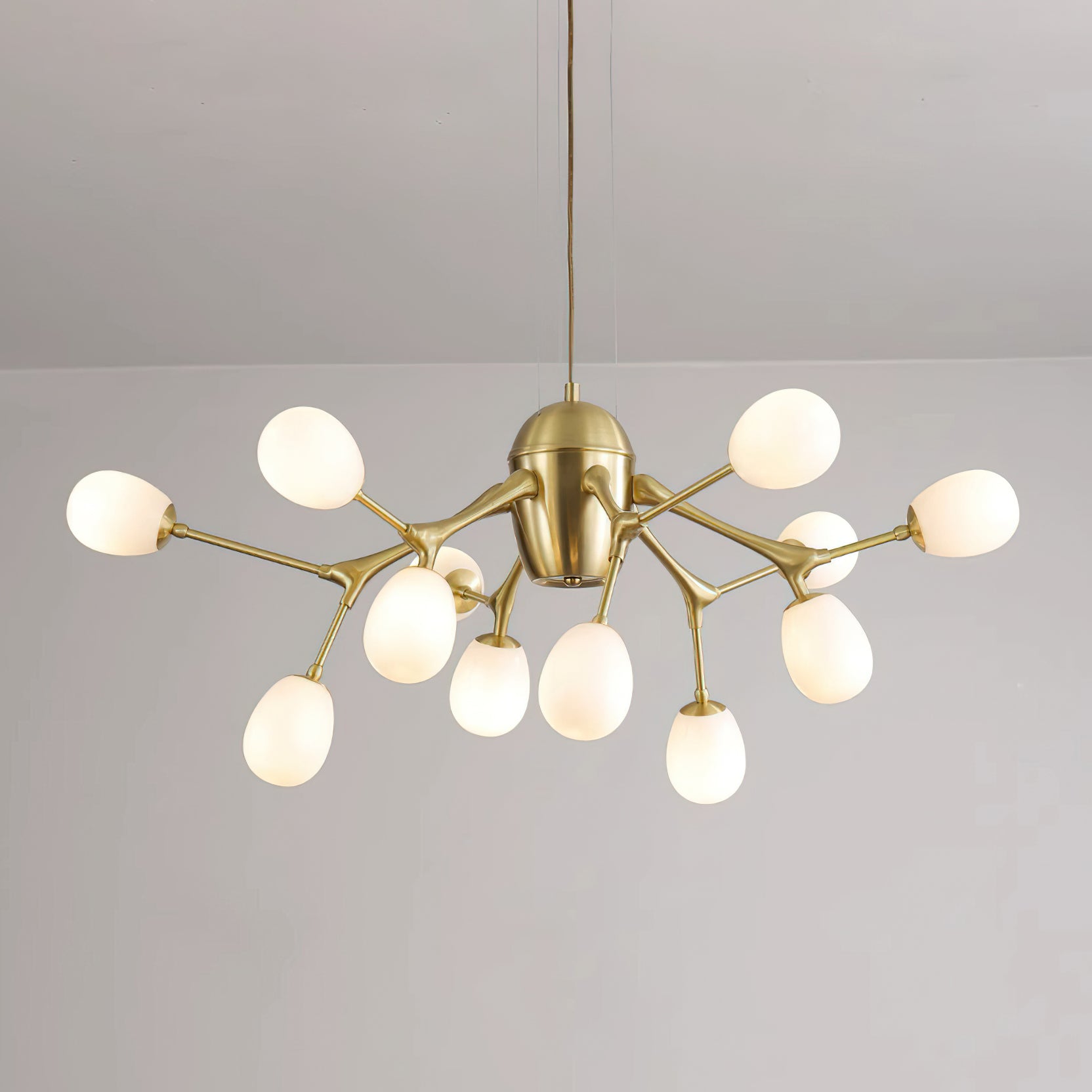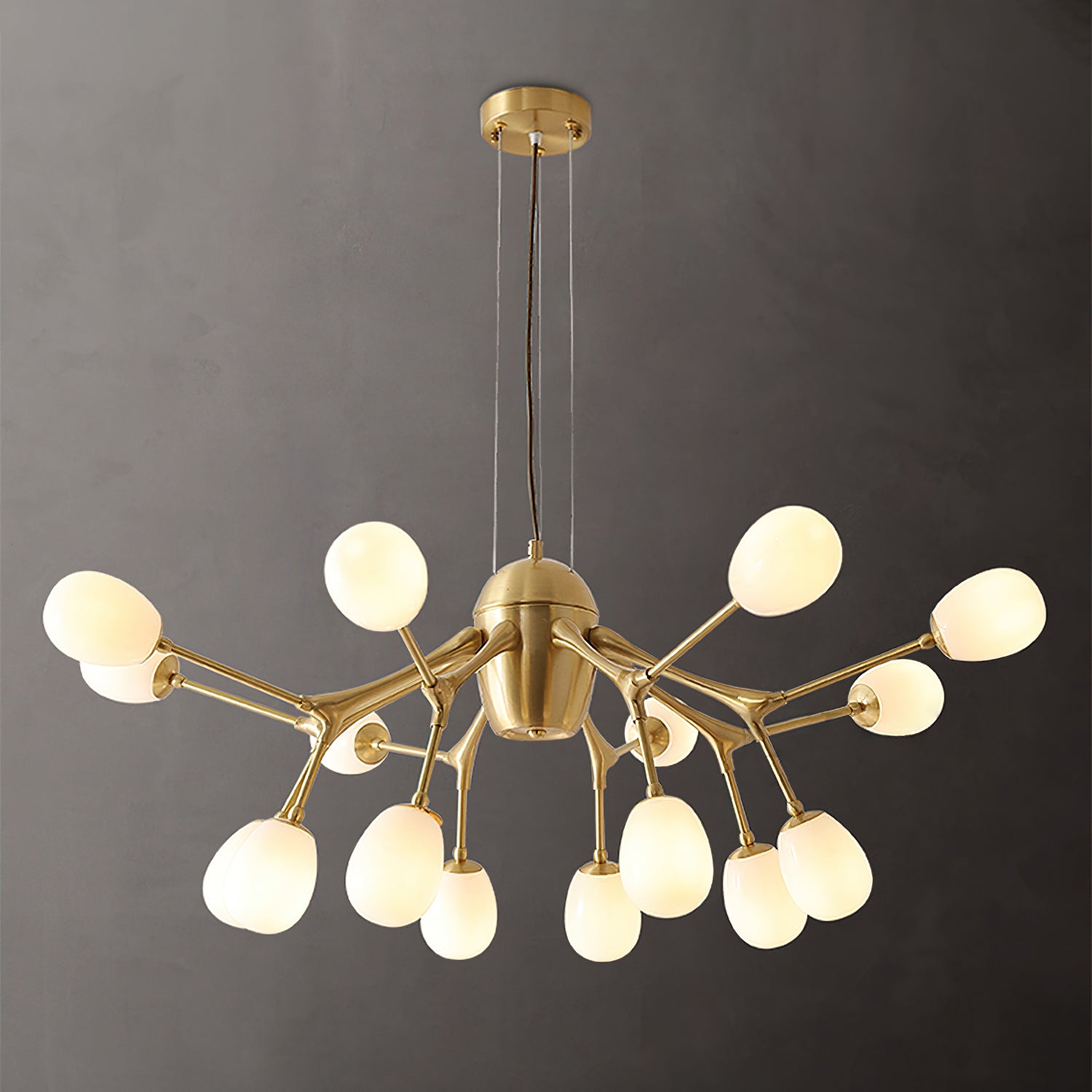 Elevate your space with the Valery Chandelier from Mooijane. Hand-crafted arms delicately embrace pearl-like shades, adding depth and texture to your décor. The fluid silhouette and Gold finish bring a modern artisanal touch, making it a luxurious addition to any room.