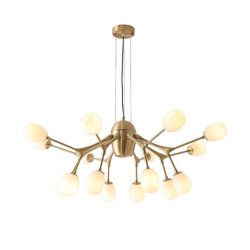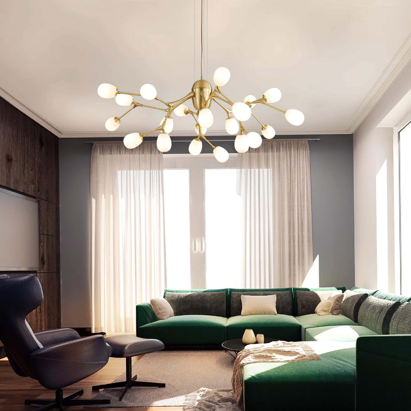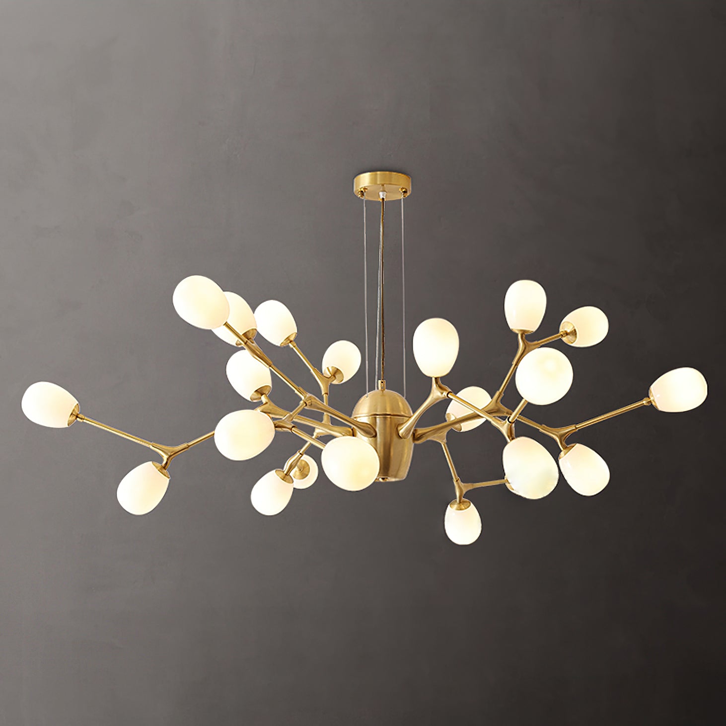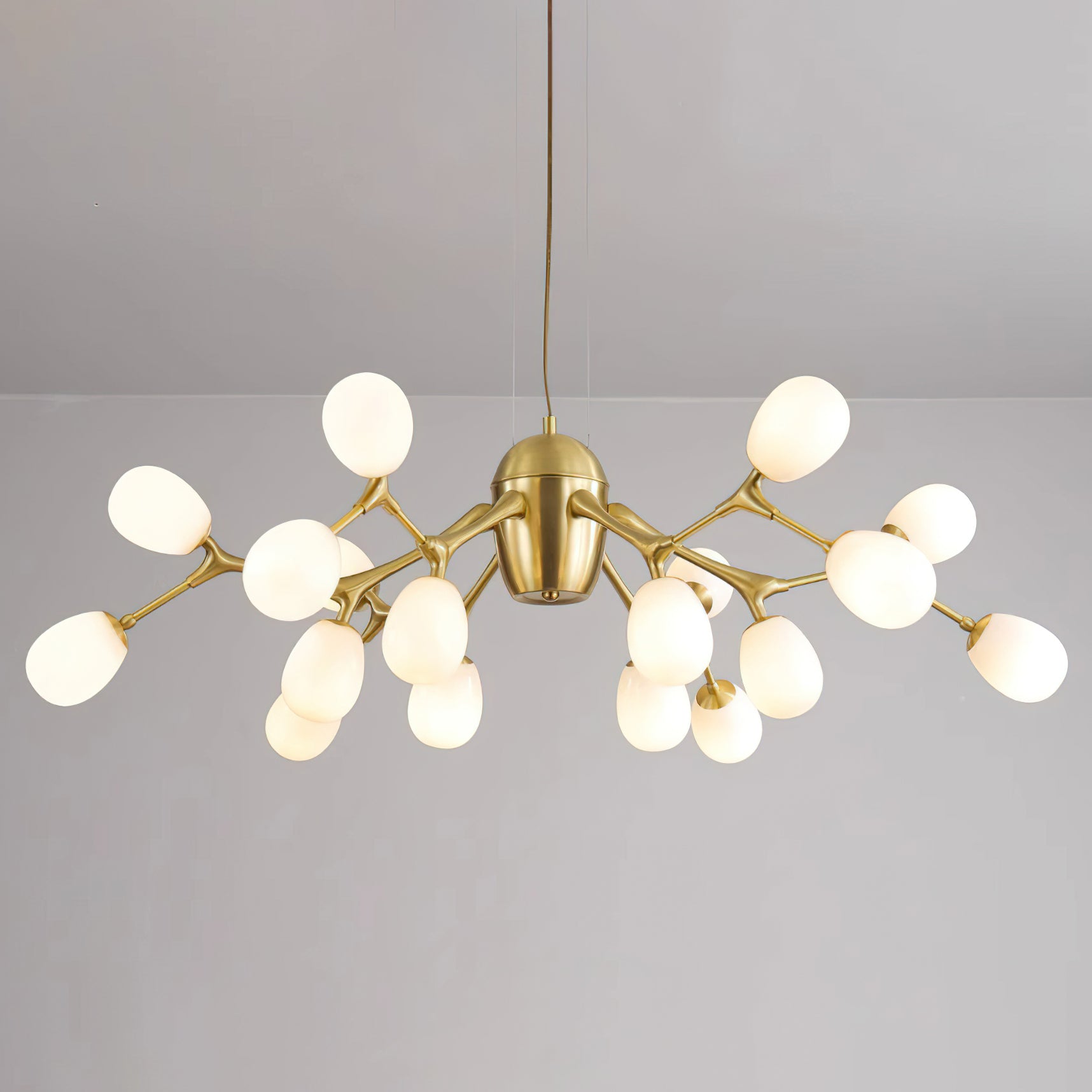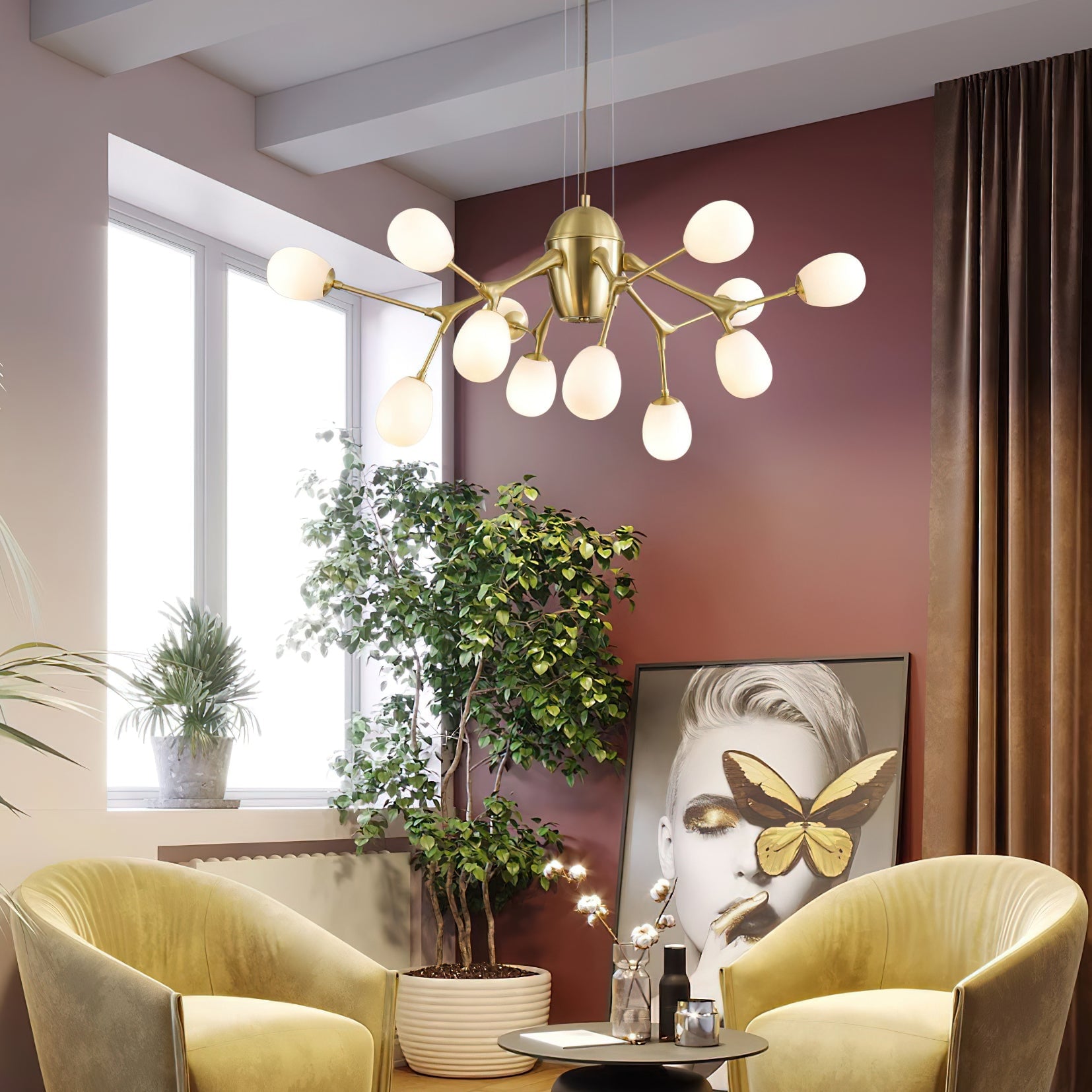 Elevate your space with the Valery Chandelier from Mooijane. Hand-crafted arms delicately embrace pearl-like shades, adding depth and texture to your décor. The fluid silhouette and Gold finish bring a modern artisanal touch, making it a luxurious addition to any room.