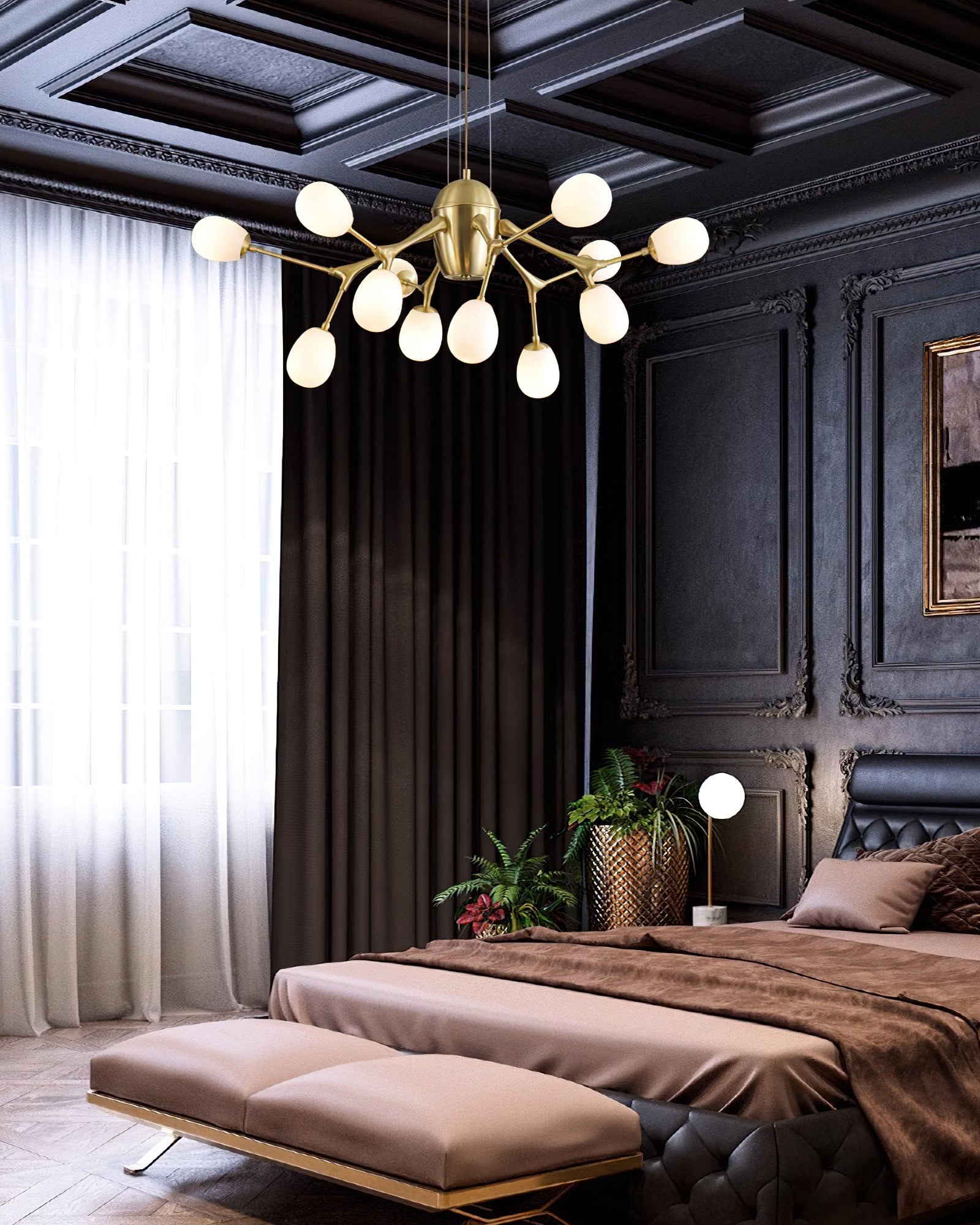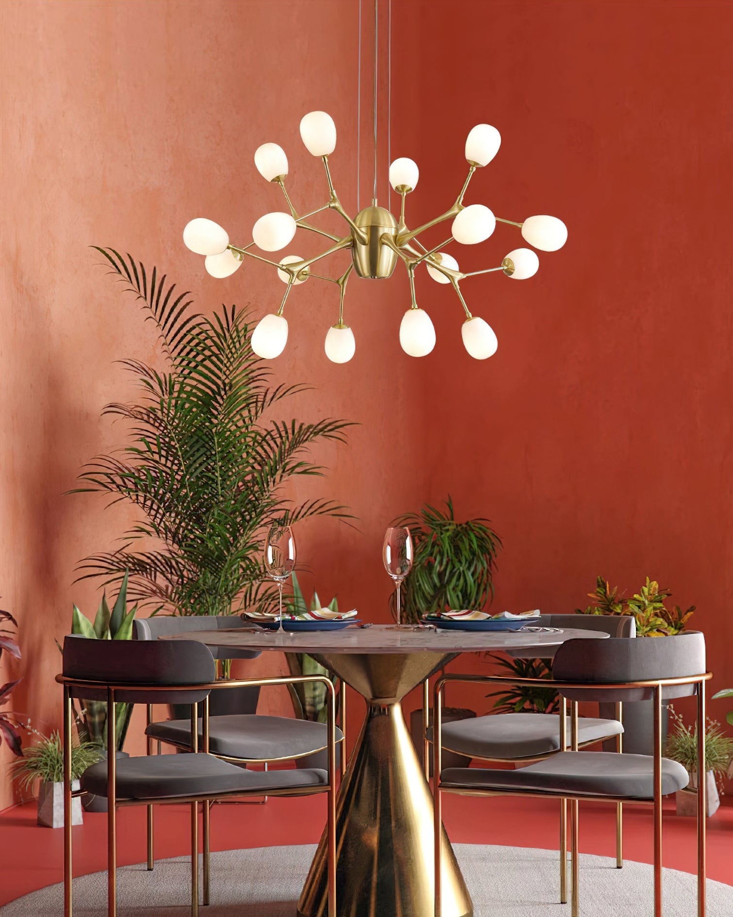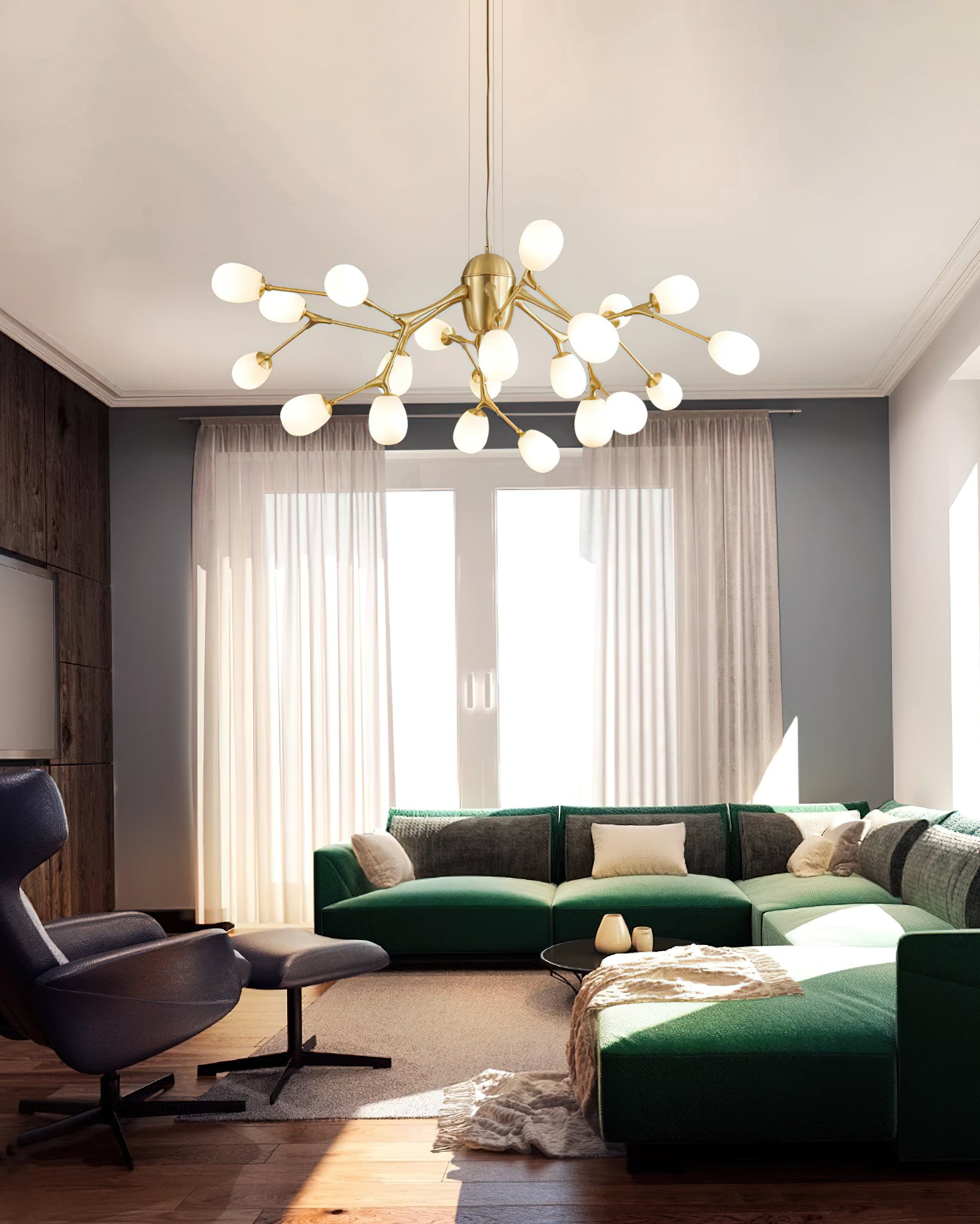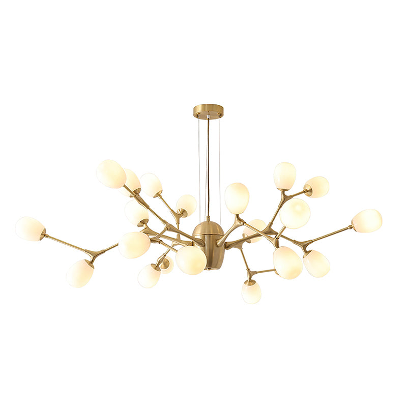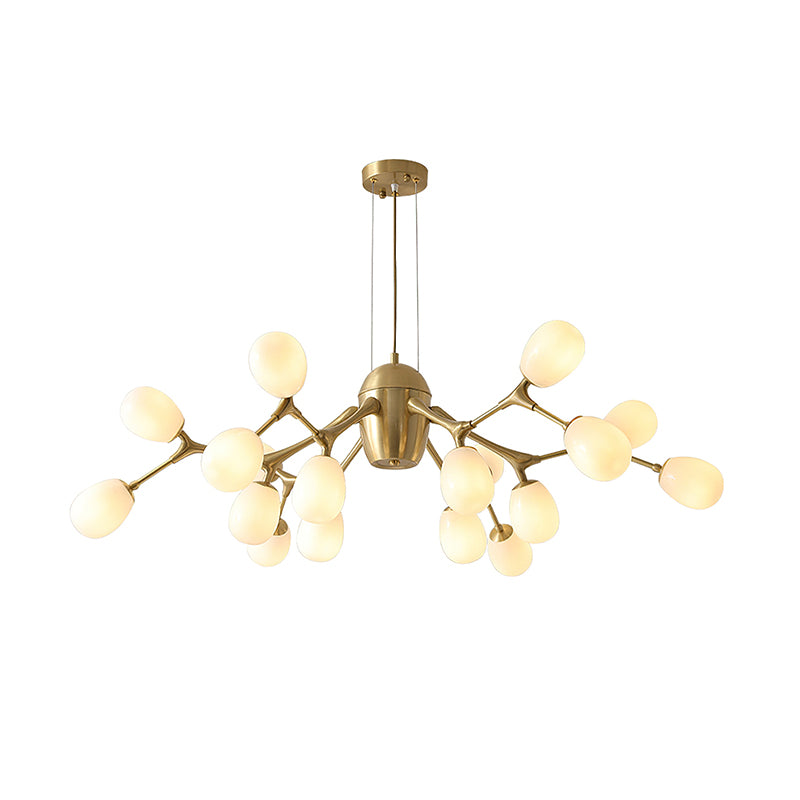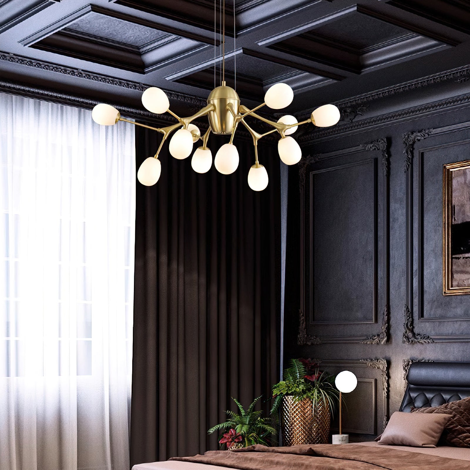 Elevate your space with the Valery Chandelier from Mooijane. Hand-crafted arms delicately embrace pearl-like shades, adding depth and texture to your décor. The fluid silhouette and Gold finish bring a modern artisanal touch, making it a luxurious addition to any room.