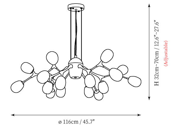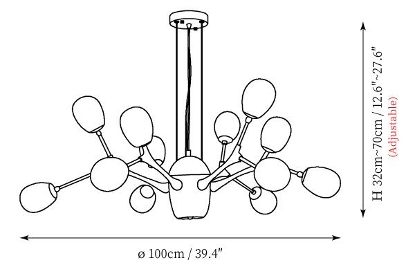 - 12-Lights Size: Dia 100cm x H 32cm / ∅ 39.4″ x H 12.6″