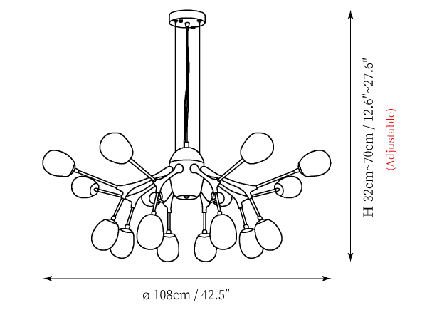 - 16-Lights Size: Dia 108cm x H 32cm / ∅ 42.5″ x H 12.6″