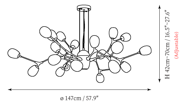 - 21-Lights Size: Dia 147cm x H 42cm / ∅ 57.9″ x H 16.5″