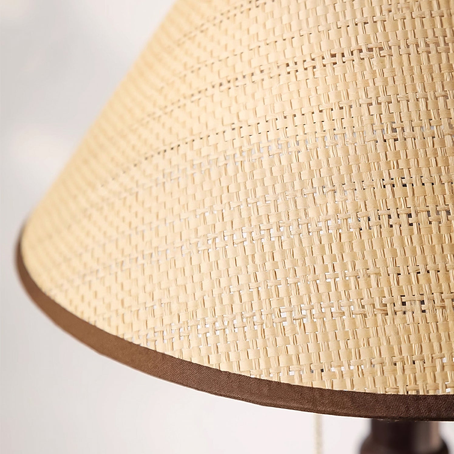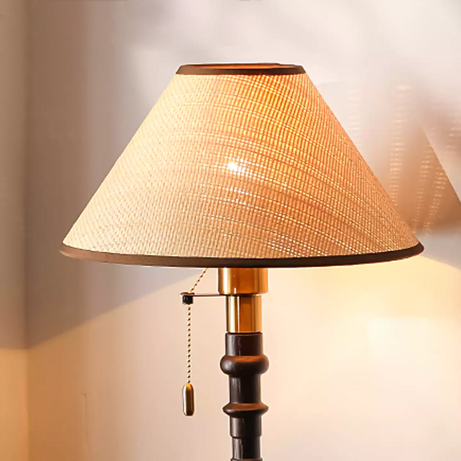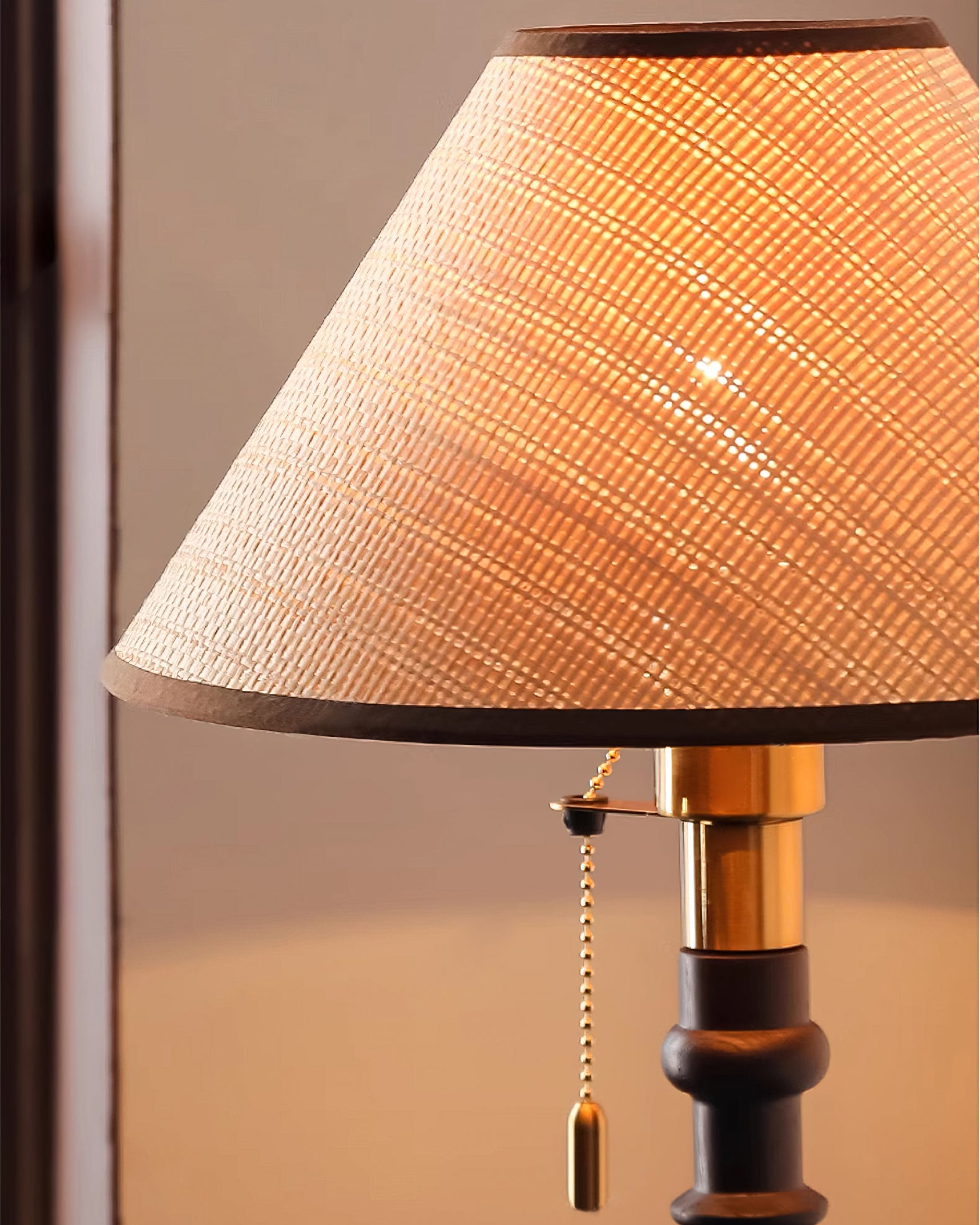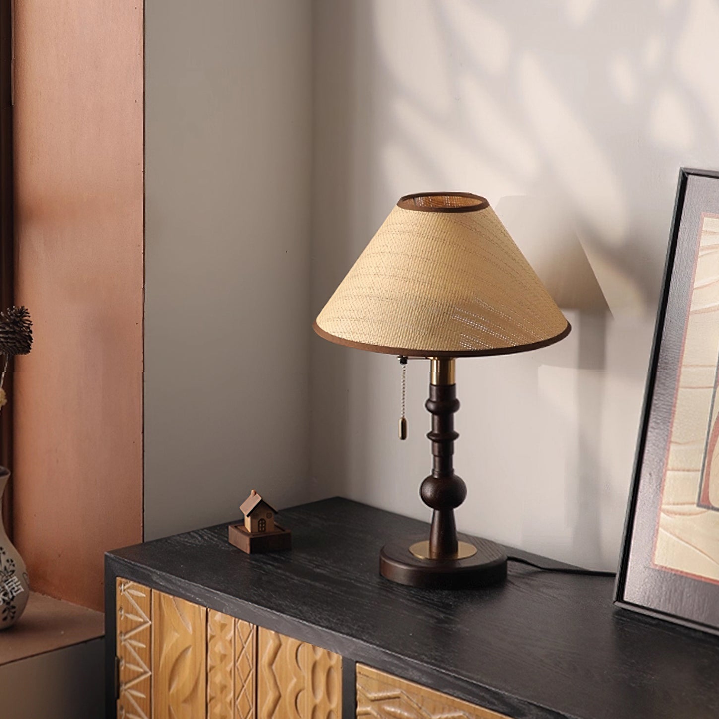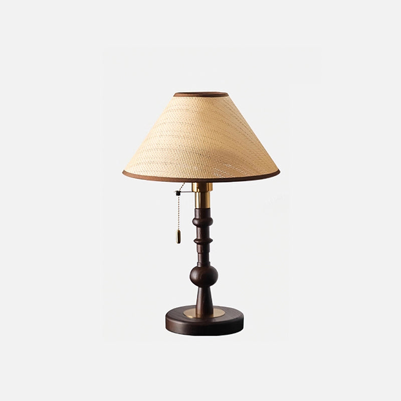 The Valinte Table Lamp from Mooijane features a carved solid wood base paired with a tapered fabric shade, blending natural texture with timeless elegance. Its warm, inviting glow and convenient pull-chain switch make it perfect for bedrooms, studies, or living rooms, adding both style and cozy sophistication to any space.