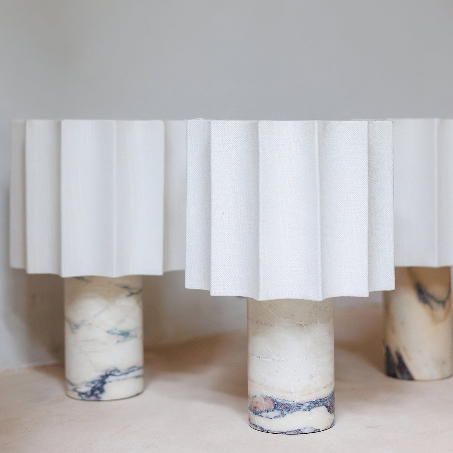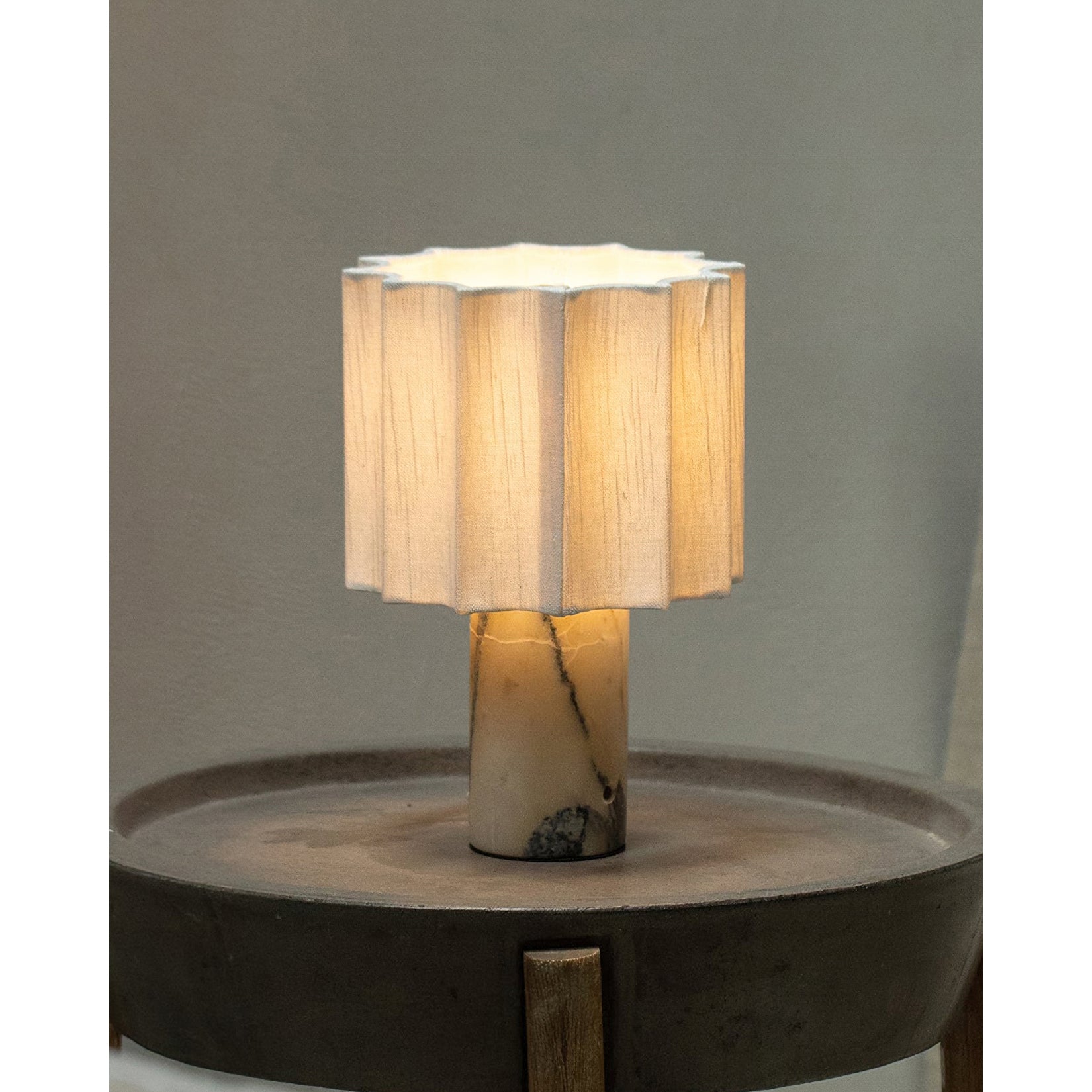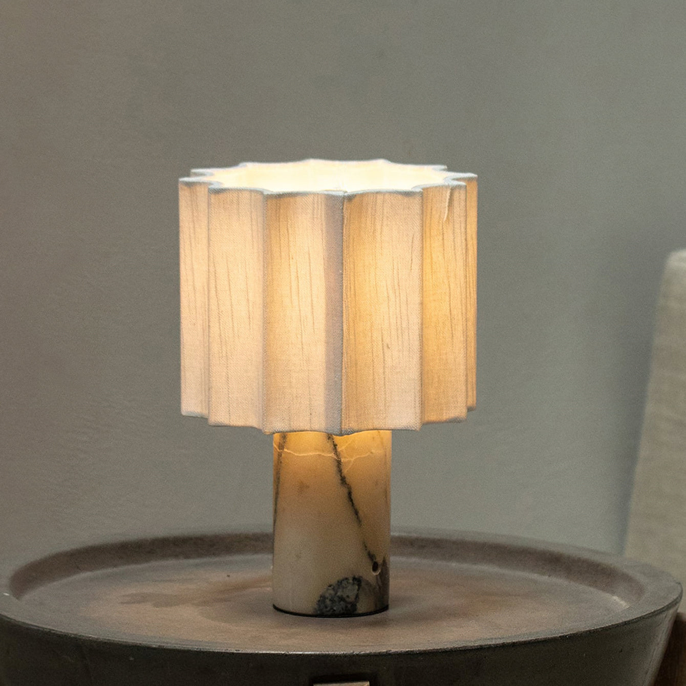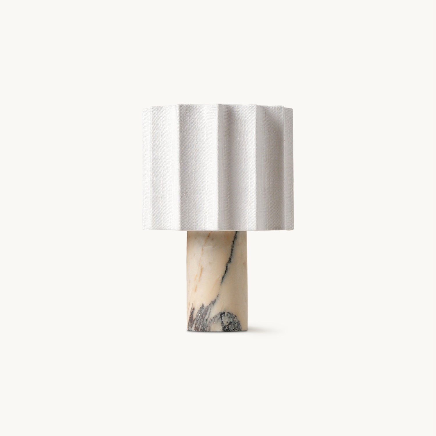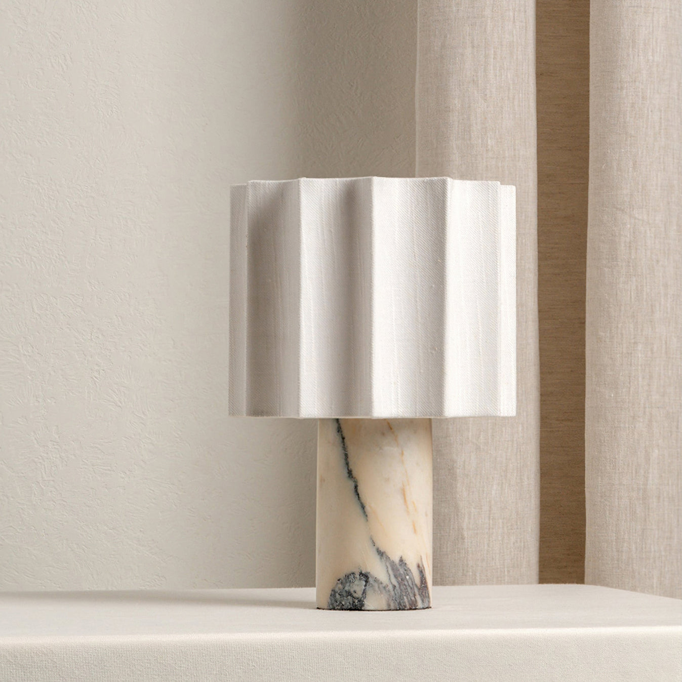 The Valli Table Lamp by Mooijane features a luxurious marble base paired with an elegant fabric shade, exuding timeless sophistication. The natural veining of the marble contrasts beautifully with the soft texture of the shade, making it a refined addition to any living room, study, or bedroom, perfectly blending style and function.