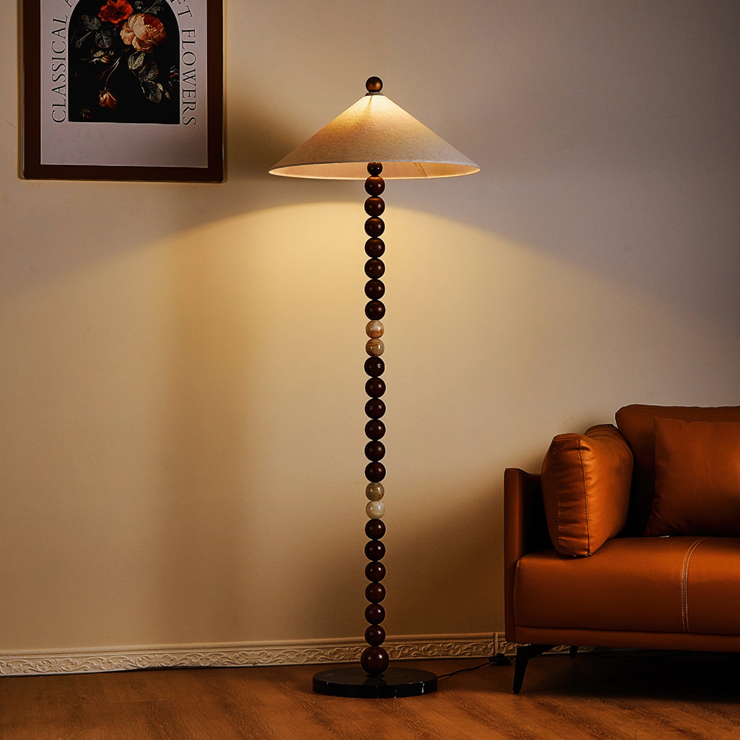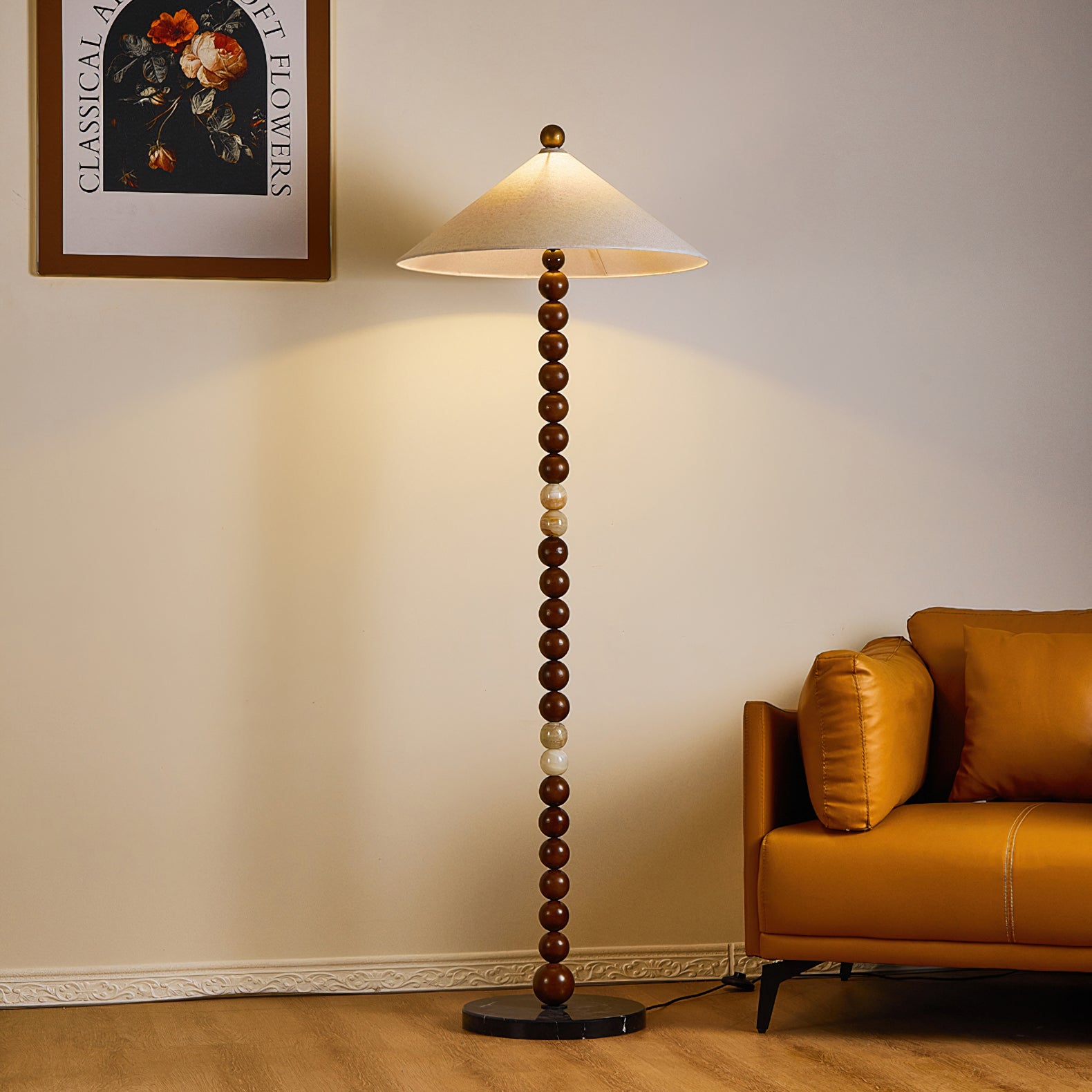 Elevate your interior with the Vanora Beaded Floor Lamp from Mooijane—where timeless warmth meets refined simplicity. The softly rounded fabric shade casts a gentle, ambient glow, while the sculptural beaded stem adds a subtle artistic accent. Perfect for living rooms, reading corners, or bedrooms, Vanora brings a touch of understated luxury to any space.