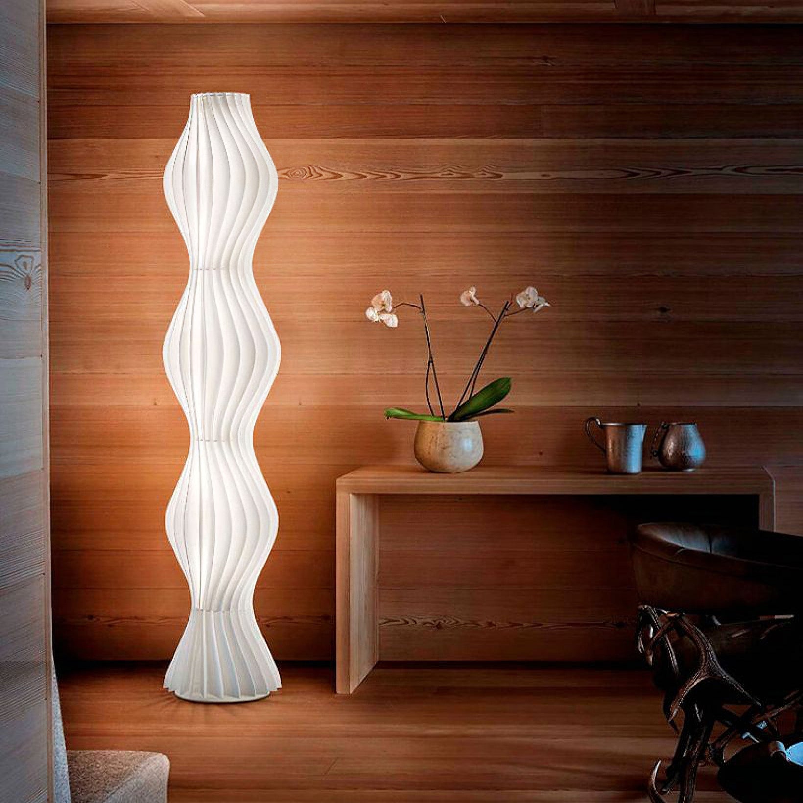 The essence of light is interpreted through a tall and curvaceous form portraying a fluid and statuesque nature. Vapor is both a floor lamp and design object of magnetic appeal, which enhances interiors by instilling a sense of vibrant harmony.