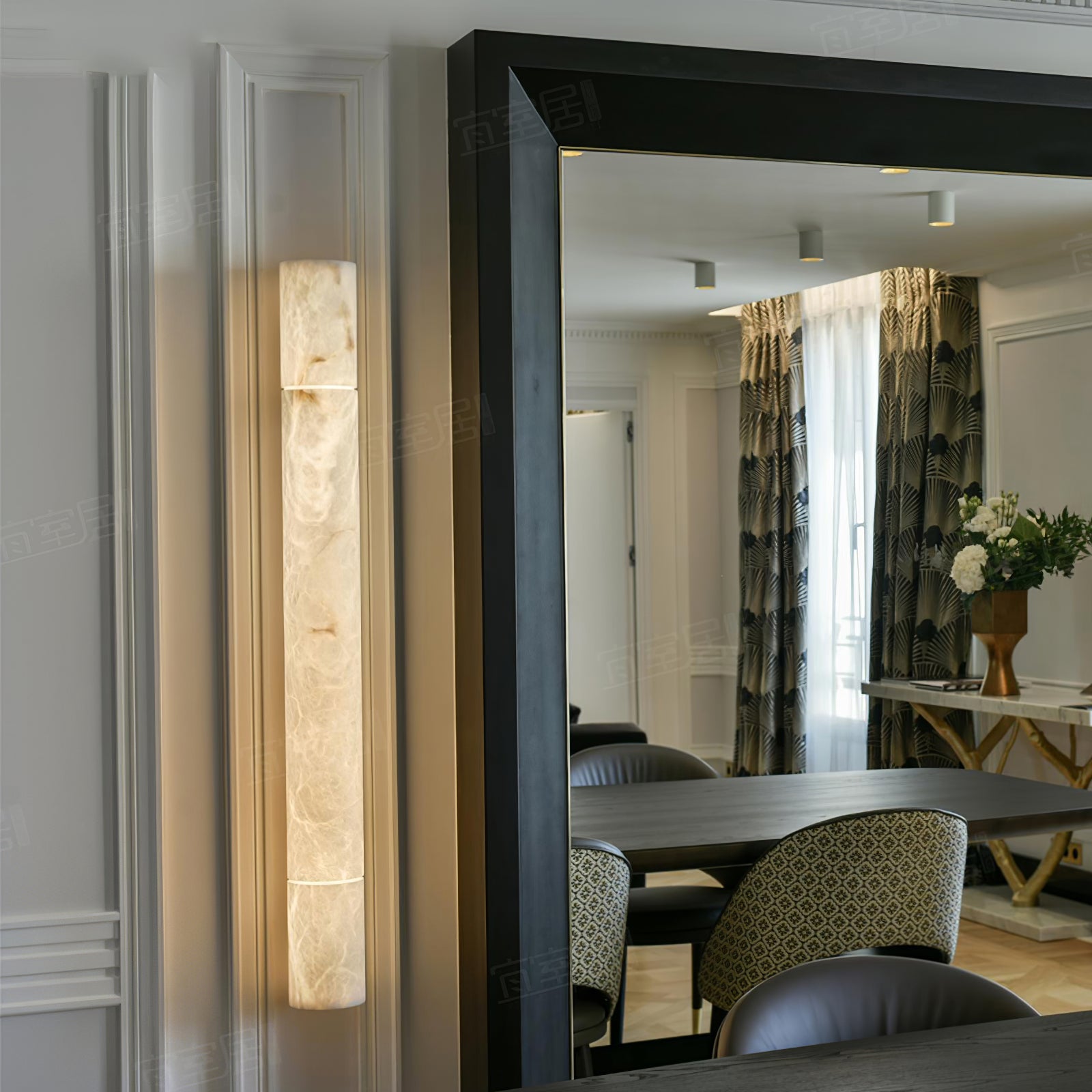 Elevate your home decor with the Vertical Alabaster Wall Lamp from liootrlamp. This sleek wall lamp features a tall, alabaster shade that emits a soft, ambient glow. Perfect for adding a touch of elegance to hallways, living rooms, or bedrooms, it enhances any space with its modern and sophisticated design. The vertical orientation makes it an ideal choice for creating a striking visual effect while providing functional lighting.
