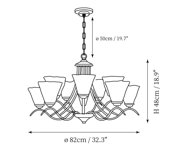 - 10Heads Size: Dia 82cm x H 48cm / ∅ 32.3″ x H 18.9″