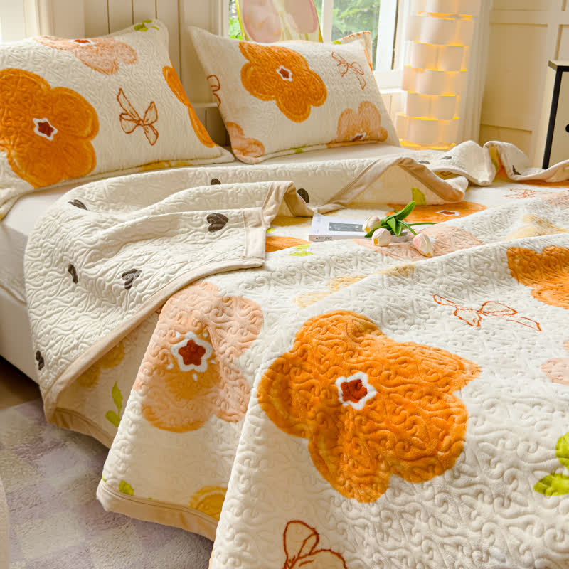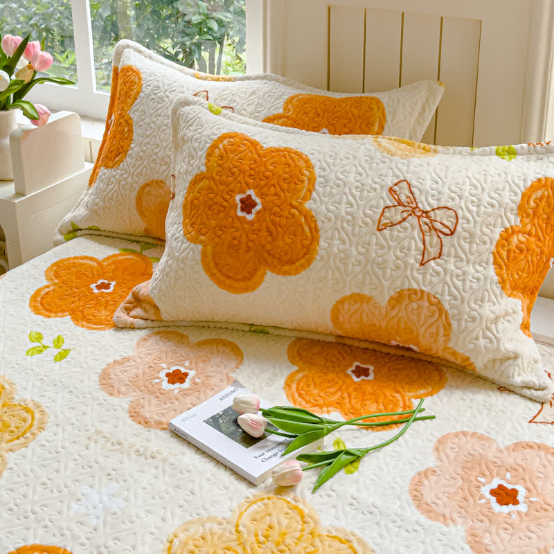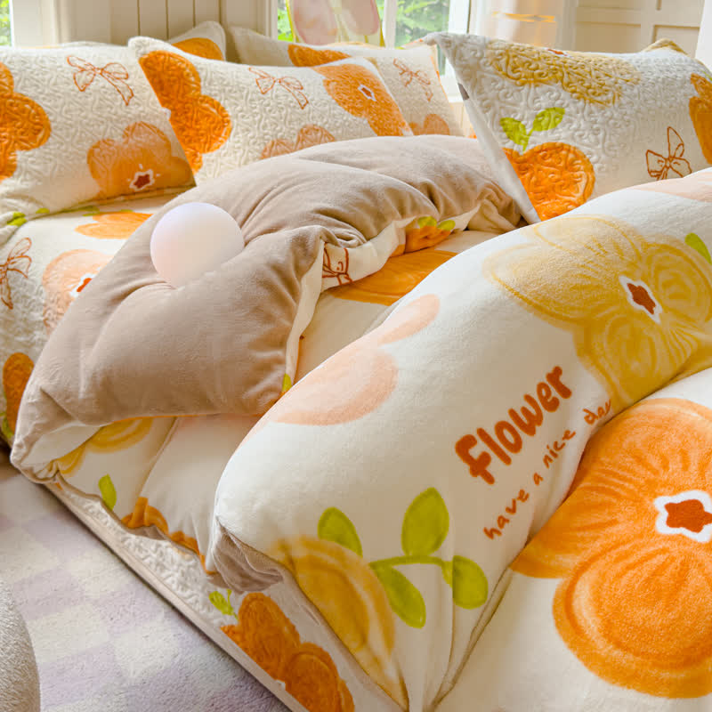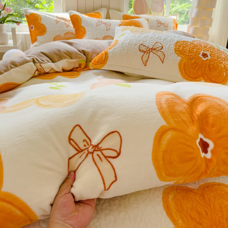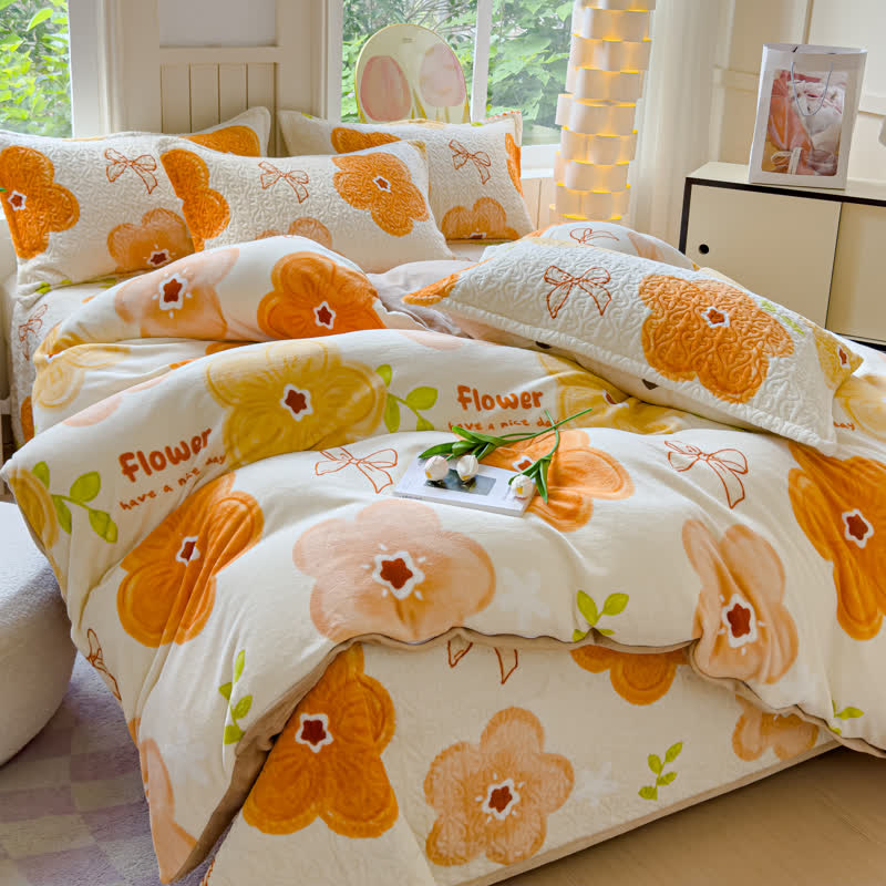 Vibrant Flower Velvet Bedding Set(4PCS)