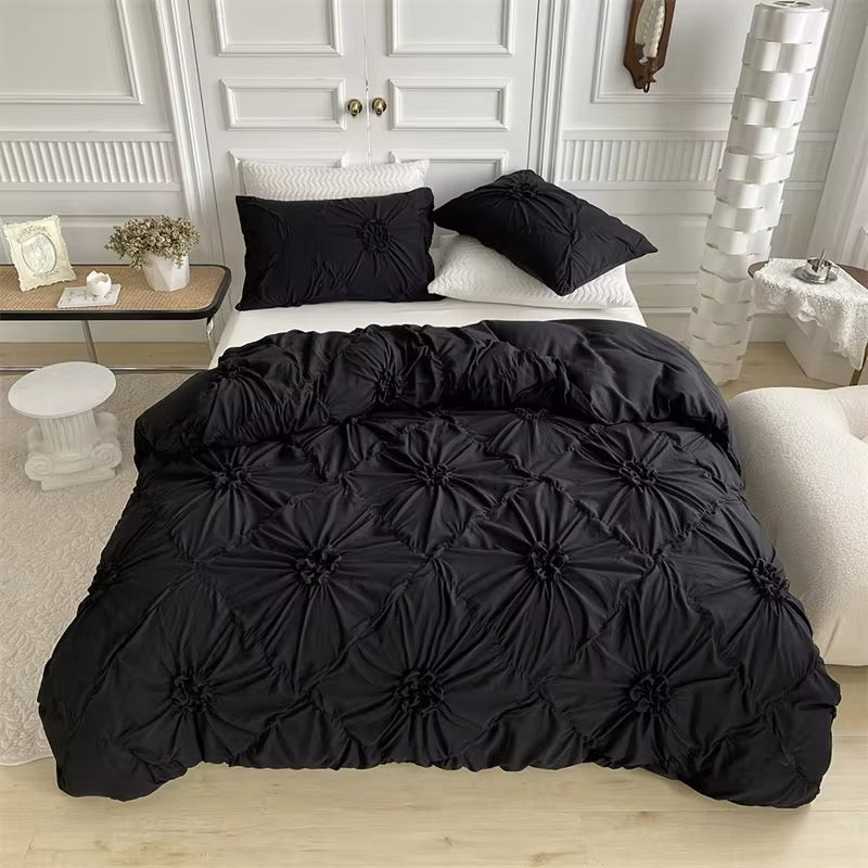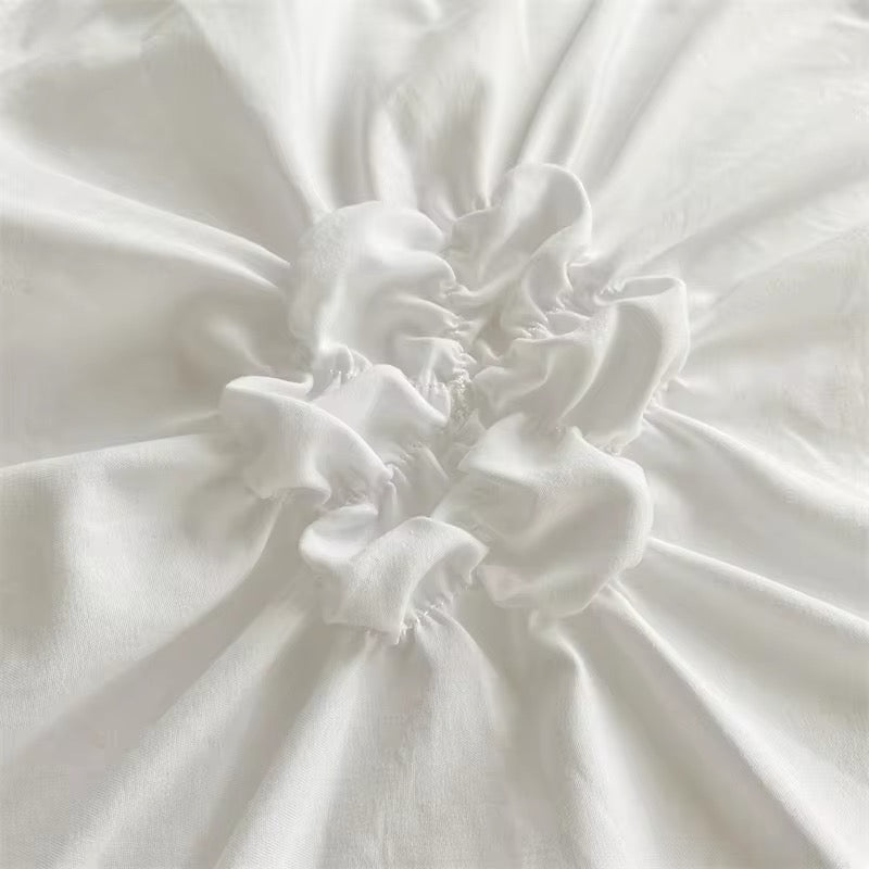 Vintage Coquette Bedding Set - White Flowers & Pinch Pleated Duvet Cover Set