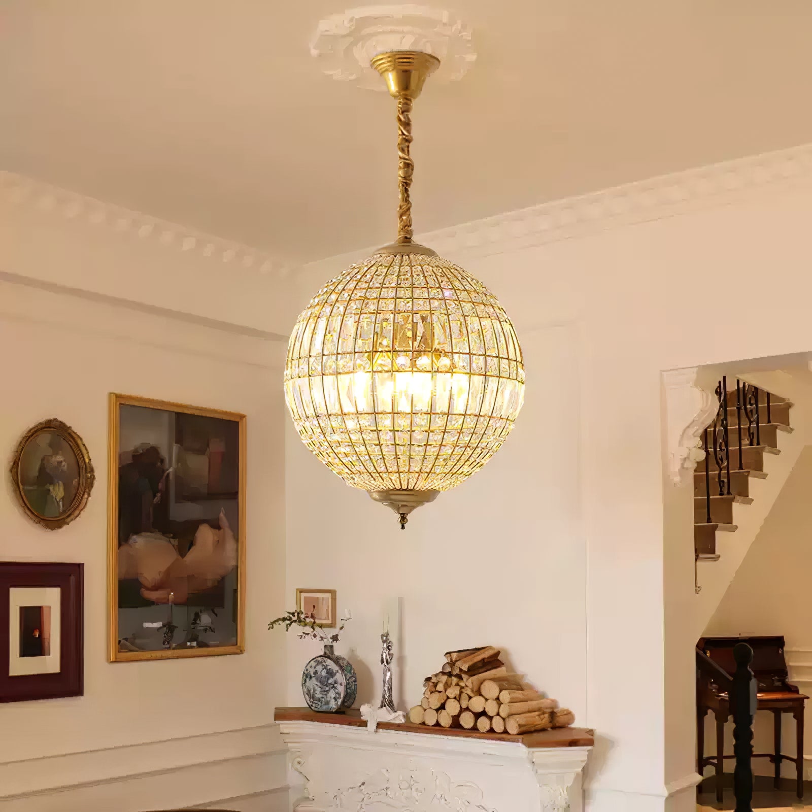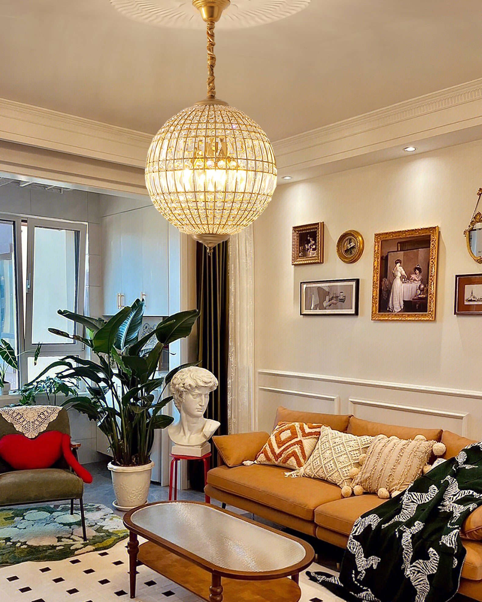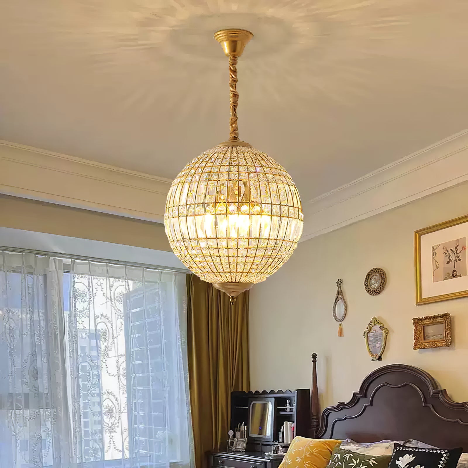 Add a touch of opulence to your home with this stunning crystal globe chandelier from Liootrlamp. Crafted with intricate detailing, this spherical pendant light combines timeless elegance with modern flair. Perfect for living rooms, dining areas, or entryways, it radiates a warm, luxurious glow, making any space feel sophisticated. The antique brass finish and sparkling crystal accents create a captivating centerpiece, bringing a refined charm to your interior décor. Let Liootrlamp elevate your home lighting with this exquisite design.