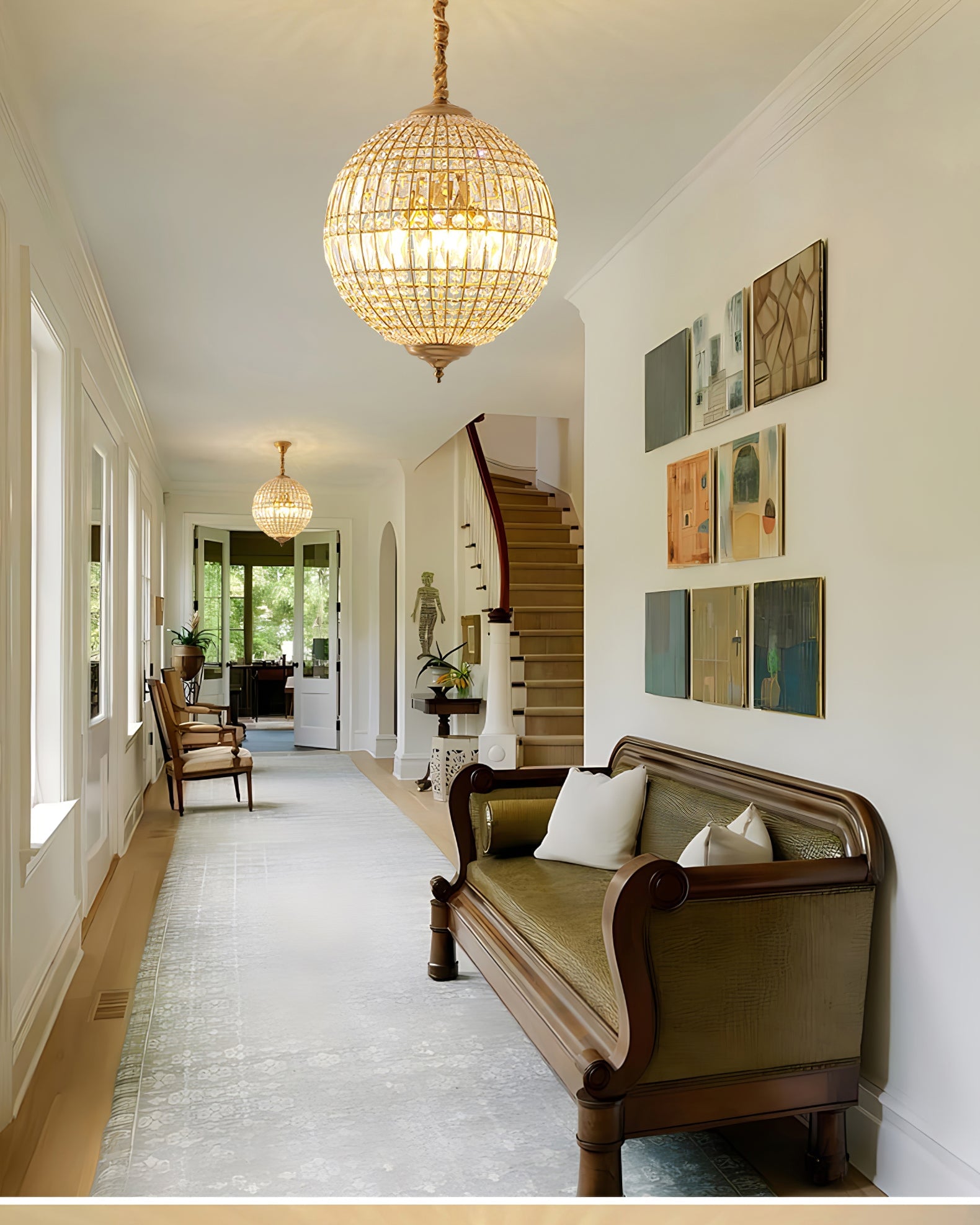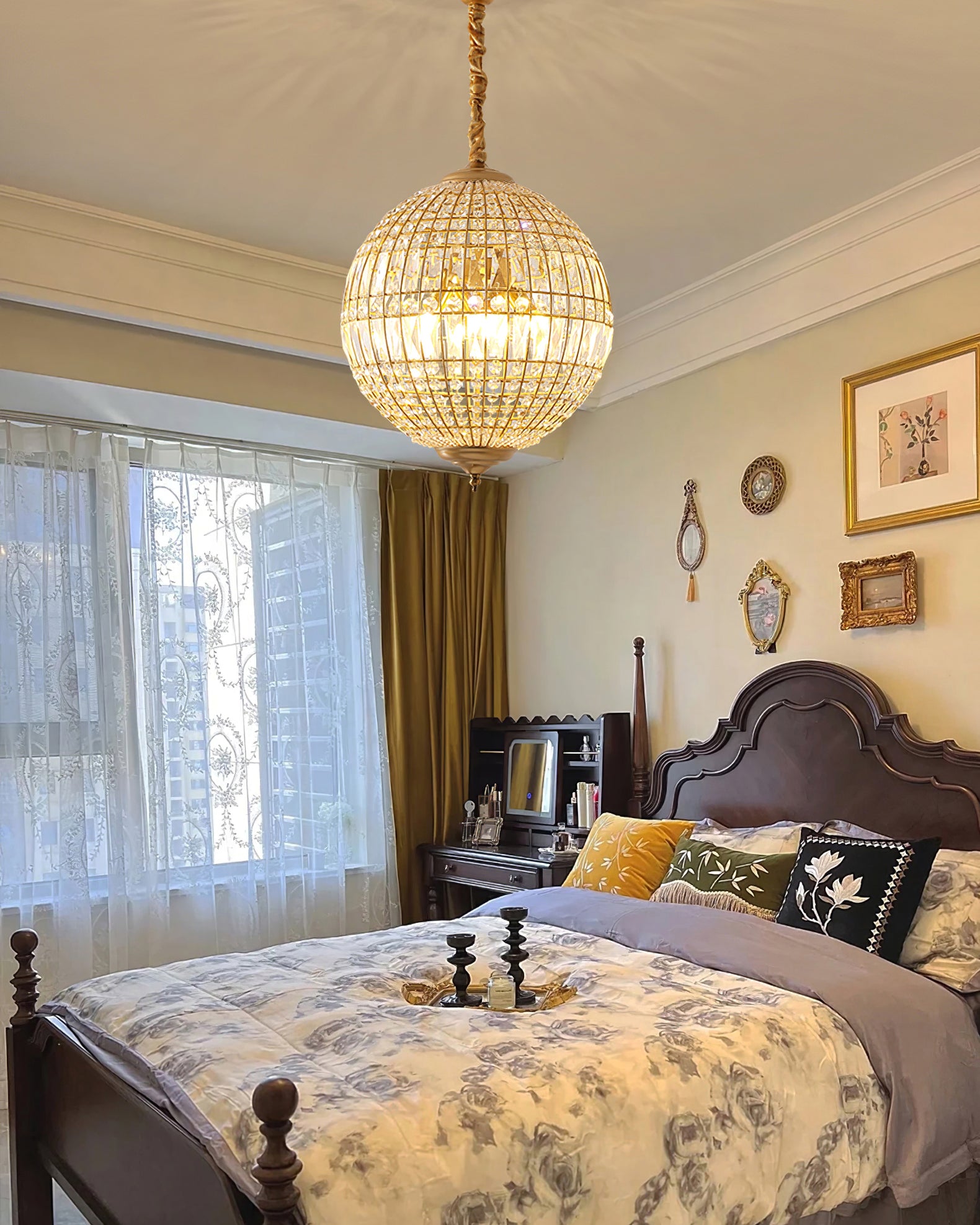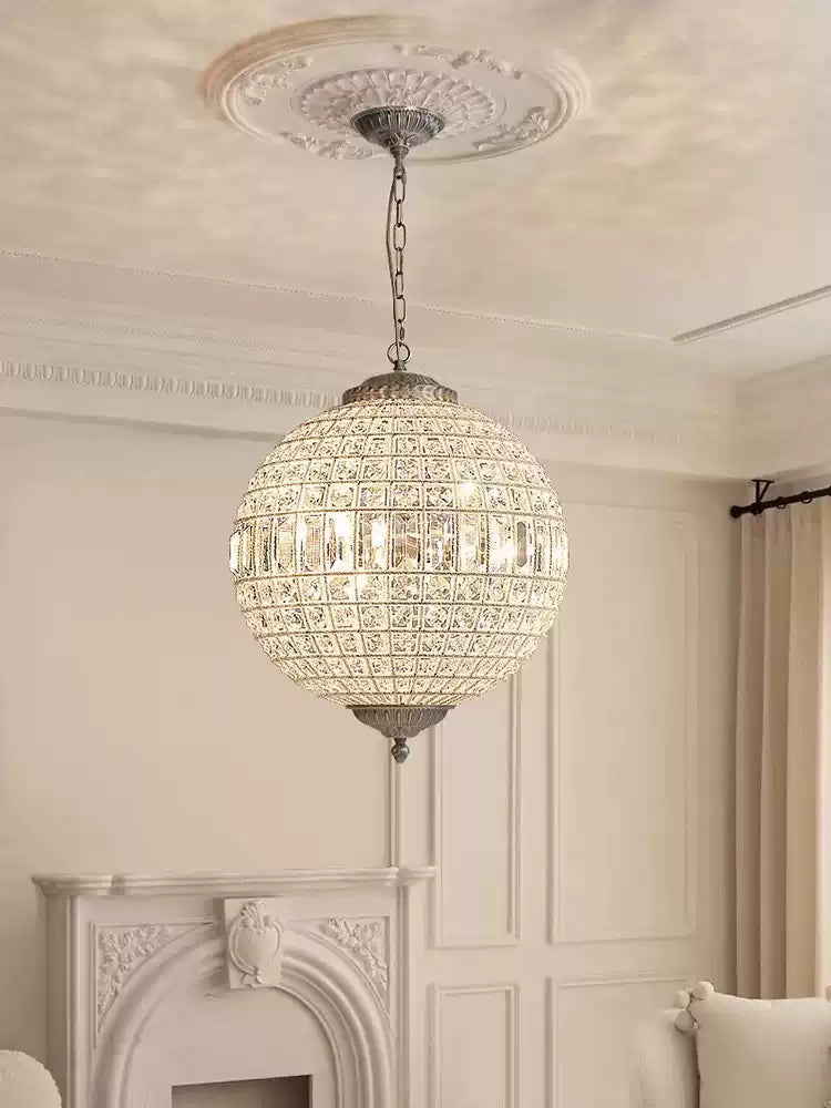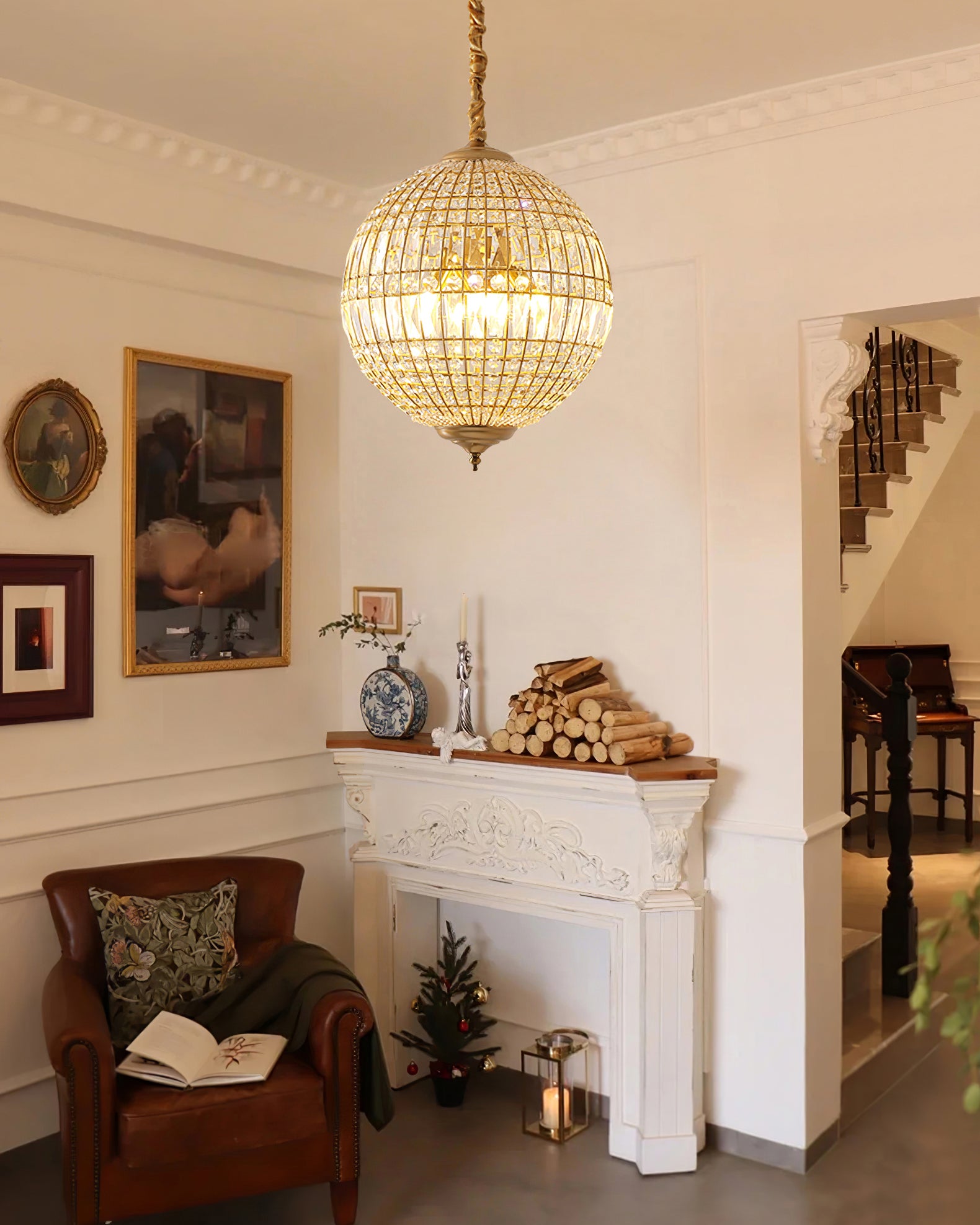 Add a touch of opulence to your home with this stunning crystal globe chandelier from Liootrlamp. Crafted with intricate detailing, this spherical pendant light combines timeless elegance with modern flair. Perfect for living rooms, dining areas, or entryways, it radiates a warm, luxurious glow, making any space feel sophisticated. The antique brass finish and sparkling crystal accents create a captivating centerpiece, bringing a refined charm to your interior décor. Let Liootrlamp elevate your home lighting with this exquisite design.