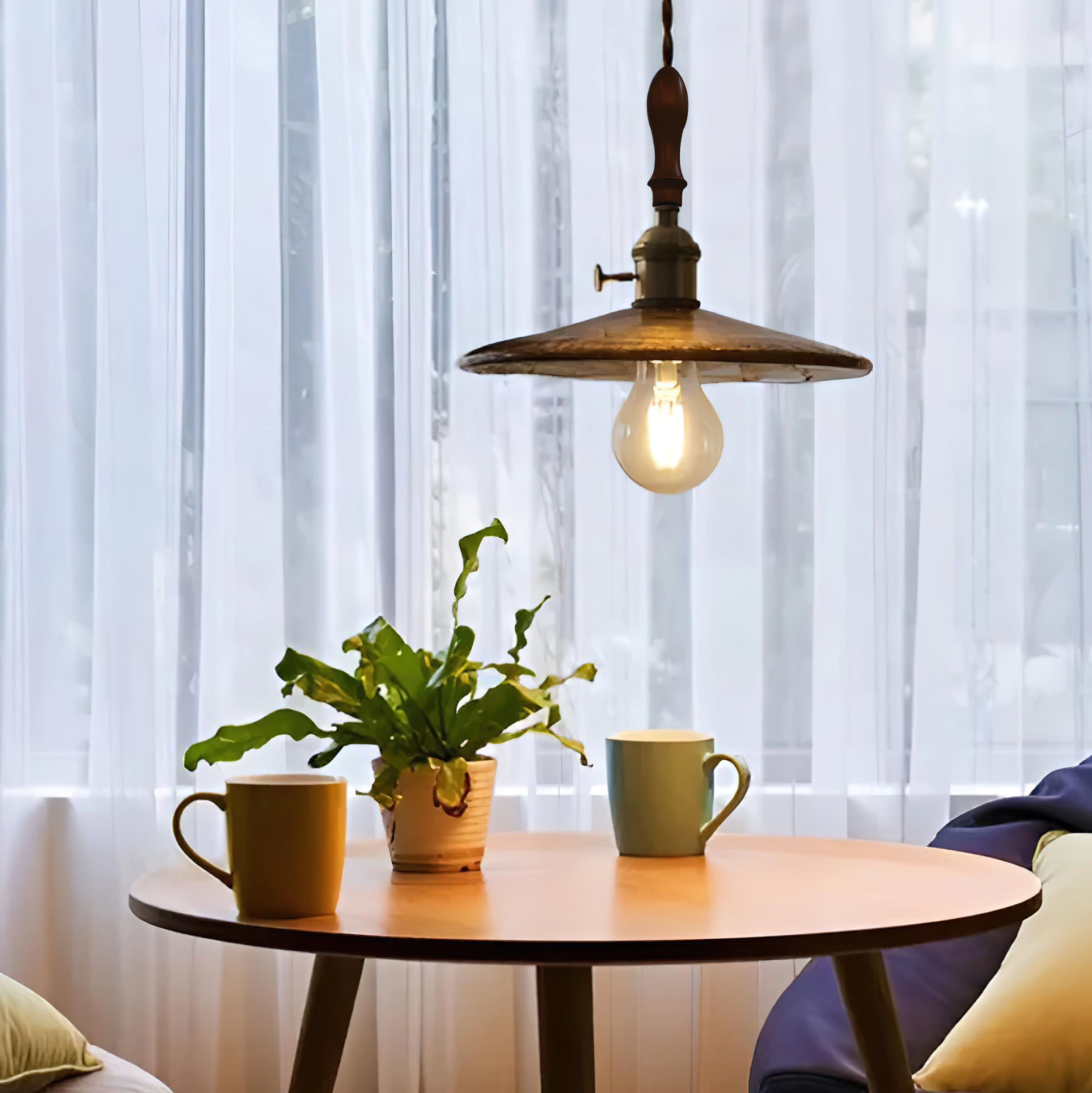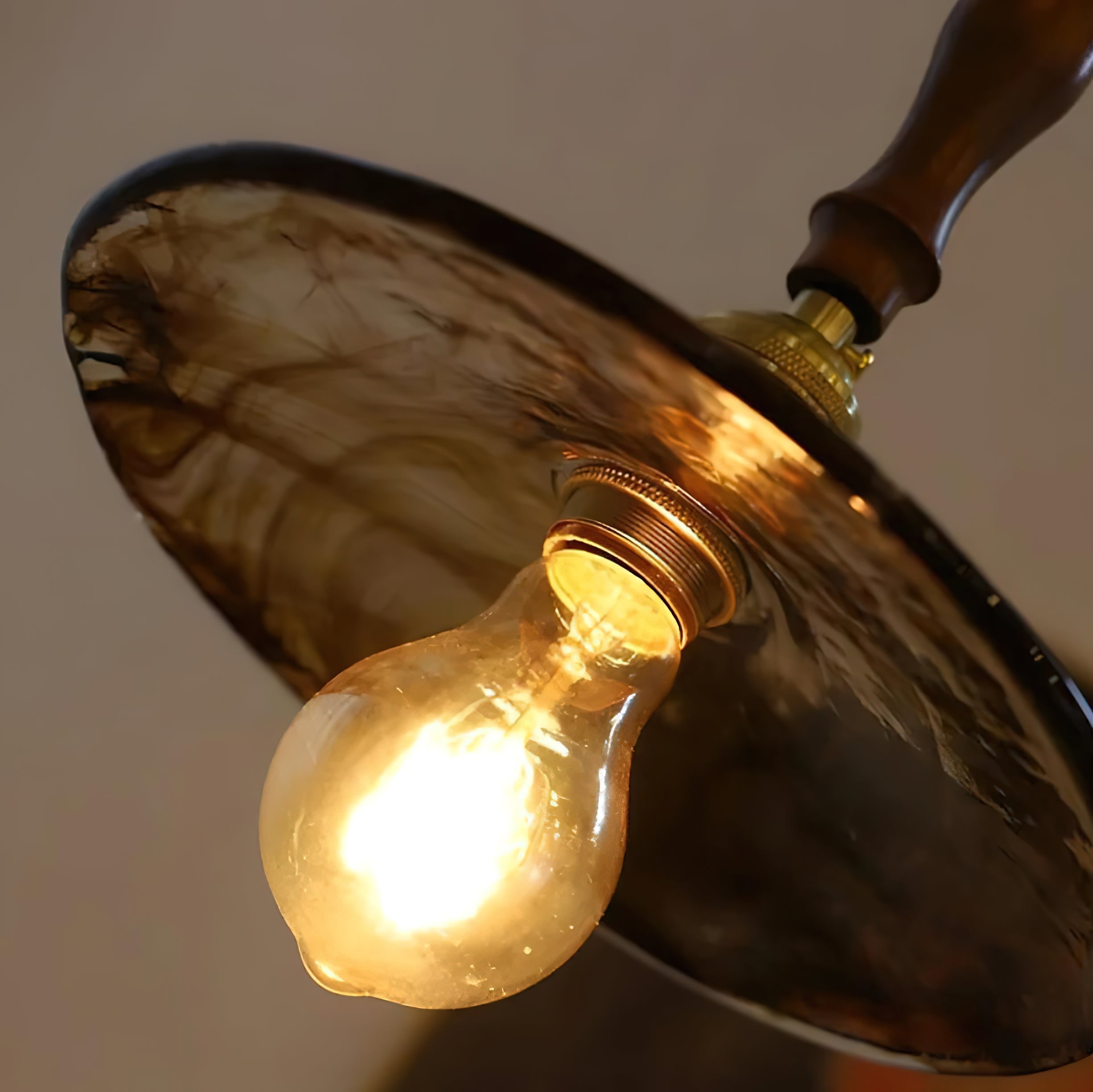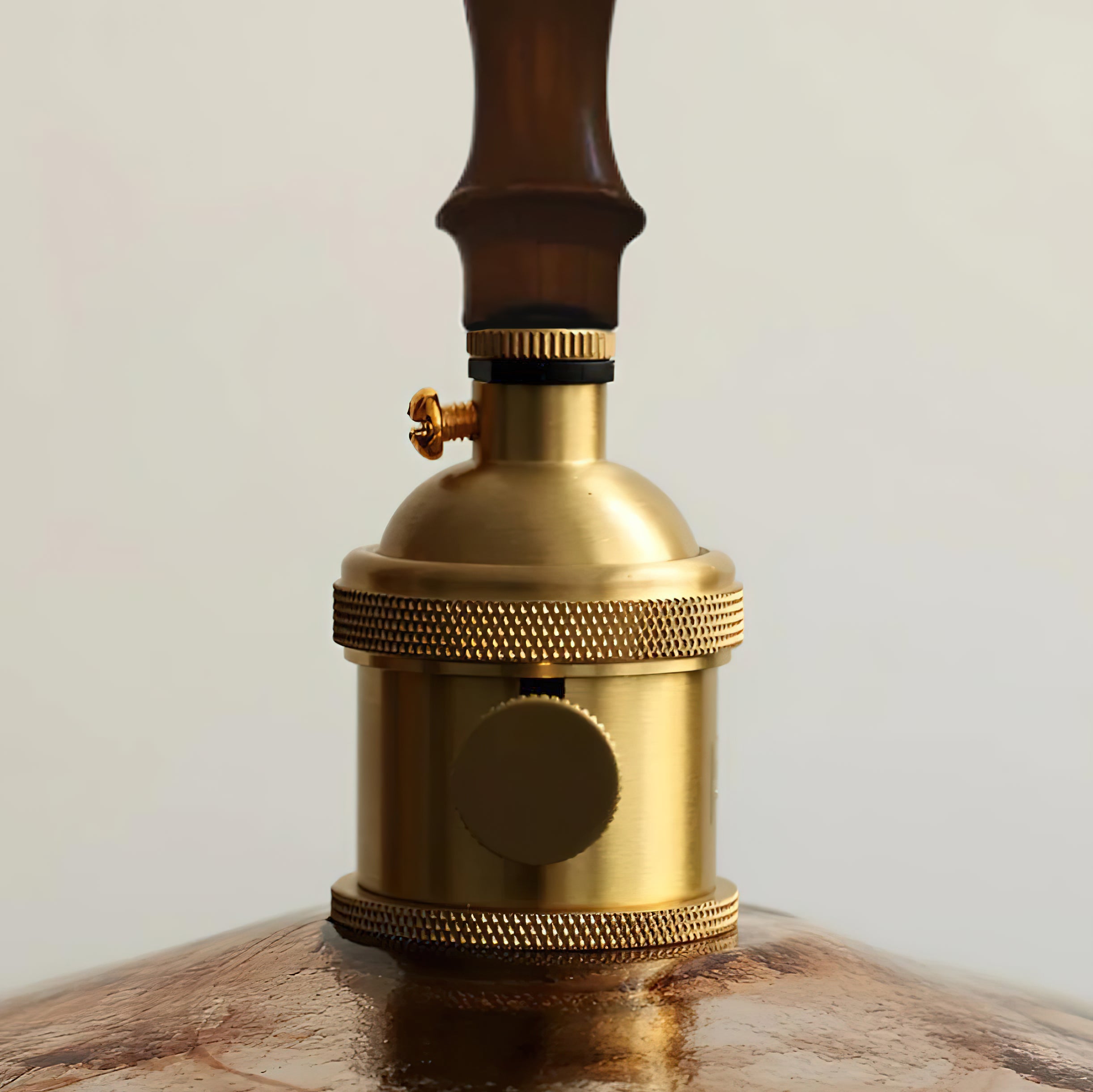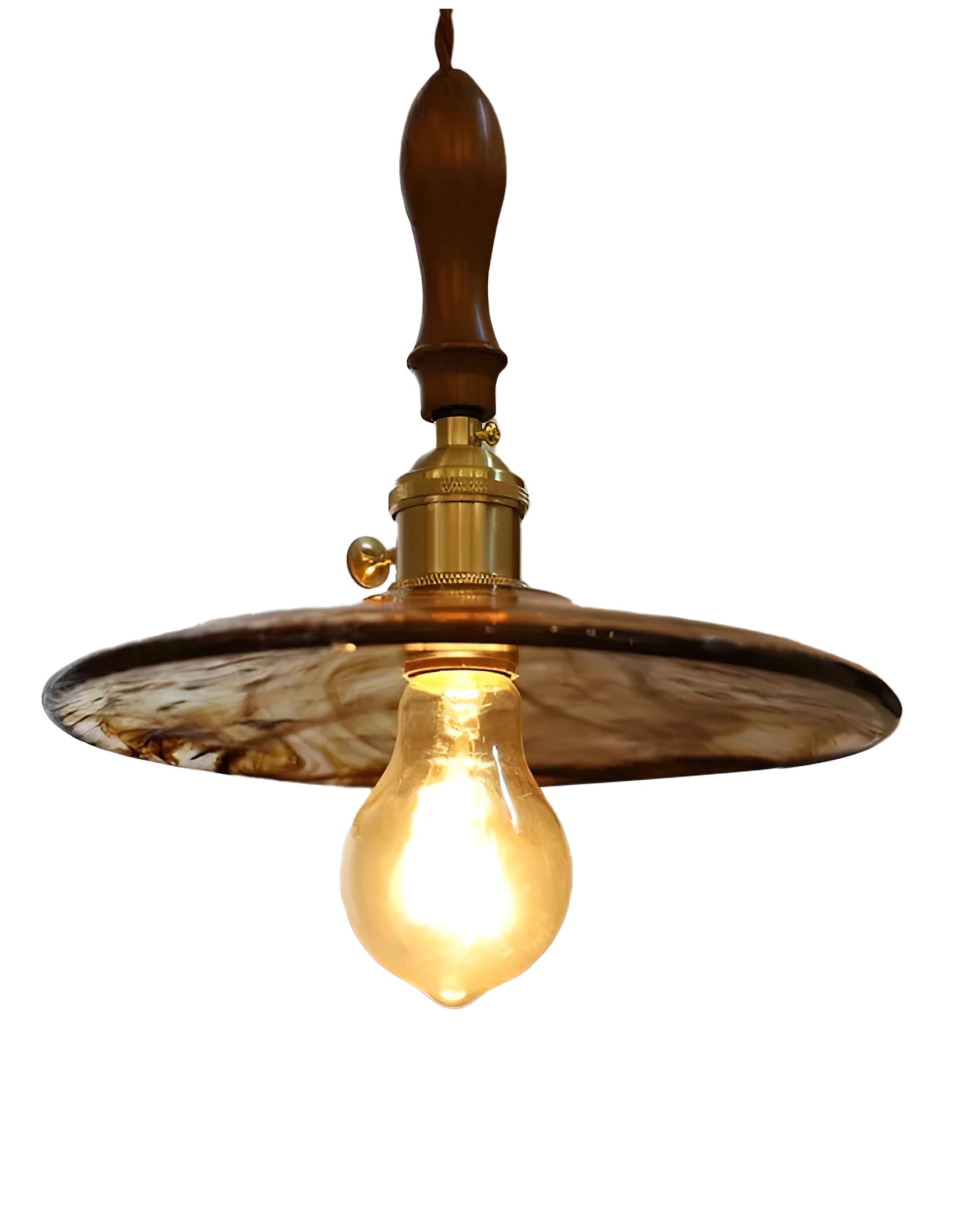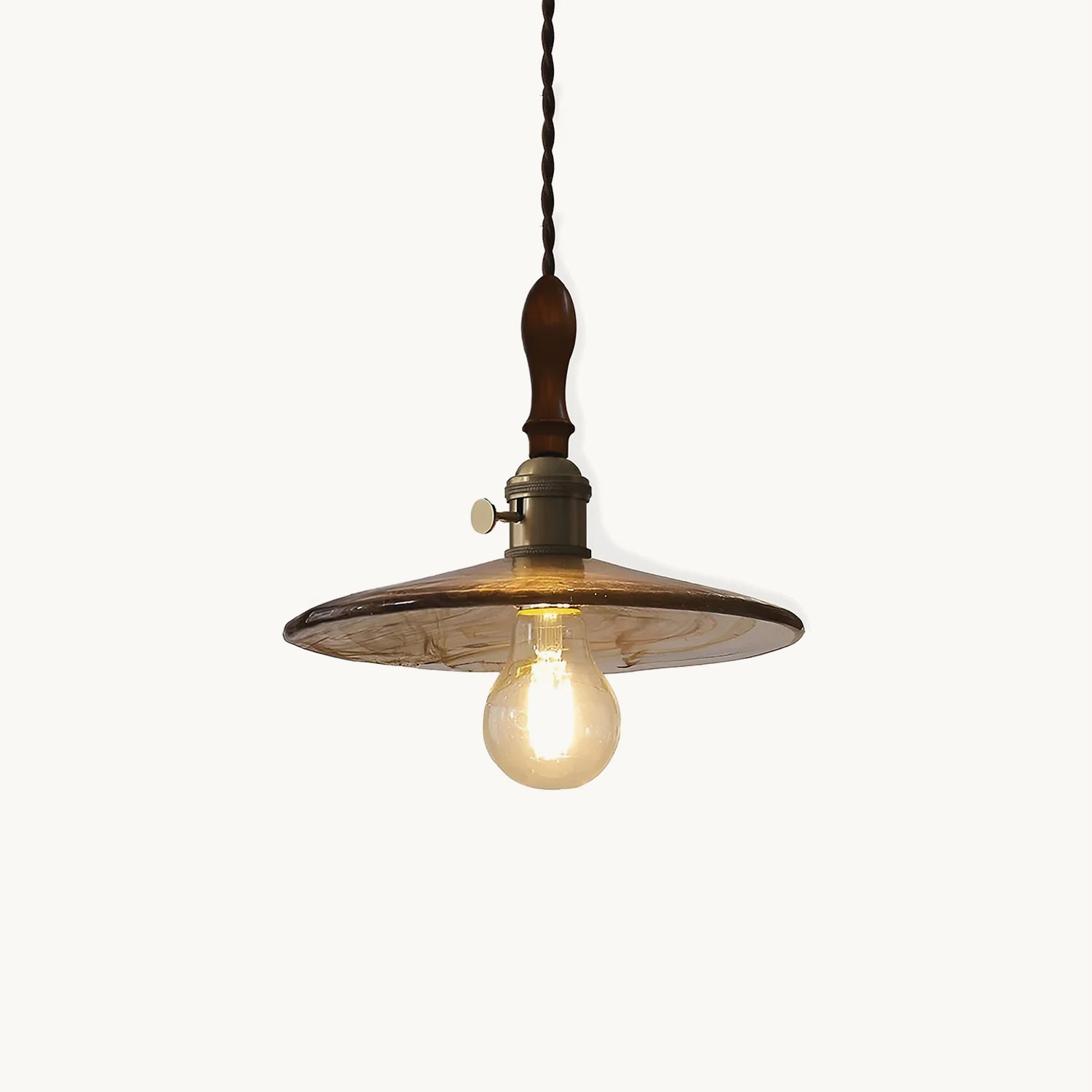This classic vintage walnut glass chandelier combines walnut wood with glass and brass accents to bring a sophisticated ambiance to any room. Its filament-style bulbs add a warm glow, while brass details add a touch of luxury. Perfect for any modern, eclectic or vintage styled space.