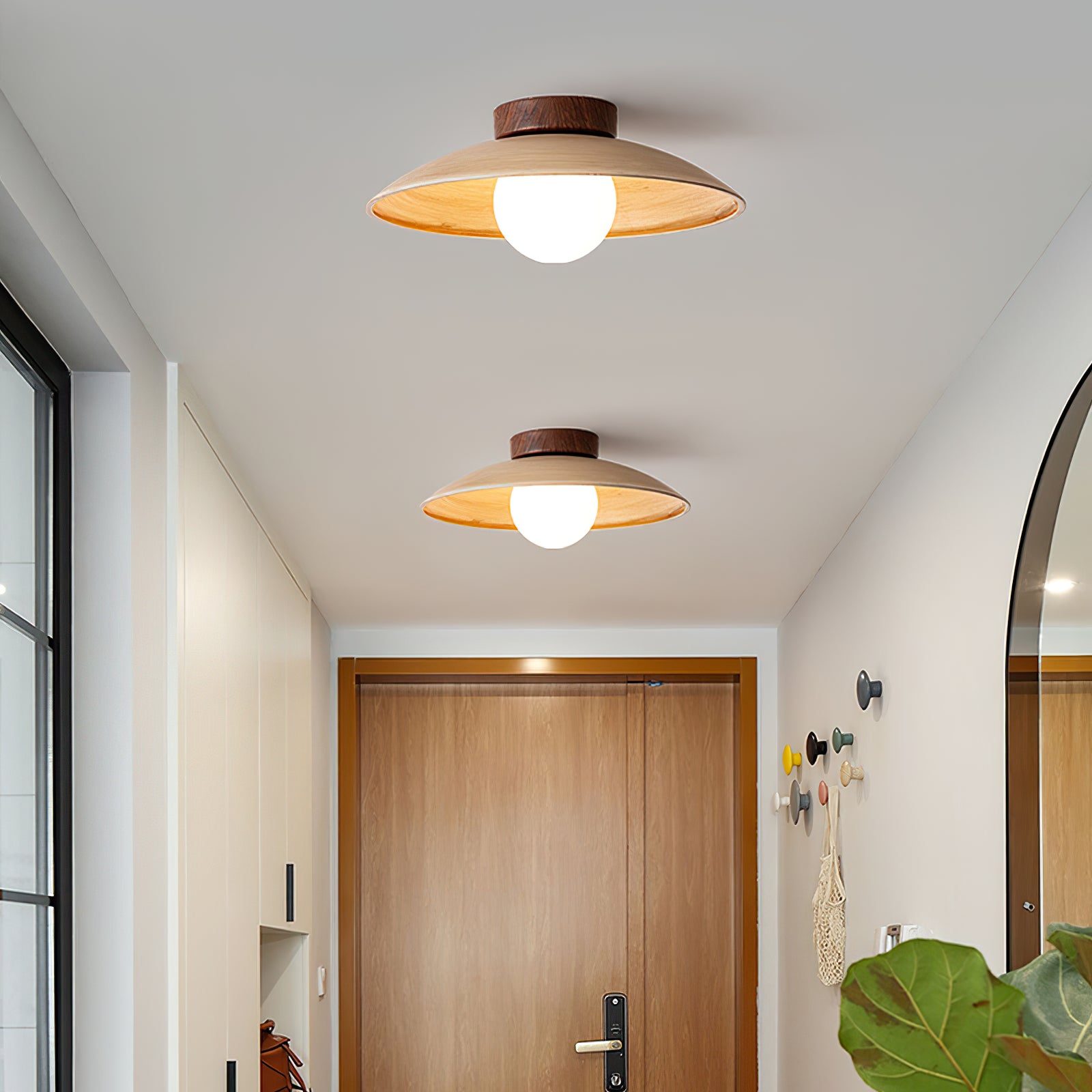 The Vintage Wood Dome Ceiling Light combines rustic charm with modern simplicity, creating a warm and inviting fixture for any room. Featuring a natural wood dome-shaped shade, this light has a smooth, organic finish that highlights the wood grain, adding a touch of nature to the decor. The central globe bulb provides a soft, diffused glow, creating cozy and ambient lighting. This ceiling light is perfect for spaces like entryways, hallways, or kitchens, where it brings both functionality and a stylish vintage appeal that complements various interior styles, from minimalist to farmhouse.