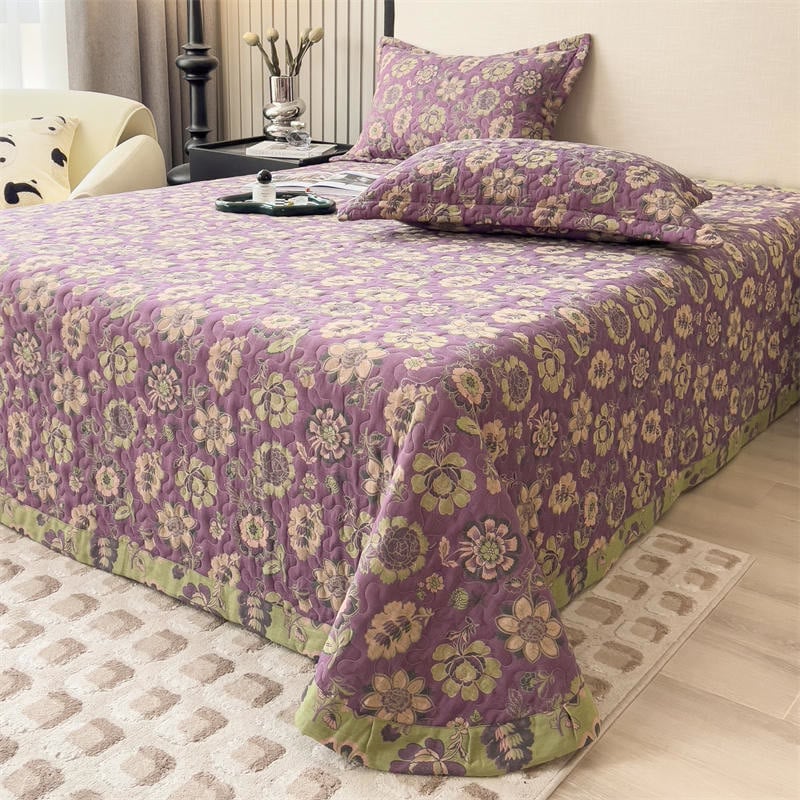 Crafted from premium cotton gauze, this coverlet offers an incredibly soft and lightweight feel against the skin. Adorned with intricate floral prints, it adds a touch of elegance to your room decor. Paired with two pillowcases, it is a perfect choice for everyday use.