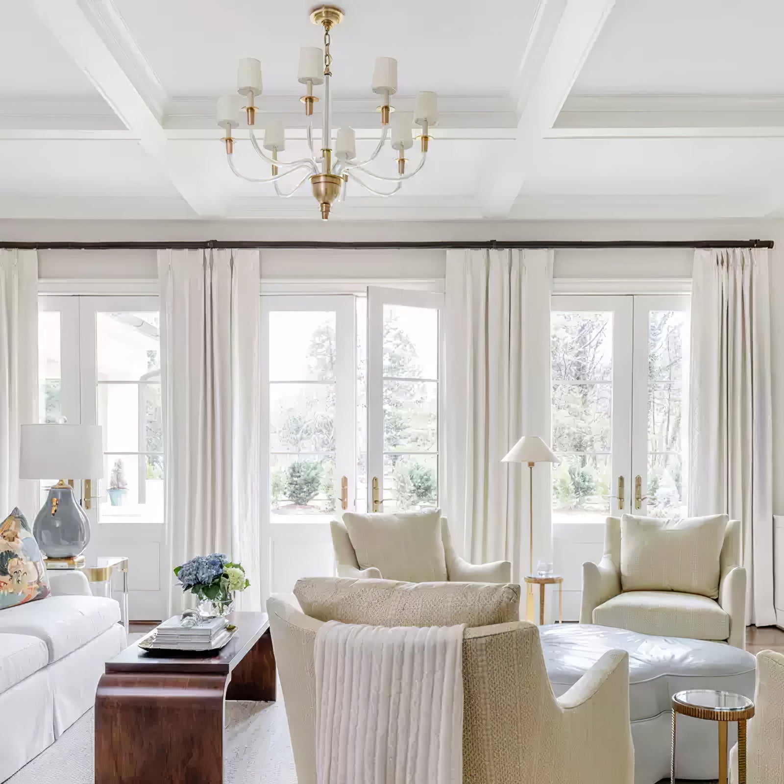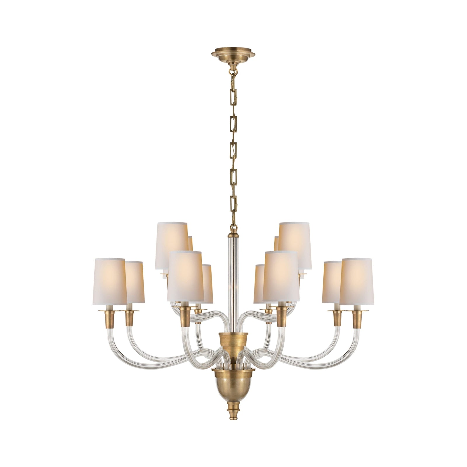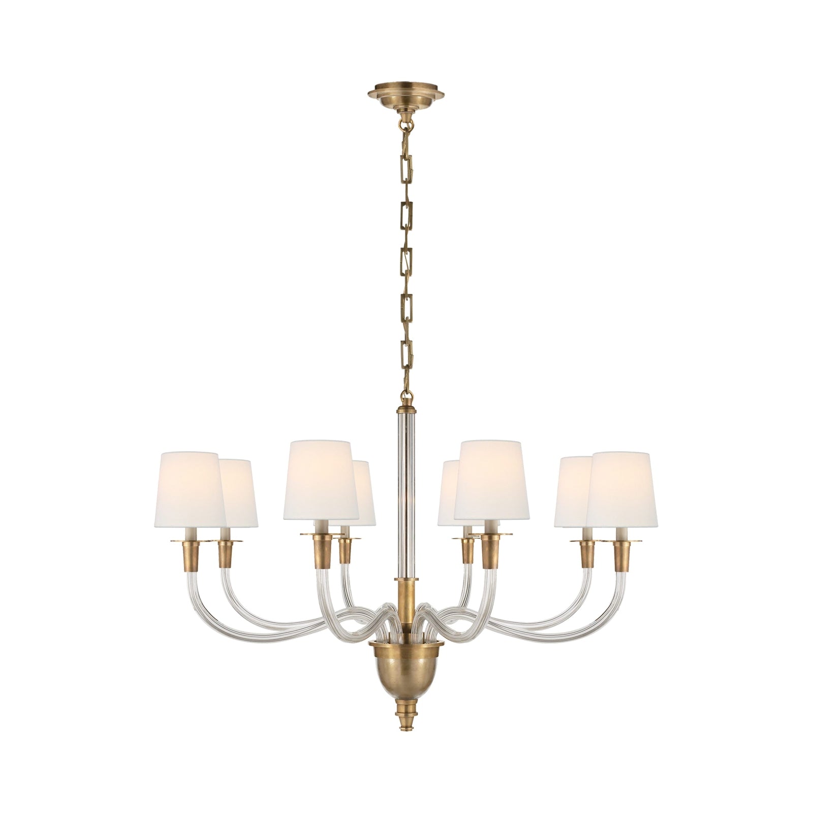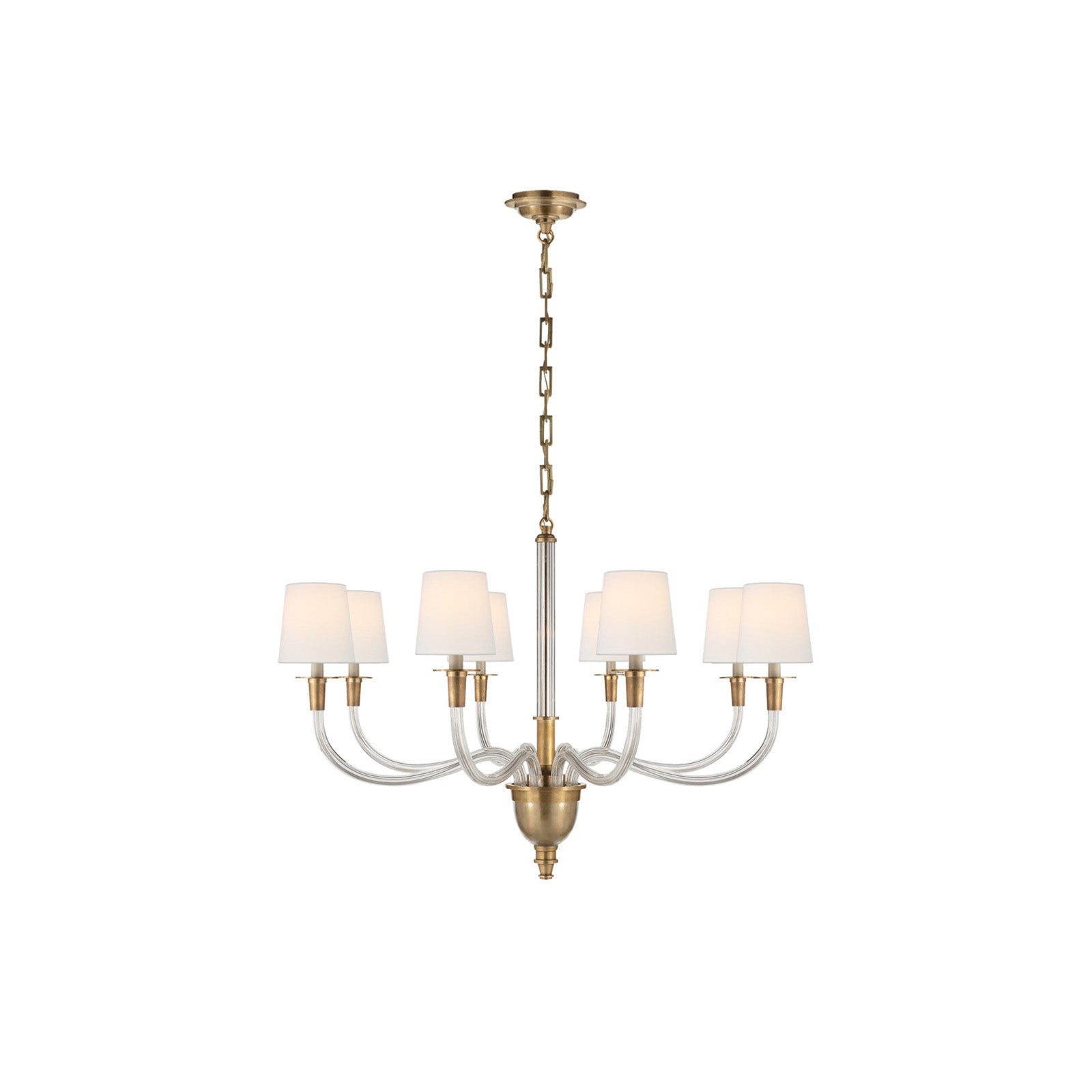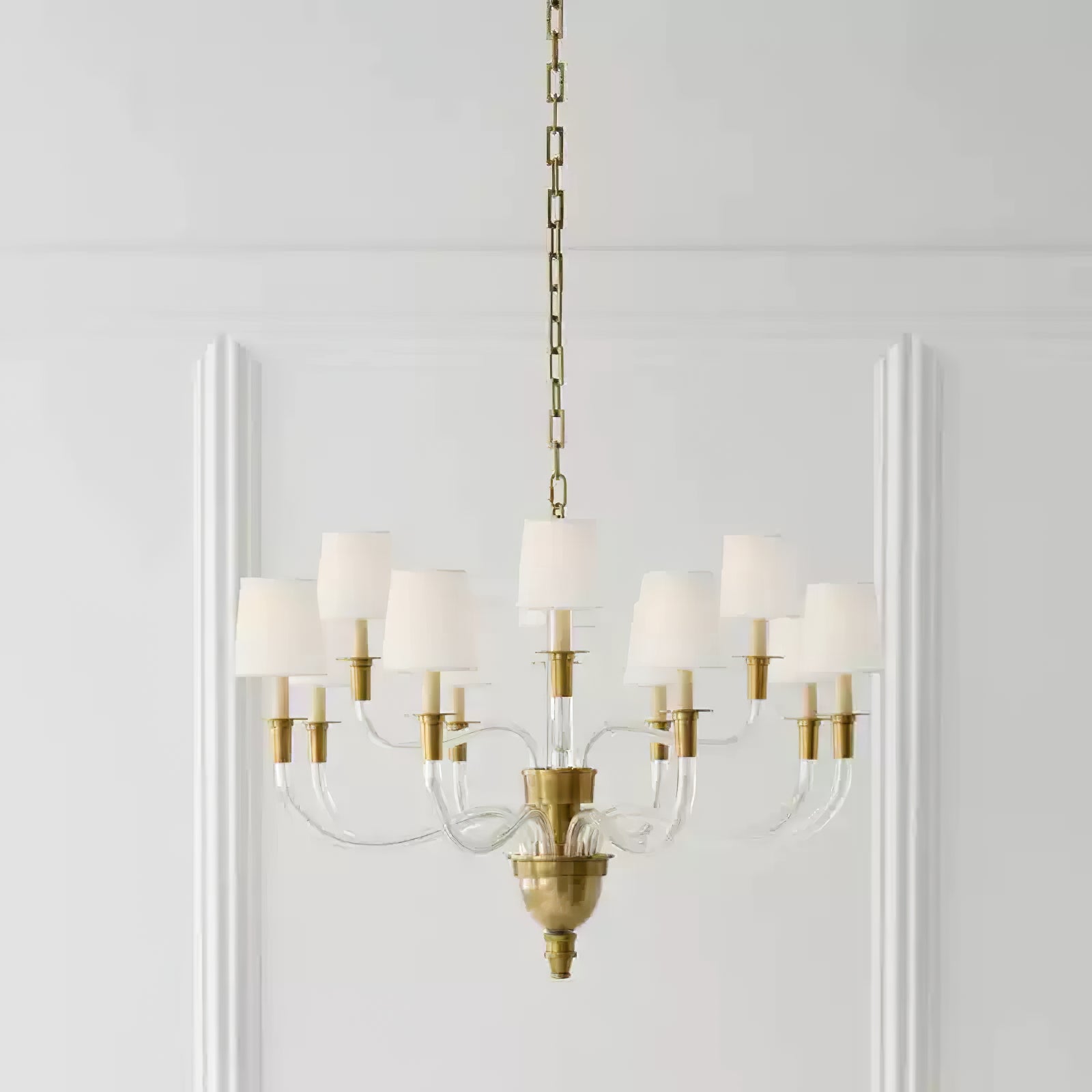 The Vivian Modern Nickel Multi-Arm Chandelier is a sophisticated blend of modern minimalism and timeless charm. Featuring a central stem finished in brushed nickel, this chandelier branches out into multiple gracefully curved arms, each supporting a light fixture adorned with a refined fabric or glass shade. The elegant arms are crafted with subtle details, adding a touch of fluidity and harmony to the overall design.