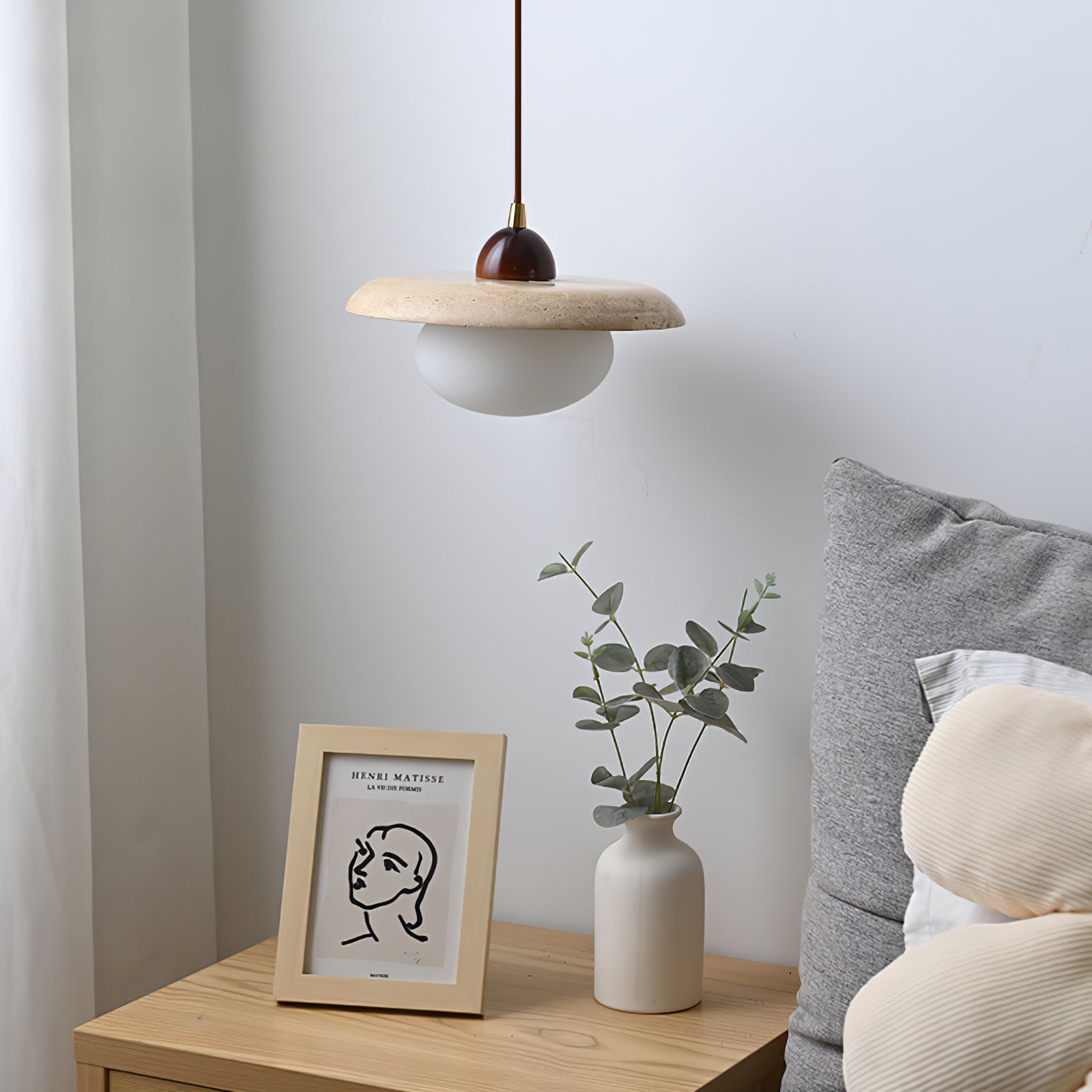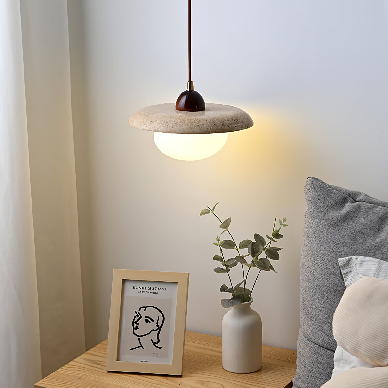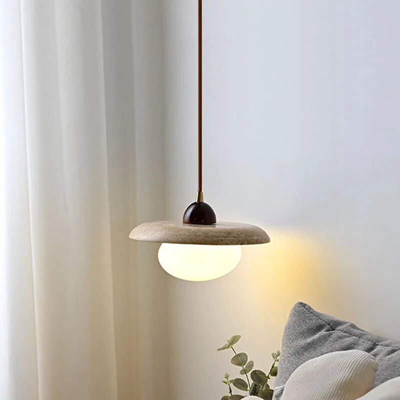 Wabi-Sabi Travertine Bedside Pendant Lamp