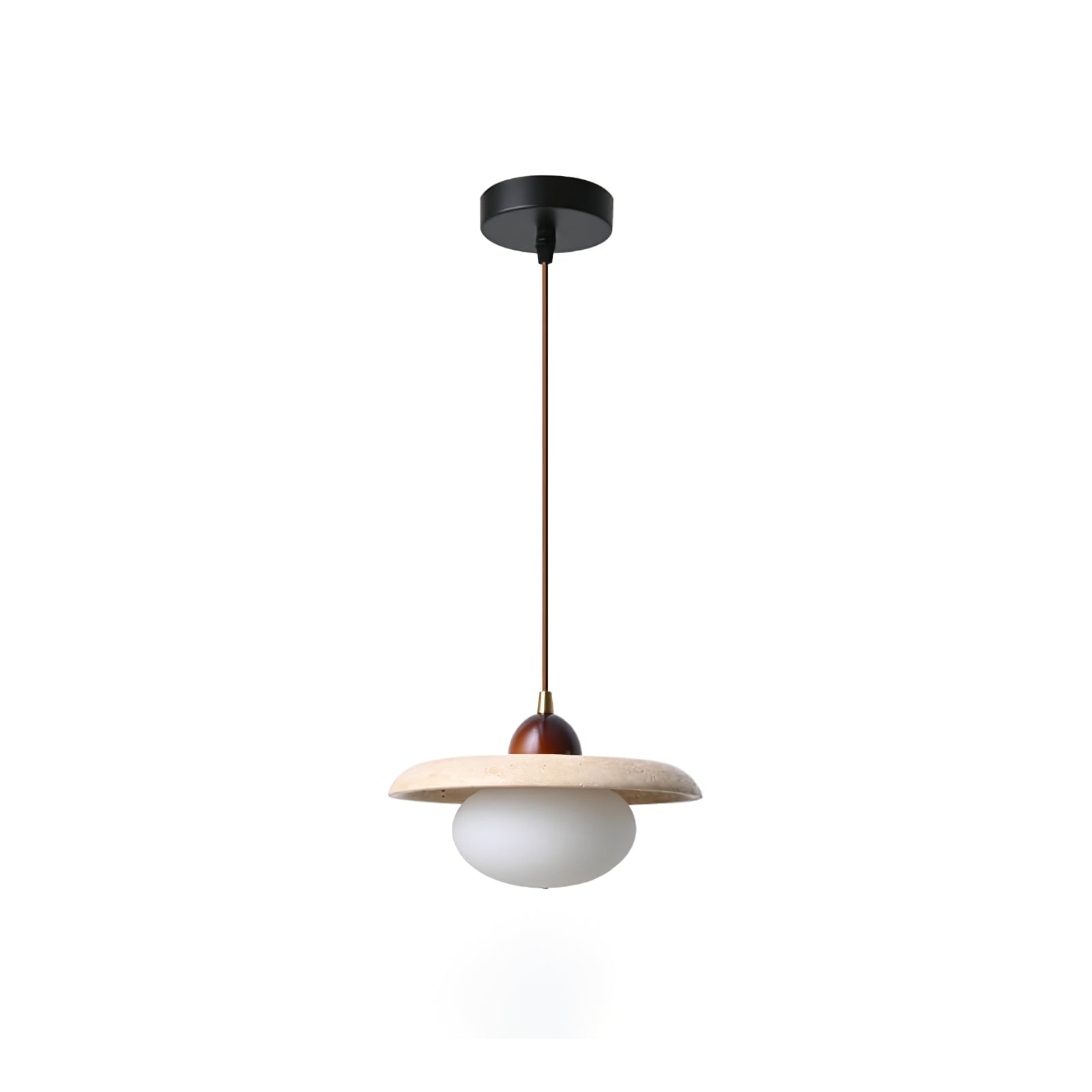 The Wabi-Sabi Travertine Bedside Pendant Lamp embodies simplicity and natural elegance, inspired by the Japanese Wabi-Sabi aesthetic. Its travertine stone shade features an organic, imperfect texture that enhances its earthy charm. The smooth, rounded glass diffuser beneath emits a warm, gentle glow, creating a cozy and serene ambiance ideal for bedside lighting. With a minimalist design and natural materials, this pendant lamp is perfect for adding a touch of tranquility and sophistication to bedrooms or other intimate spaces, celebrating beauty in simplicity and imperfection.