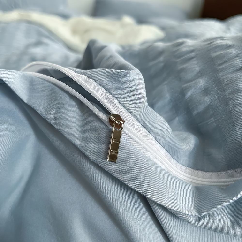 Solid color bedding duvet cover set with waffled stripes pattern all over shams and duvet cover. This one is a perfect addition for girly bedrooms like preppy or dopamine.