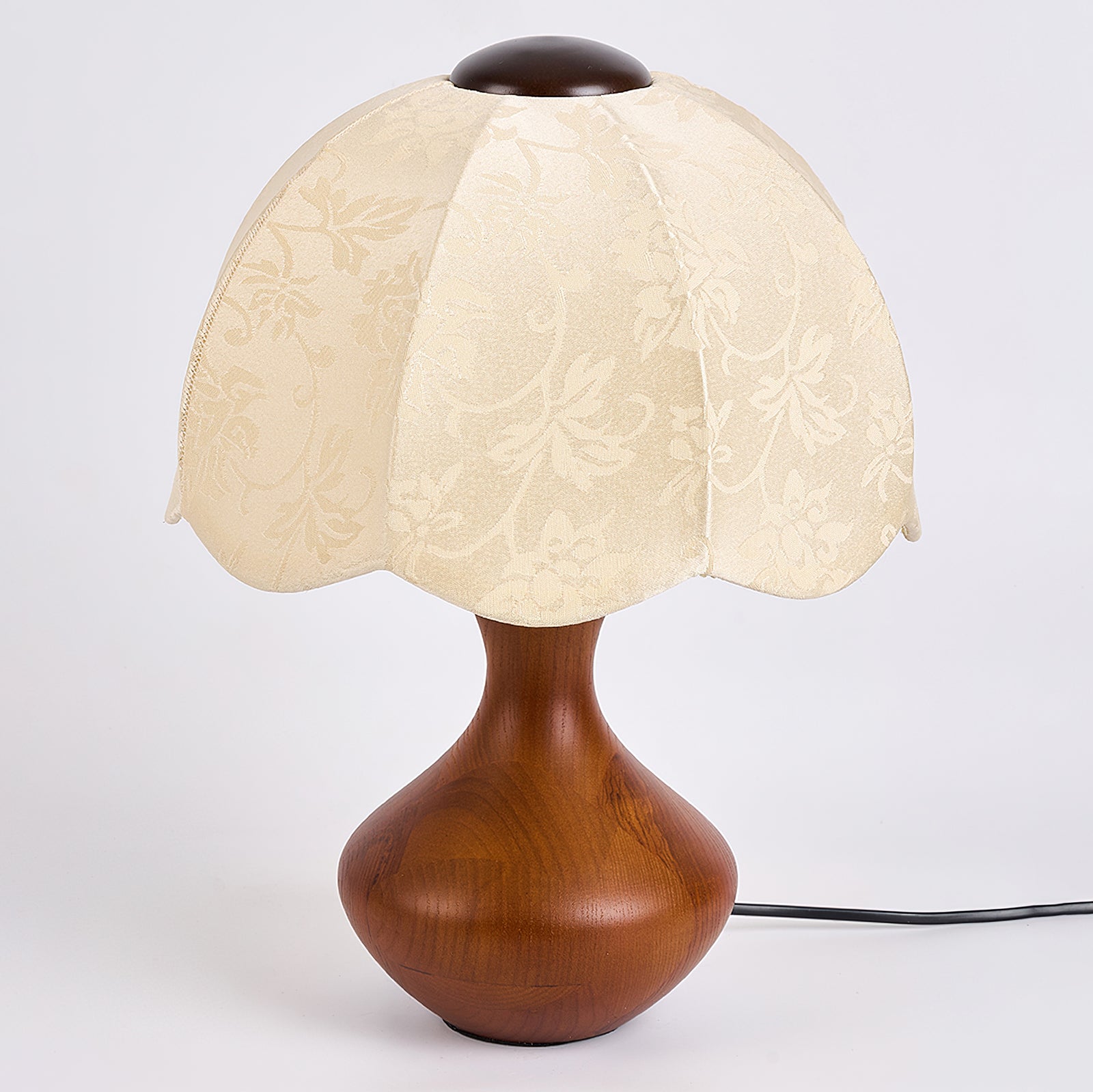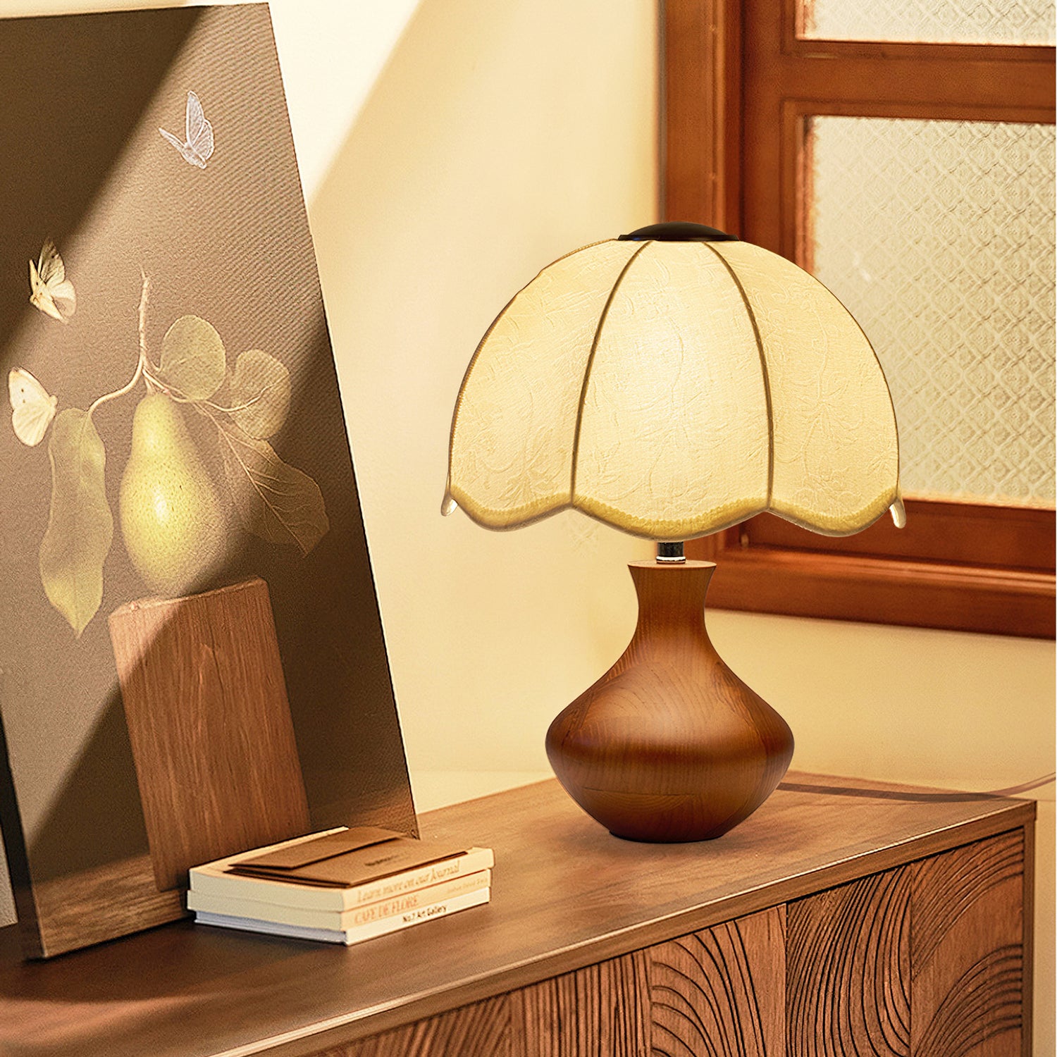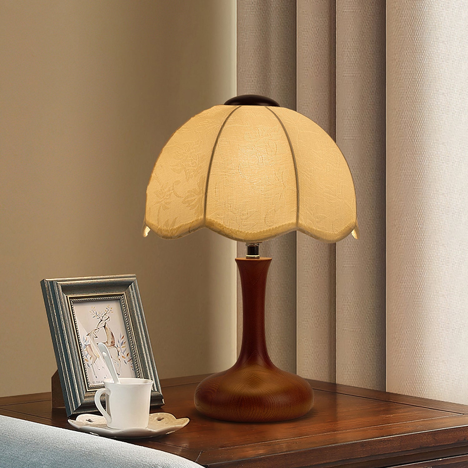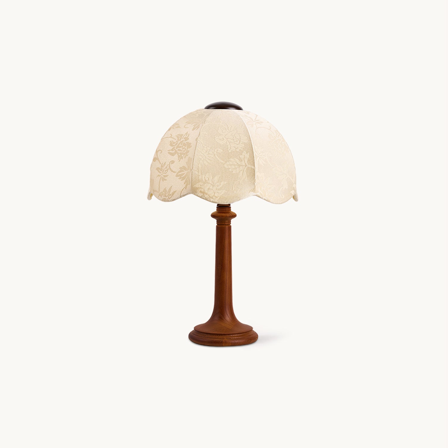 The Wagner Table Lamp from Mooijane blends retro charm with floral-inspired elegance. Its petal-shaped fabric shade features delicate relief patterns that create a layered, textured glow when lit. The smooth, bottle-shaped wooden base adds warmth and natural appeal, while internal metal reinforcement ensures lasting stability. Softly diffused and inviting, this lamp is perfect for bedrooms, studies, or vintage-style interiors—bringing a quiet sense of romance and refinement to any space.