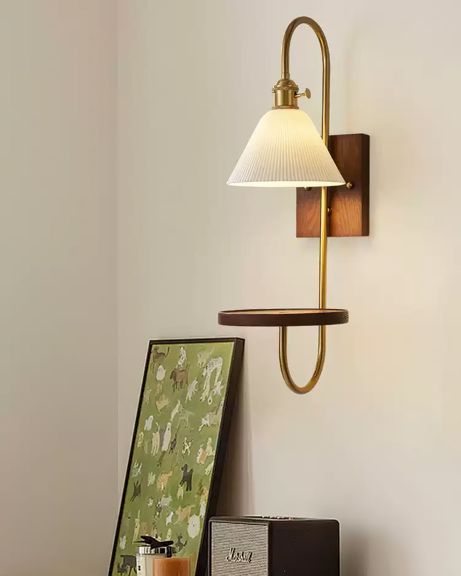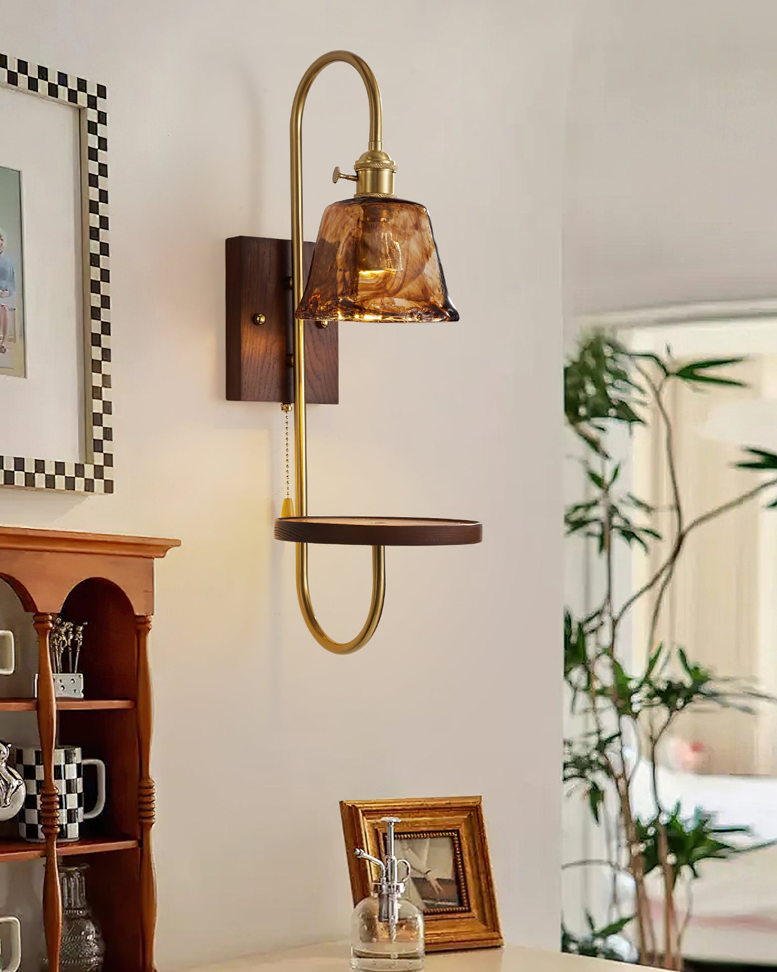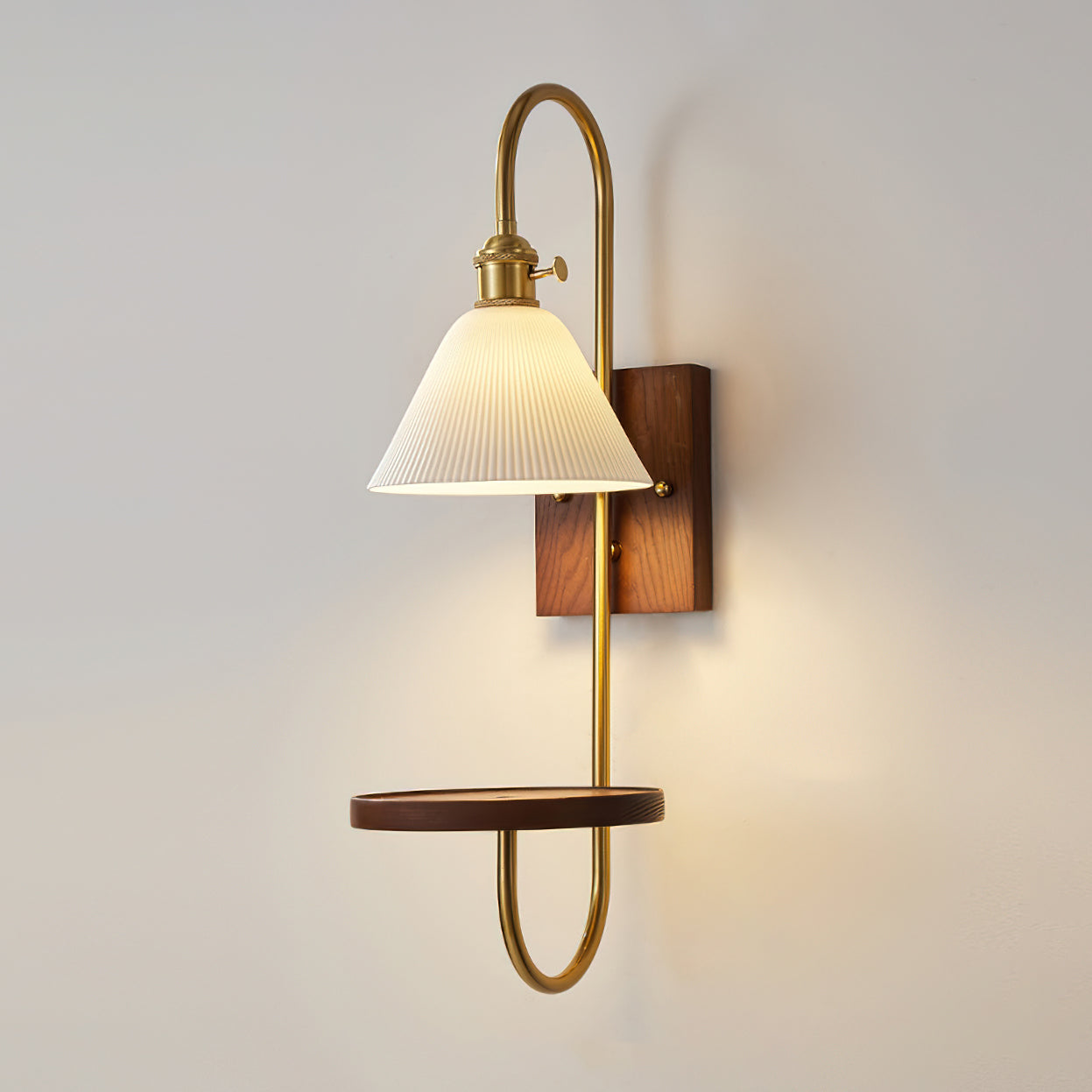 Walnut Shelf Wall Sconce