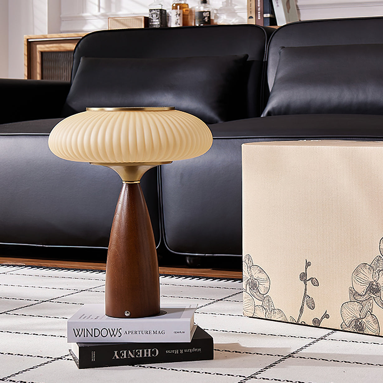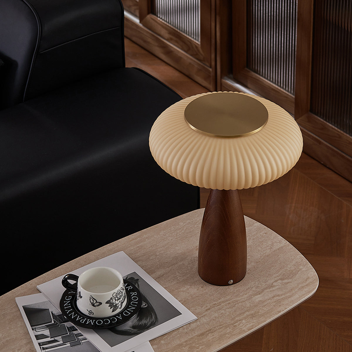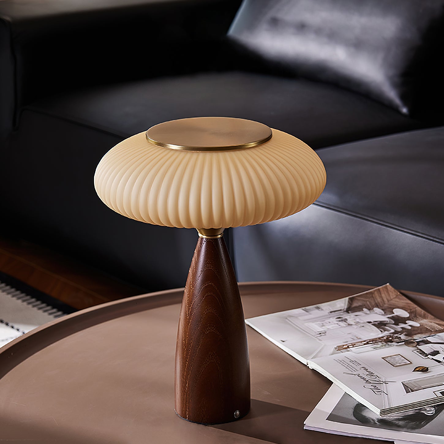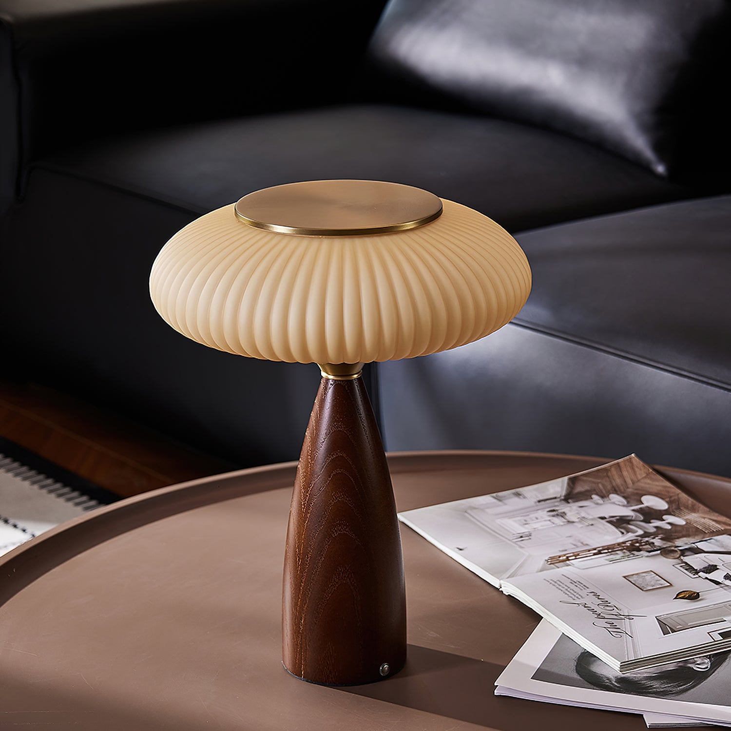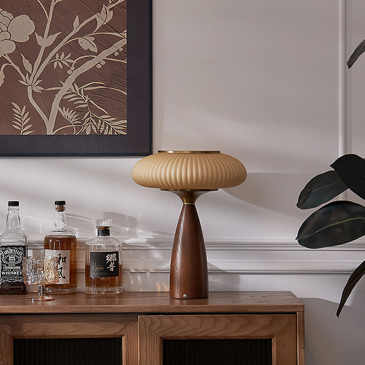 Introduce vintage charm into your space with the Welma Table Lamp from Mooijane. The pleated glass shade offers a cozy, diffused light, ideal for reading or relaxing. With a rich, grained wood and elegant gold detailing, this lamp adds a stylish touch to any room. Perfectly combining function with style, the Welma Table Lamp is a must-have for any modern space.