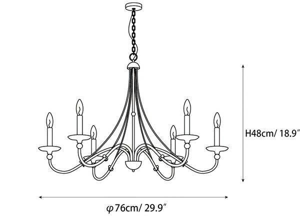 Size: 6 head Dia 76cm x H 48cm / ∅ 29.9″ x H 18.9 ″