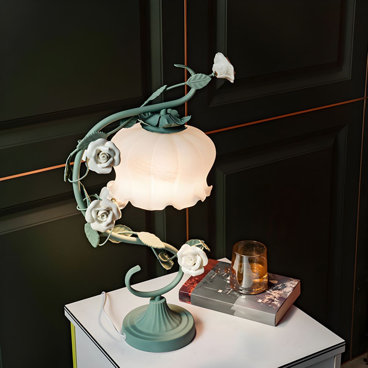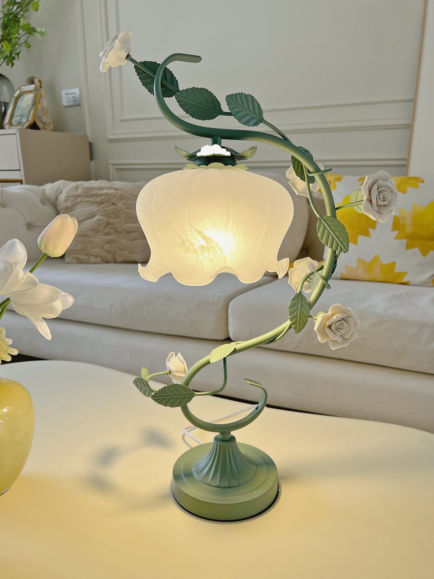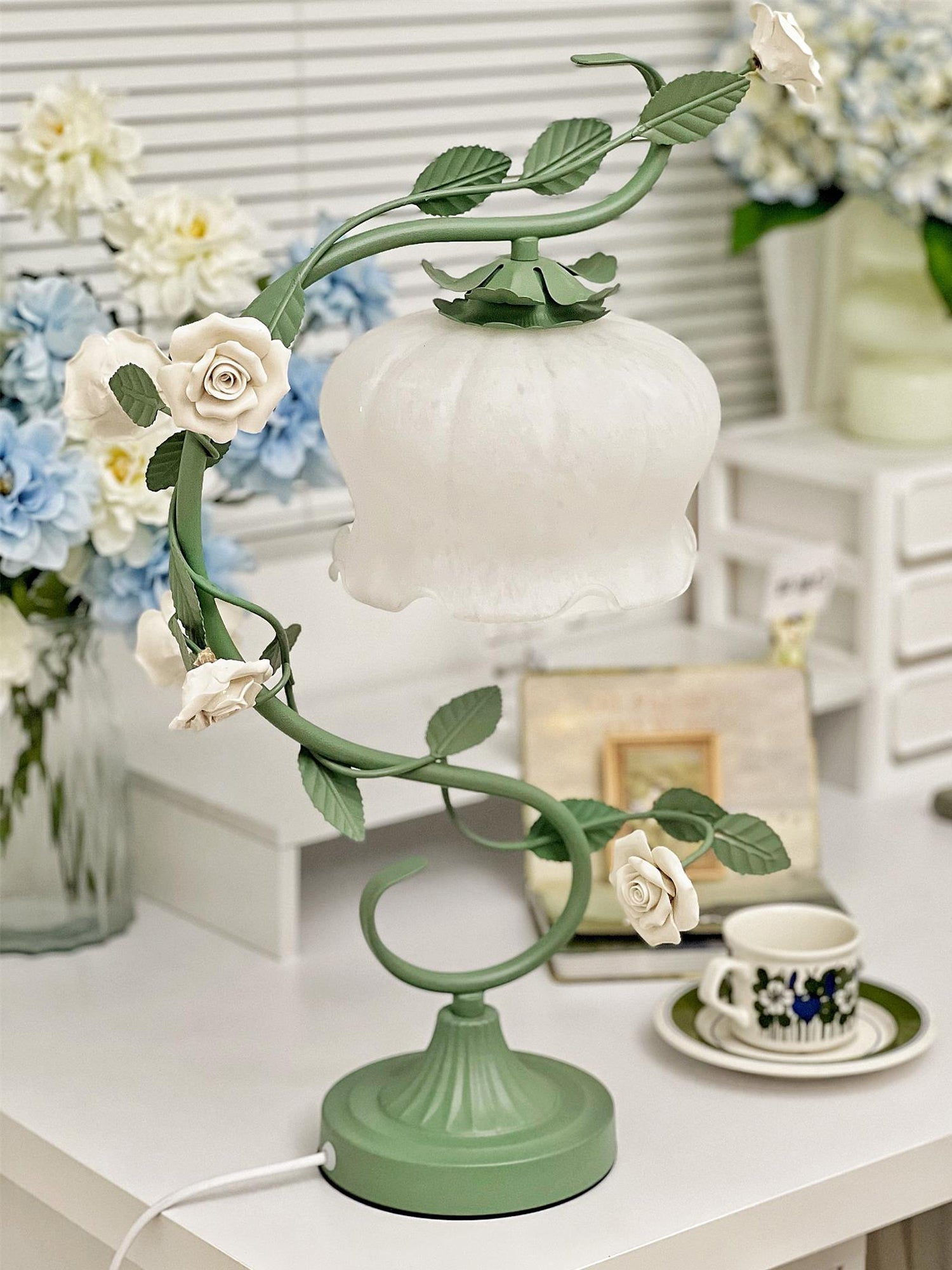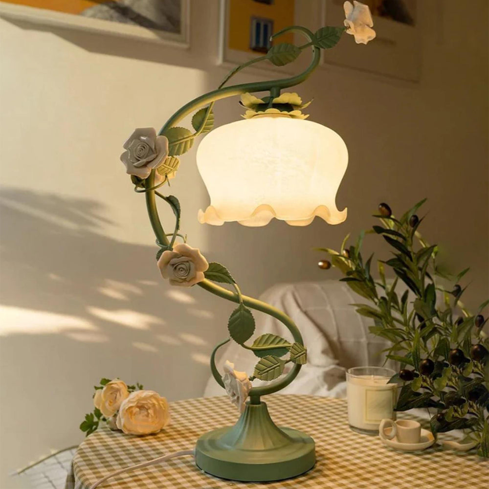 White Rose Iron Table Lamp