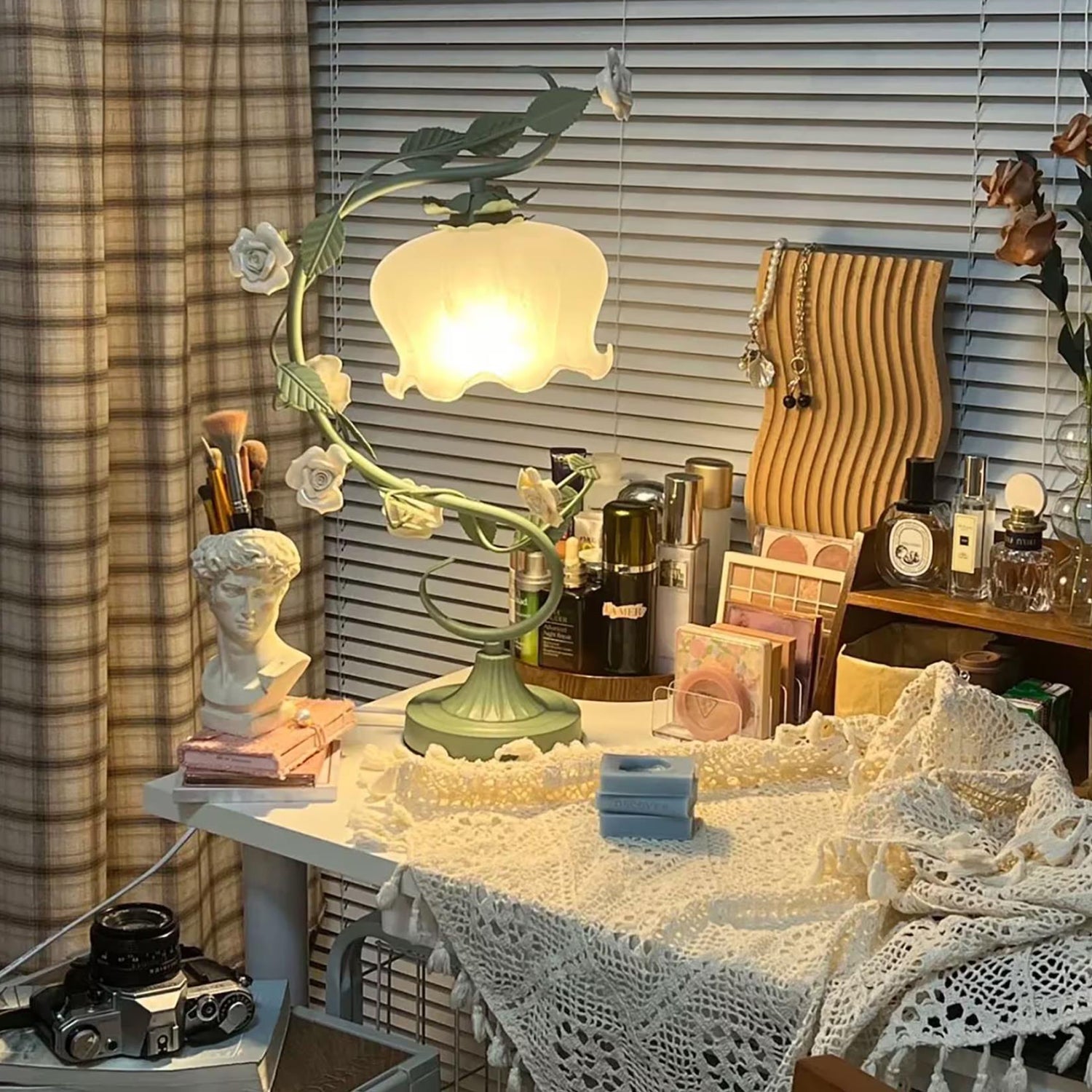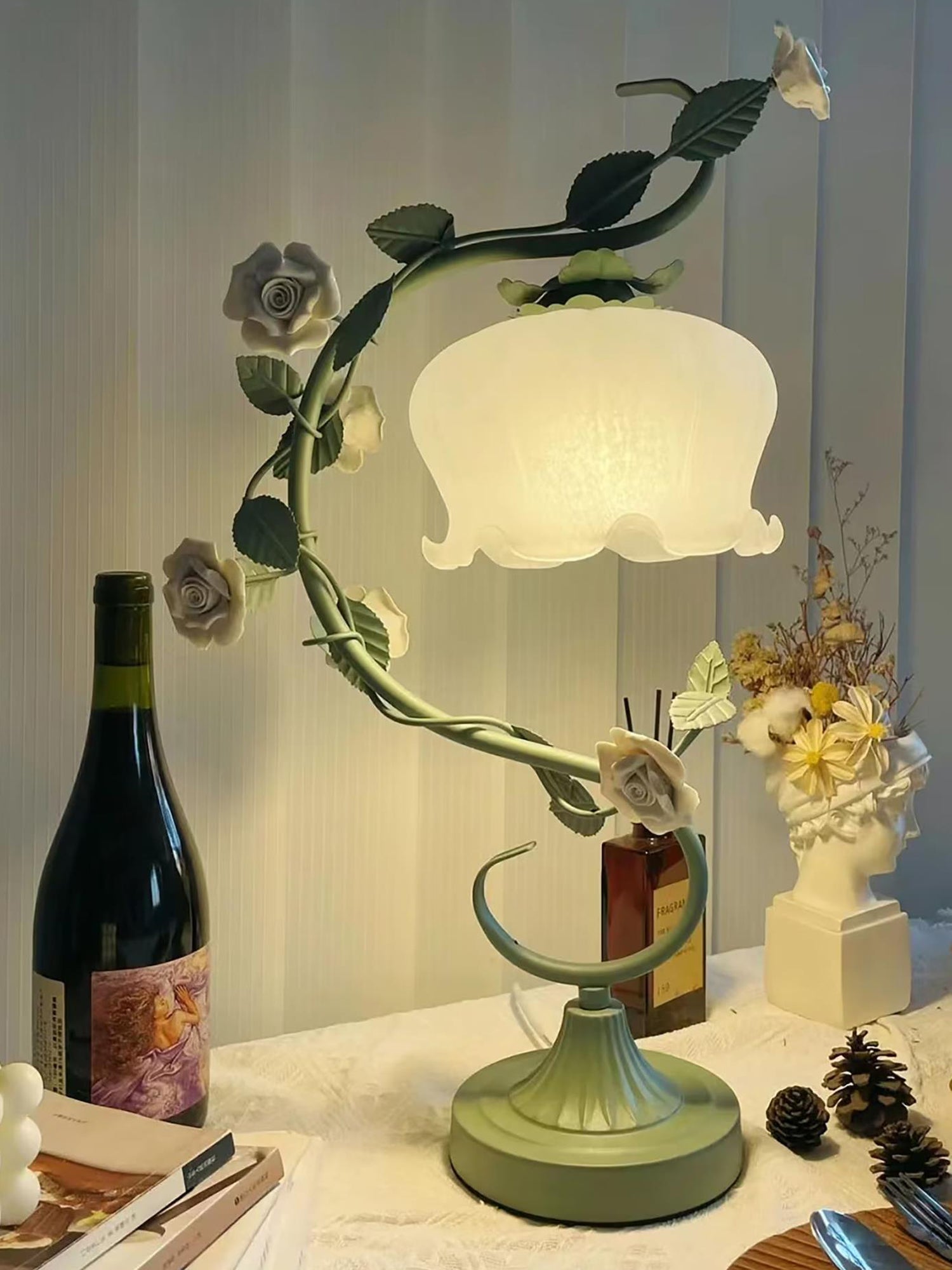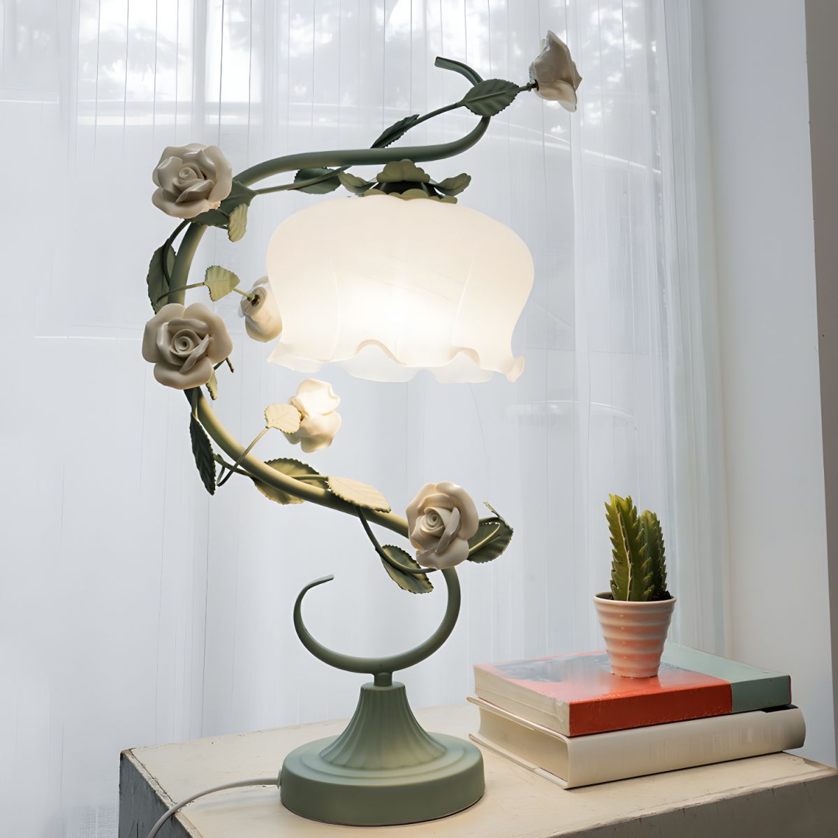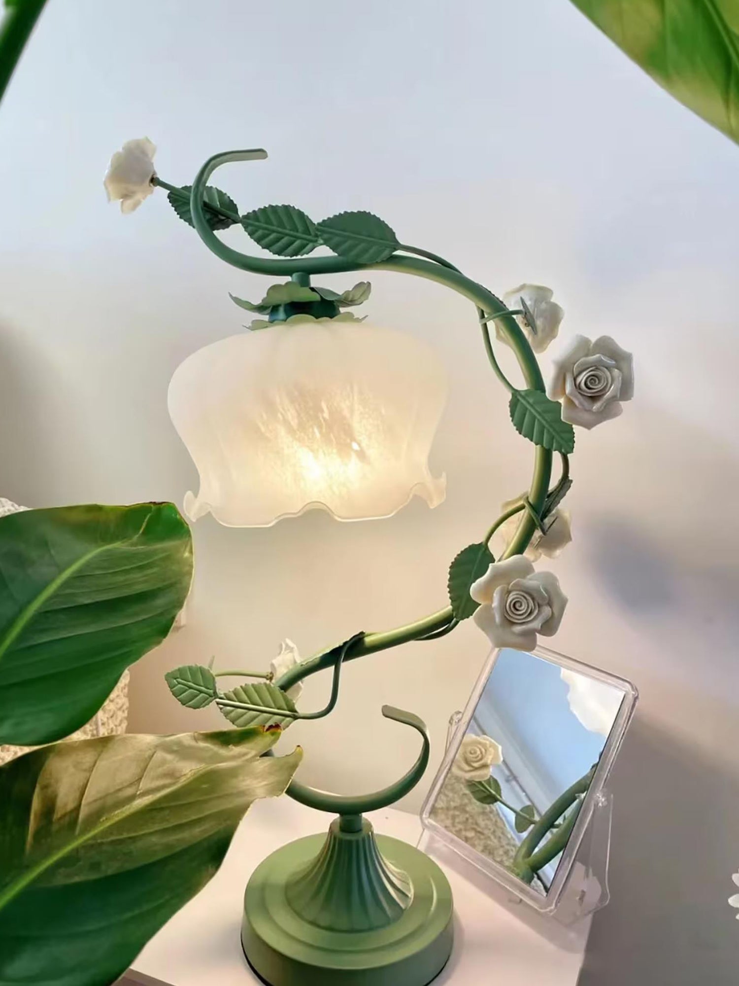 White Rose Iron Table Lamp
