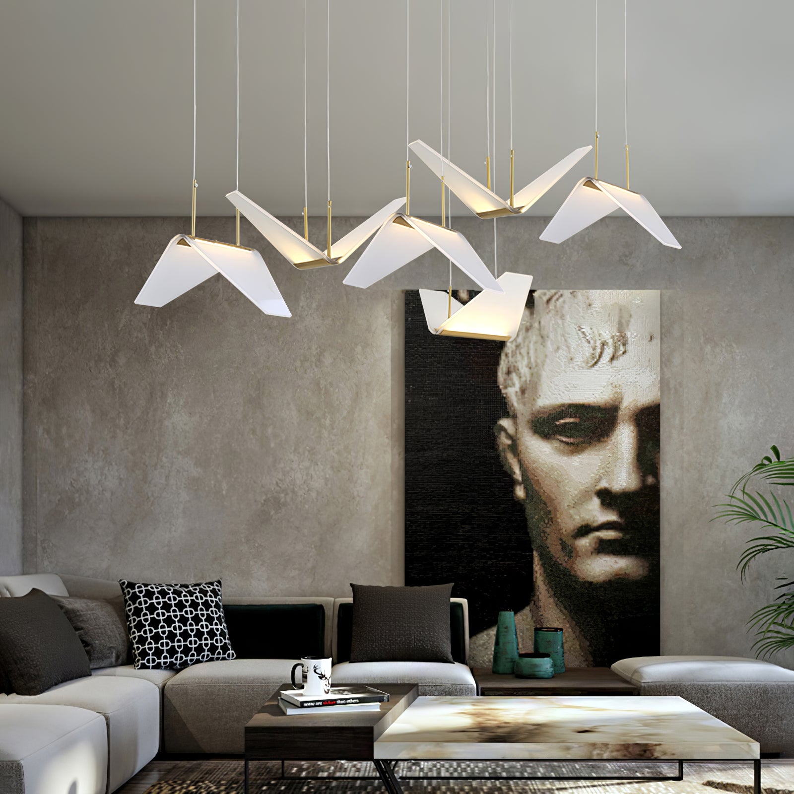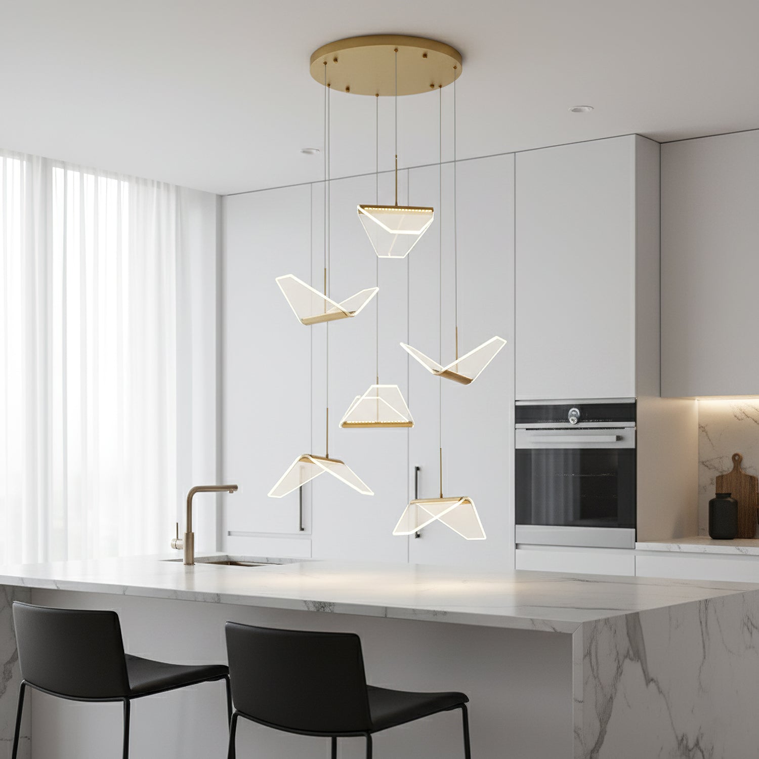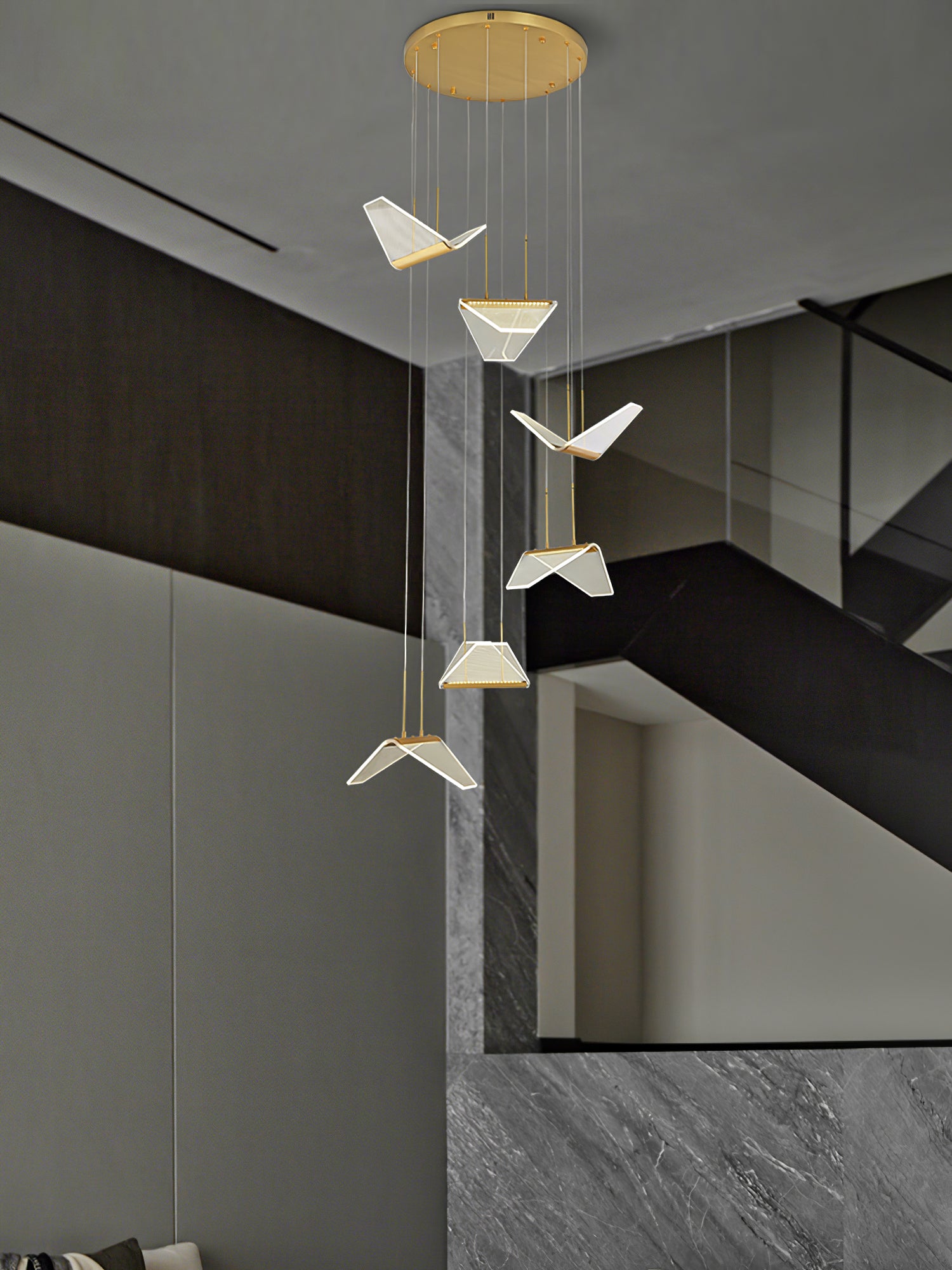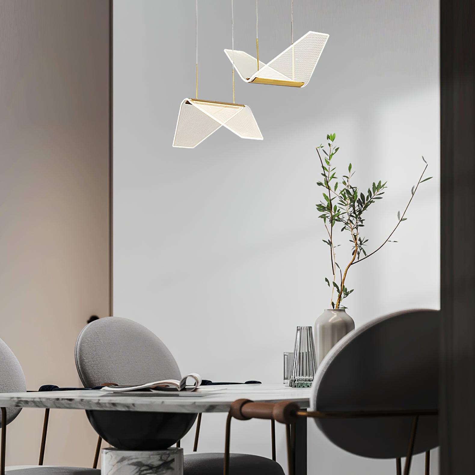 Post-modern shape creative Wing Pendant Lamp, like the wings of seagulls flying, acrylic high light-transmitting lampshade, LED light source, integrating modern aesthetic elements and artist costumes into the lighting, elegant and atmospheric, simple but not low in shape, smart and elegant, It seems to be flying at any moment.