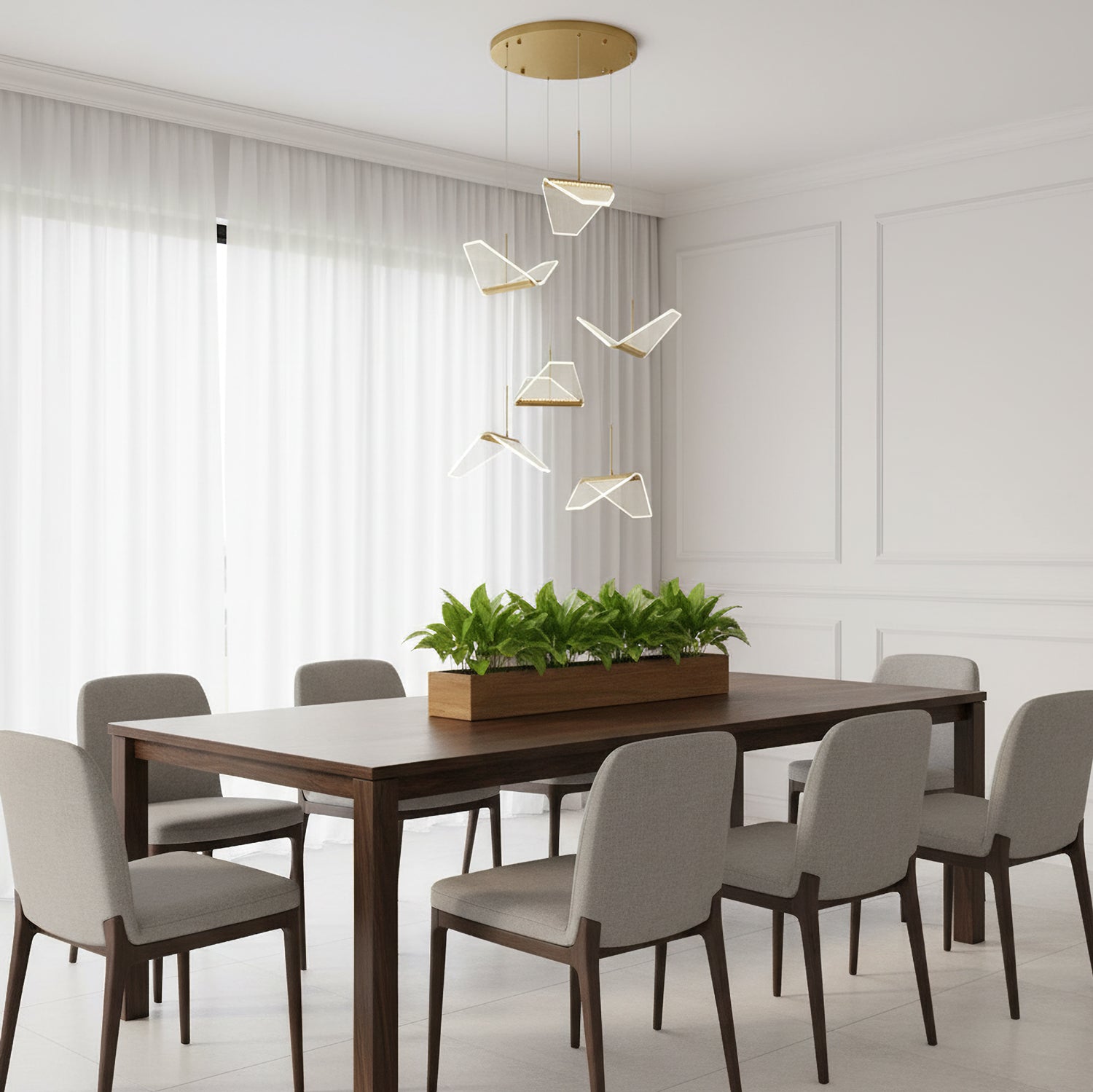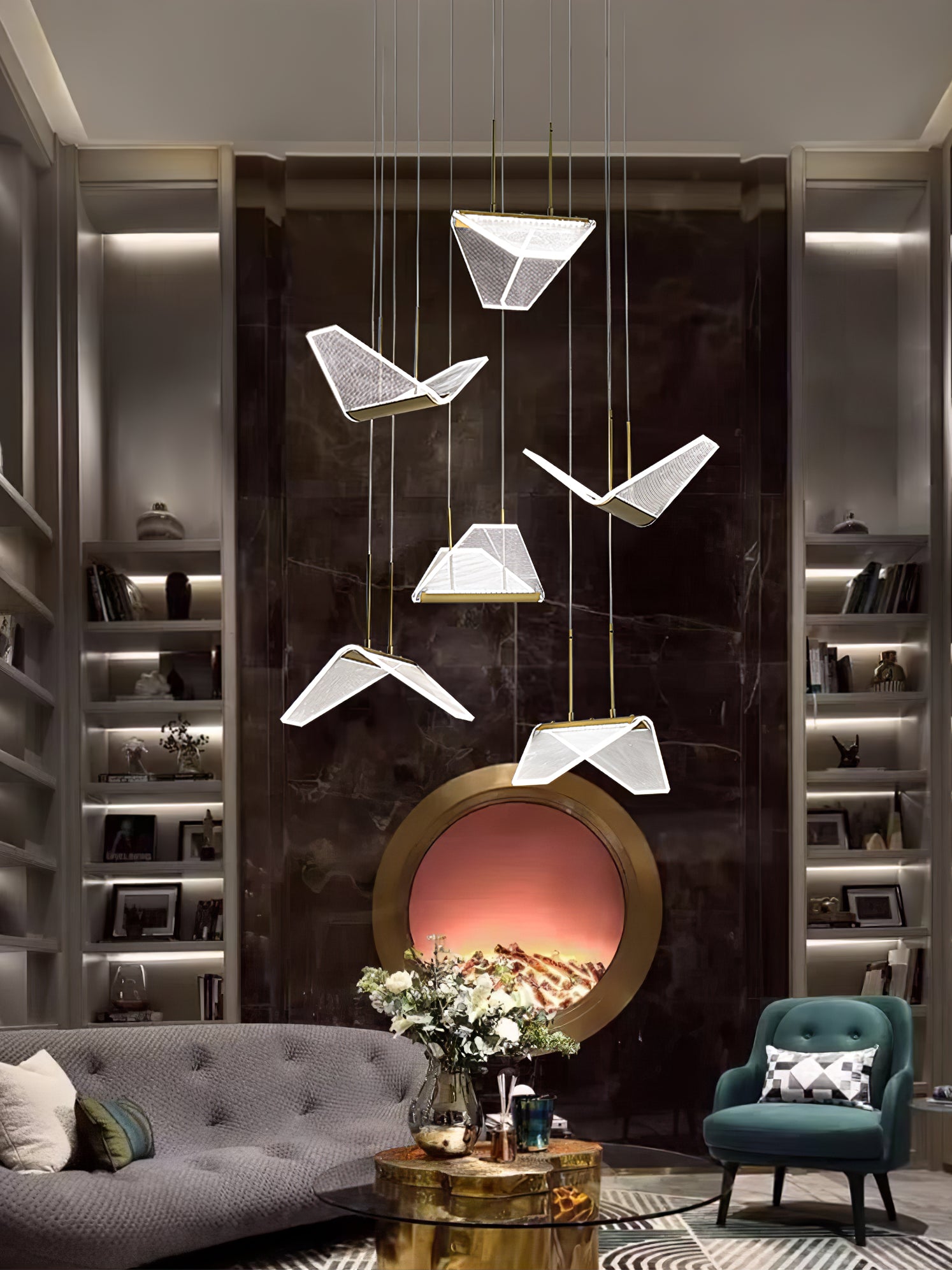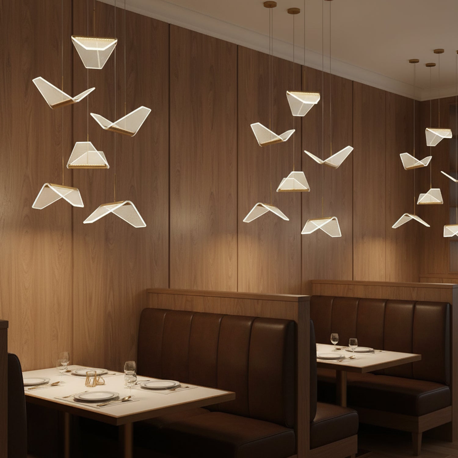 Post-modern shape creative Wing Pendant Lamp, like the wings of seagulls flying, acrylic high light-transmitting lampshade, LED light source, integrating modern aesthetic elements and artist costumes into the lighting, elegant and atmospheric, simple but not low in shape, smart and elegant, It seems to be flying at any moment.