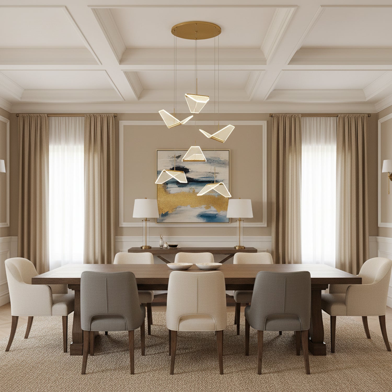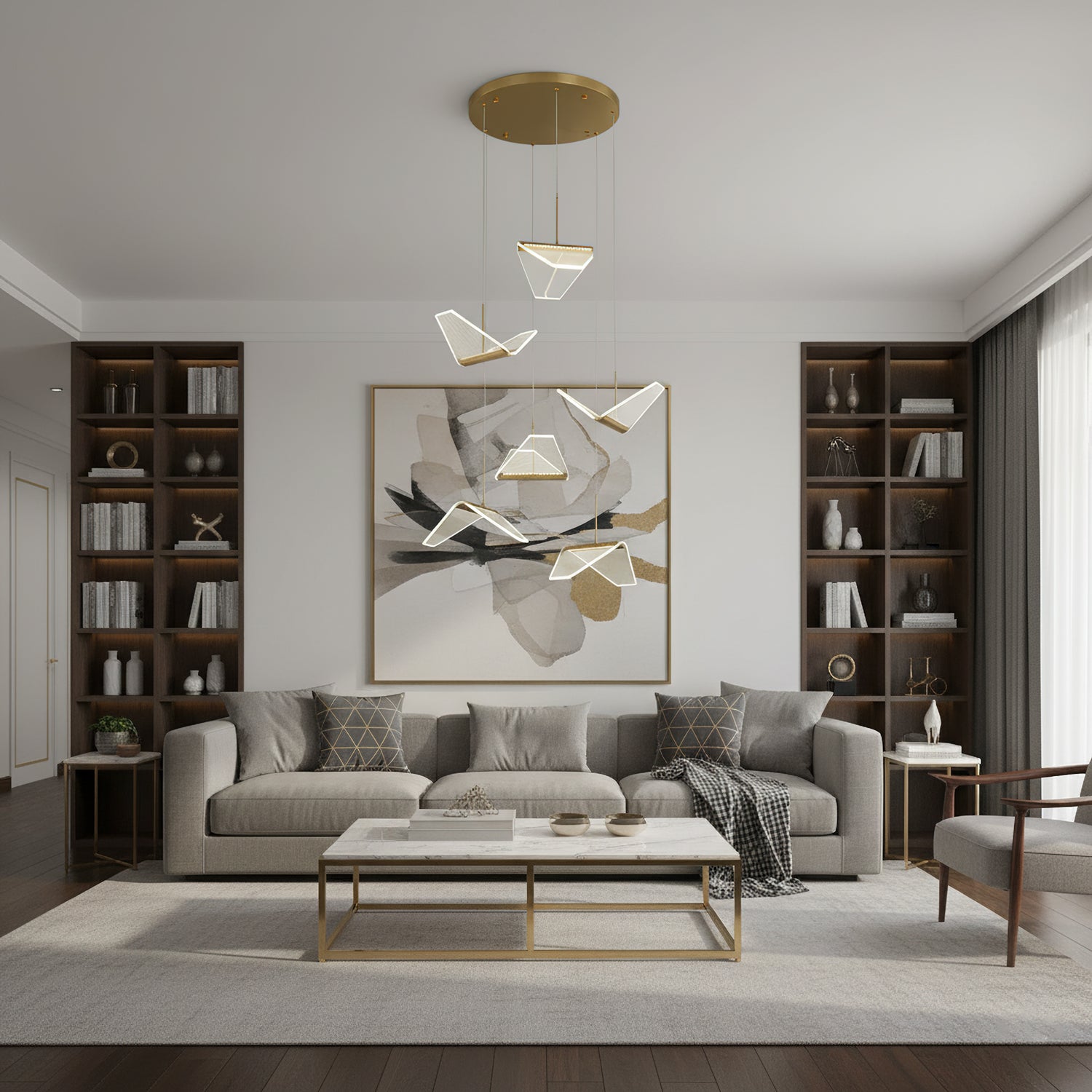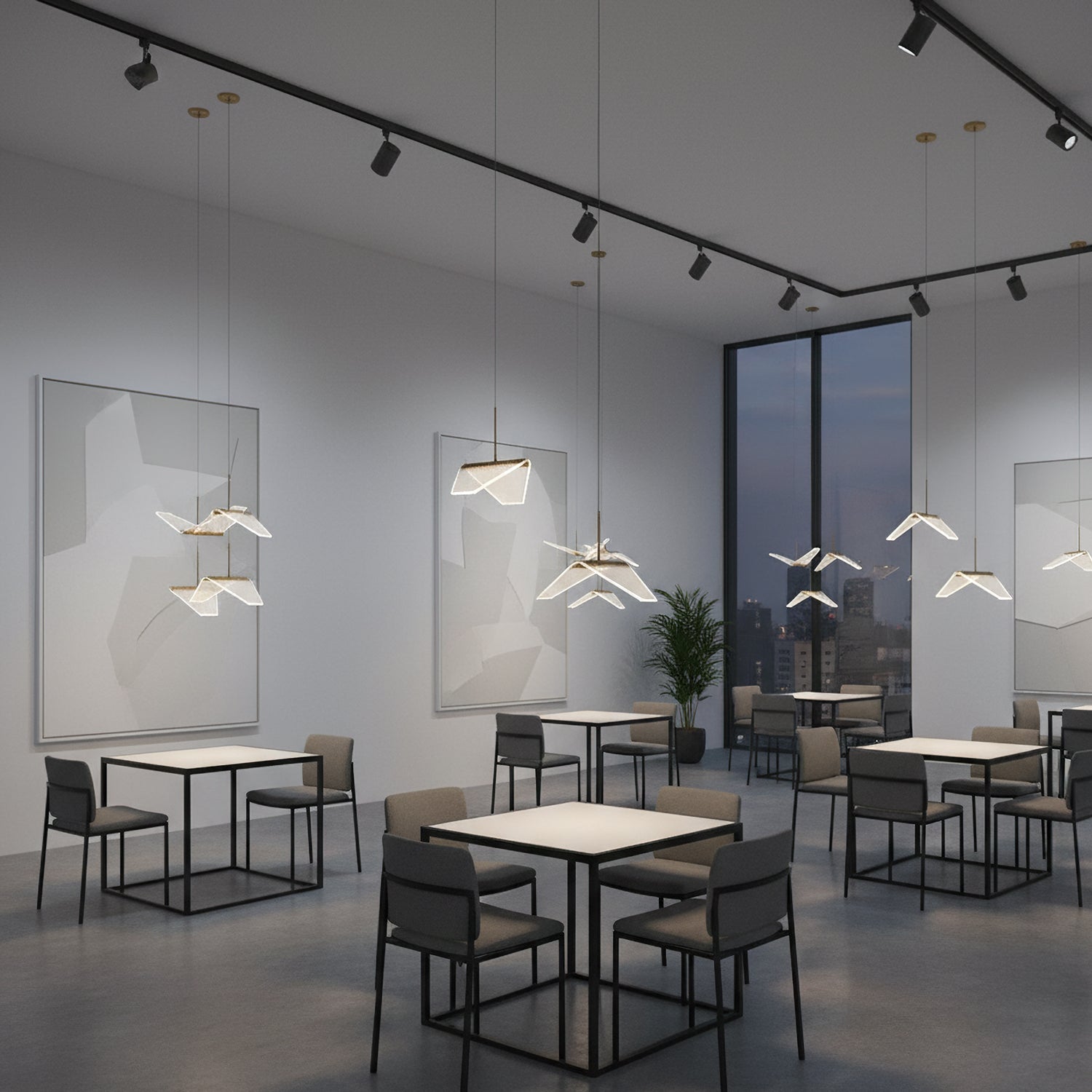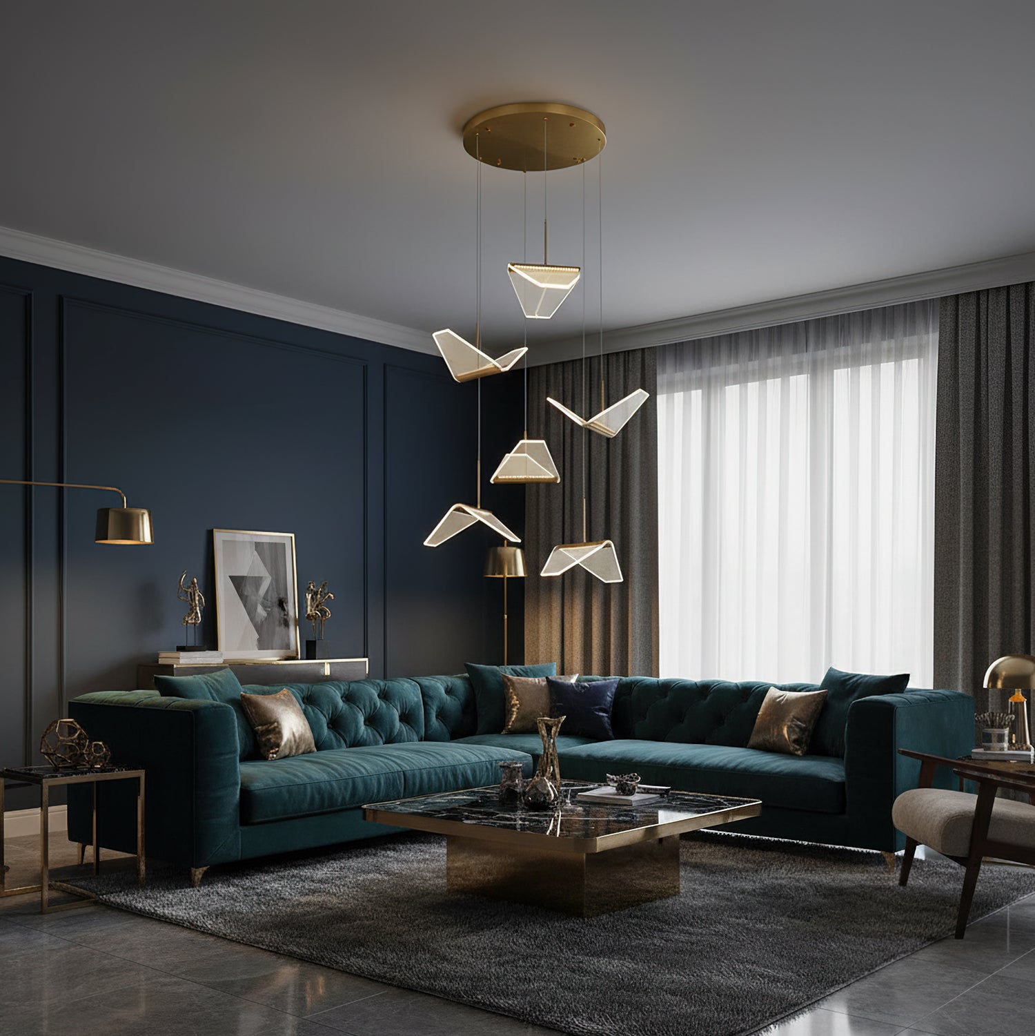 Post-modern shape creative Wing Pendant Lamp, like the wings of seagulls flying, acrylic high light-transmitting lampshade, LED light source, integrating modern aesthetic elements and artist costumes into the lighting, elegant and atmospheric, simple but not low in shape, smart and elegant, It seems to be flying at any moment.