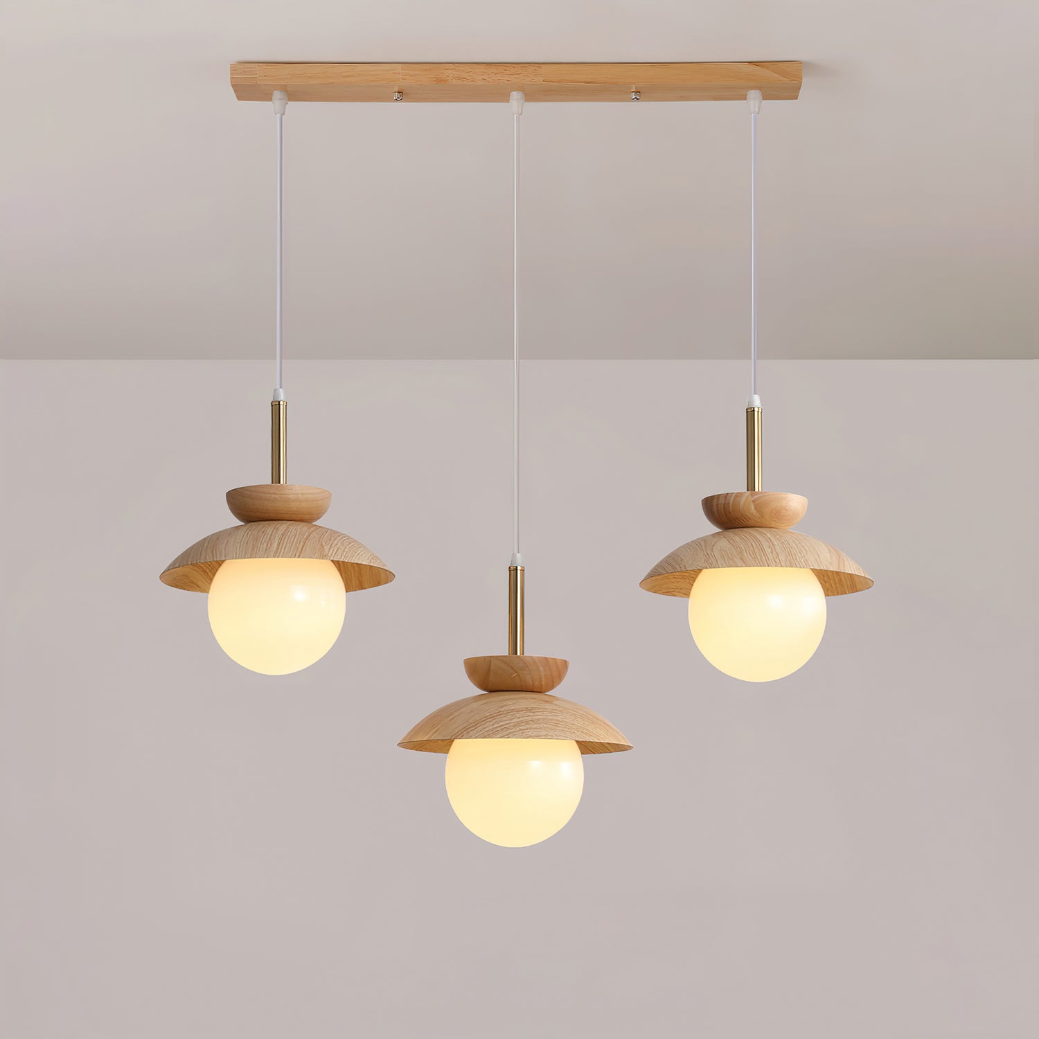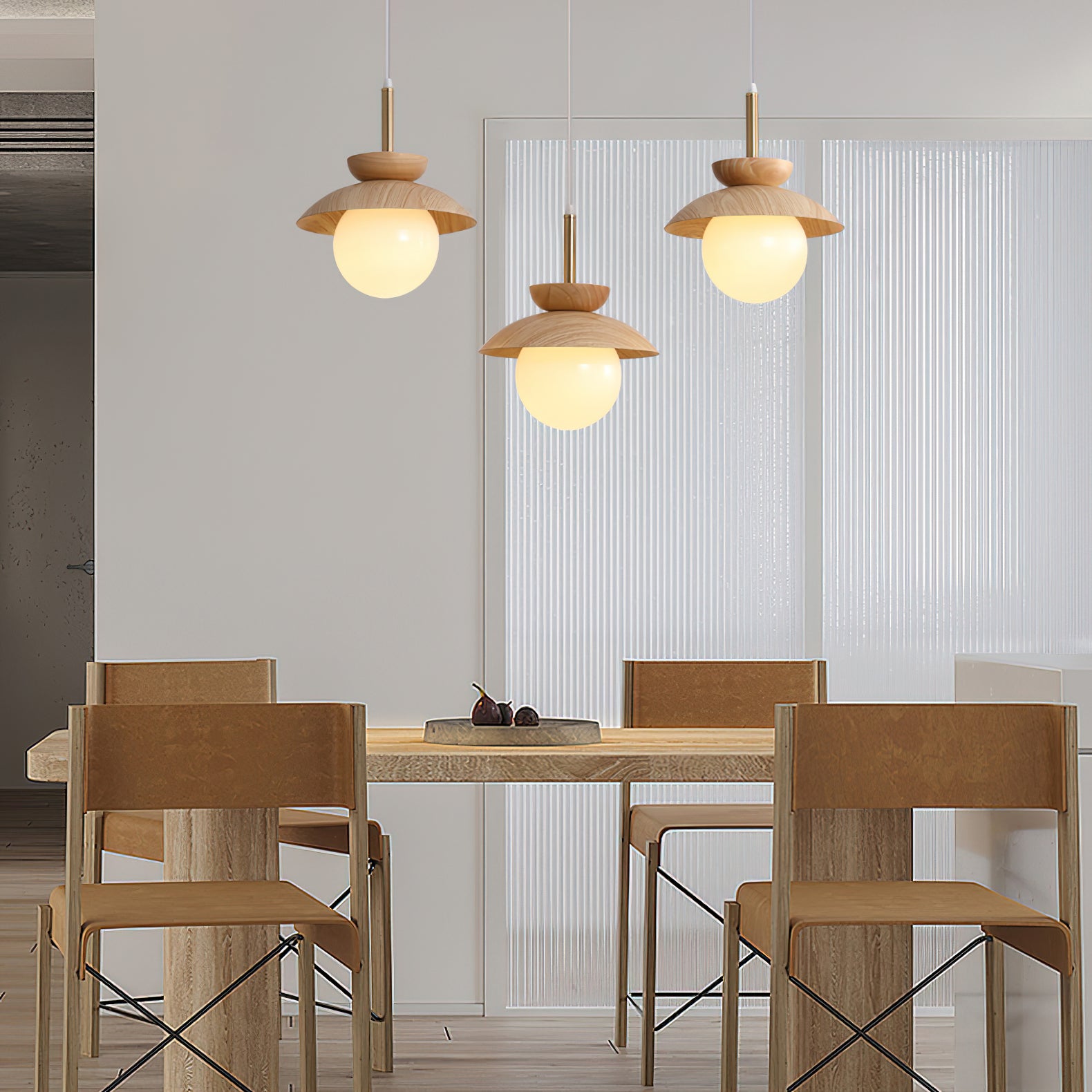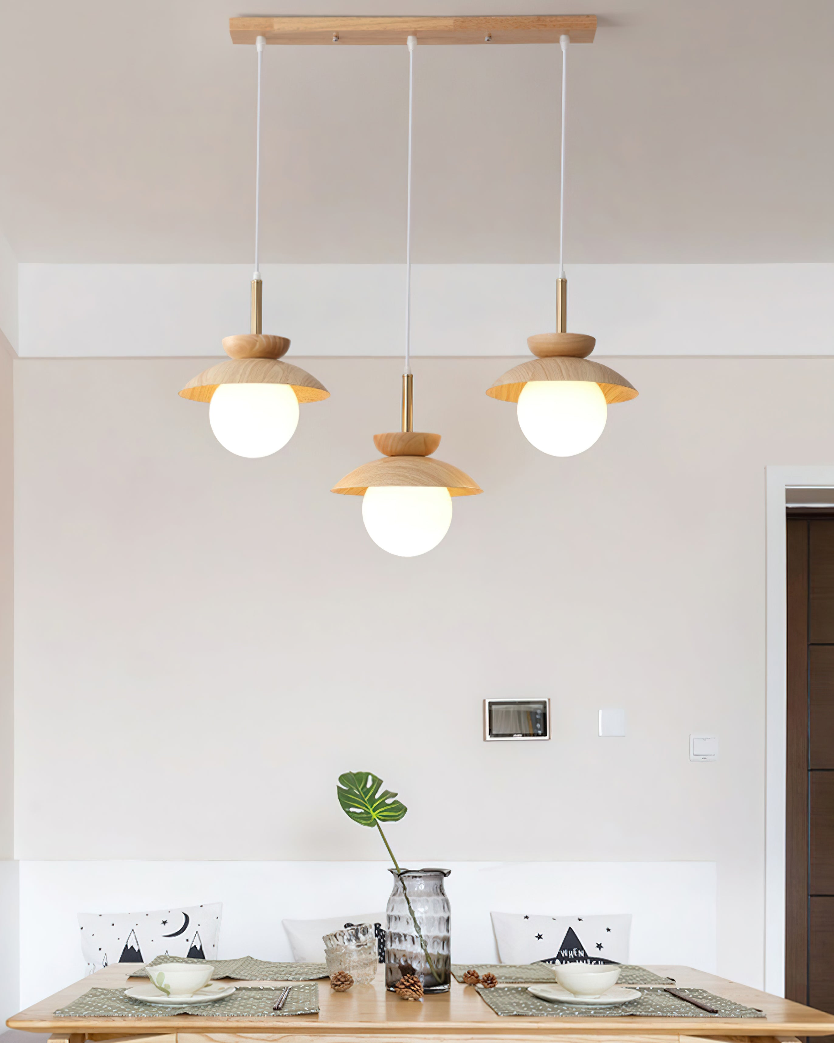 This luxury Wood Fruit Pendant Lamp elegantly enhances the atmosphere of your home with its romantic artistic flavor. Crafted from natural rubber wood and iron with a glass cover, this stylish lamp brings out your refined taste and style. Featuring a wood grain decoration, it radiates warmth and adds a touch of simplistic sophistication to any interior. Let this exclusive lamp inspire you to pursue a simpler and more exquisite life.