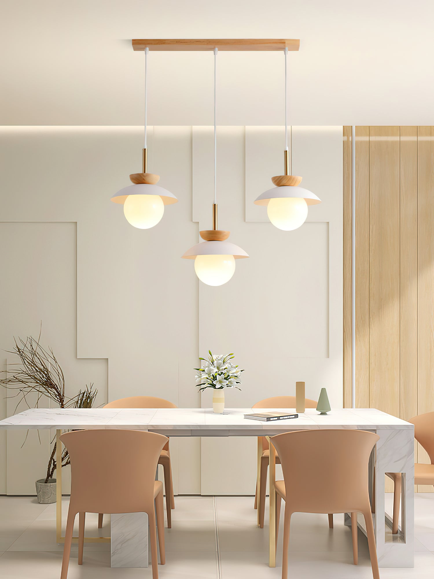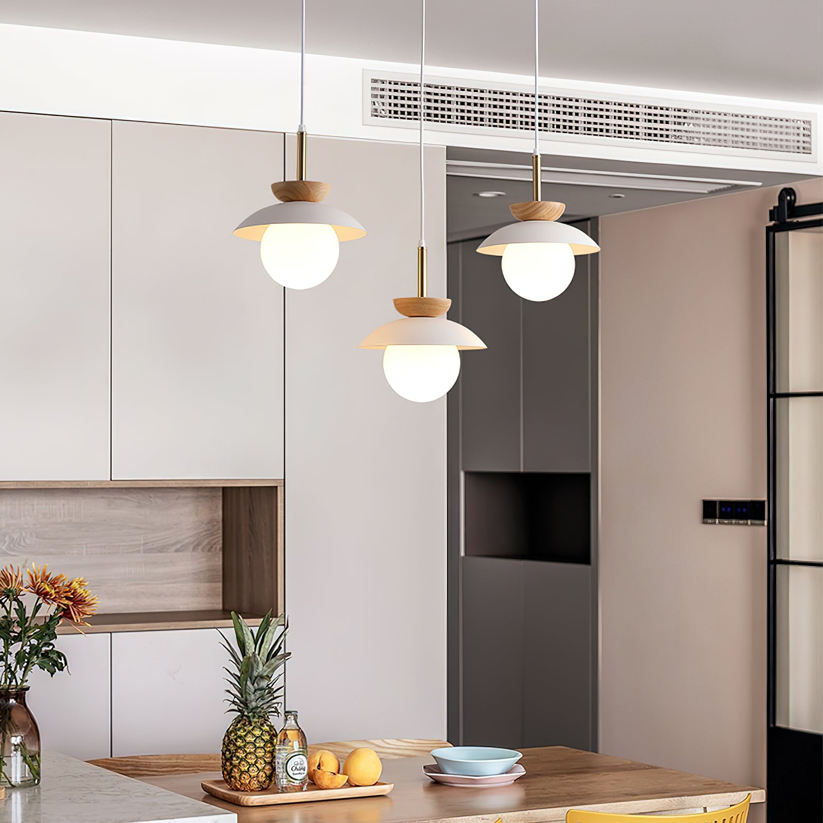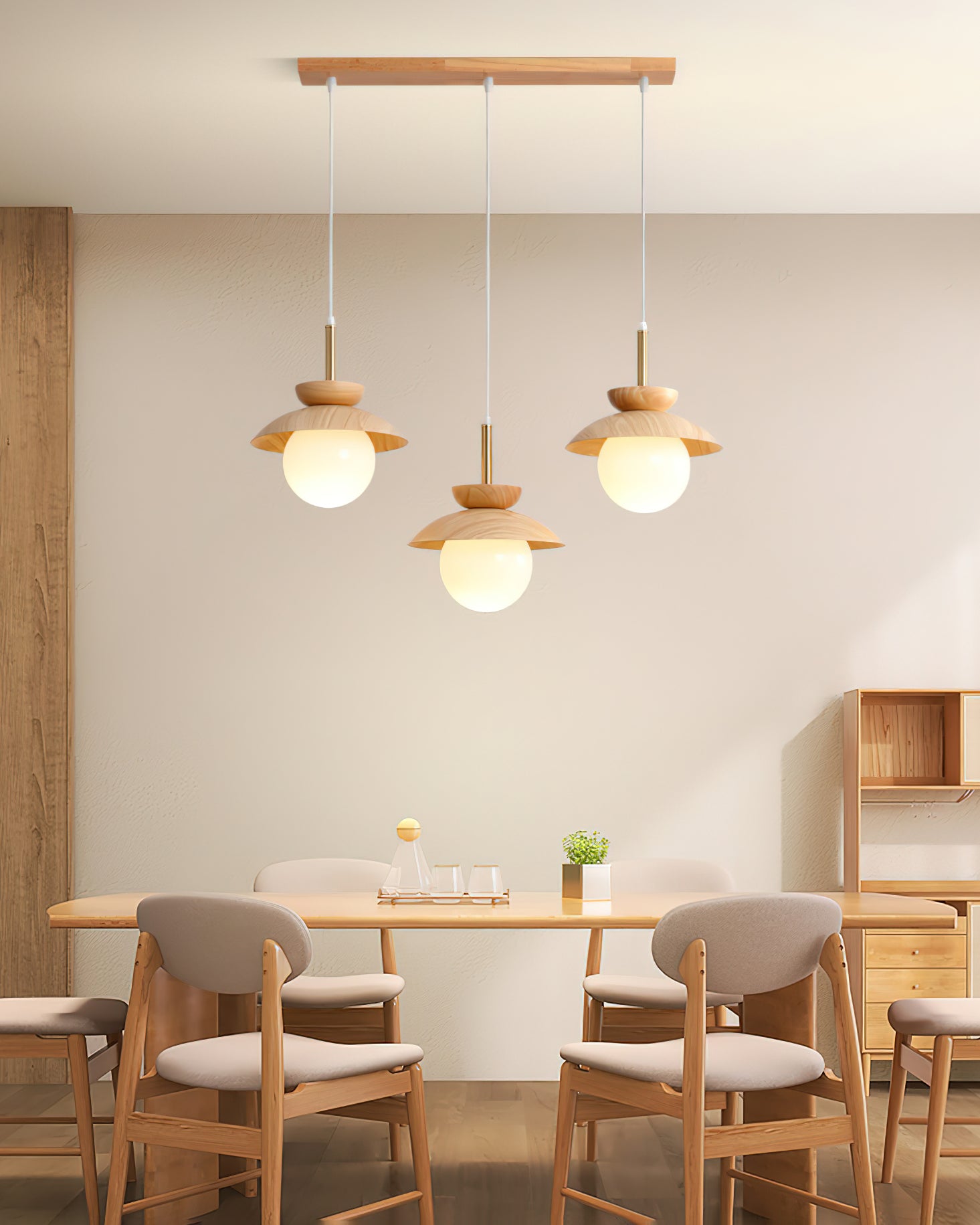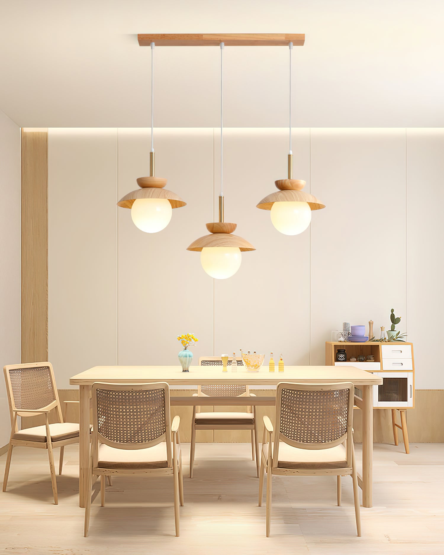 This luxury Wood Fruit Pendant Lamp elegantly enhances the atmosphere of your home with its romantic artistic flavor. Crafted from natural rubber wood and iron with a glass cover, this stylish lamp brings out your refined taste and style. Featuring a wood grain decoration, it radiates warmth and adds a touch of simplistic sophistication to any interior. Let this exclusive lamp inspire you to pursue a simpler and more exquisite life.
