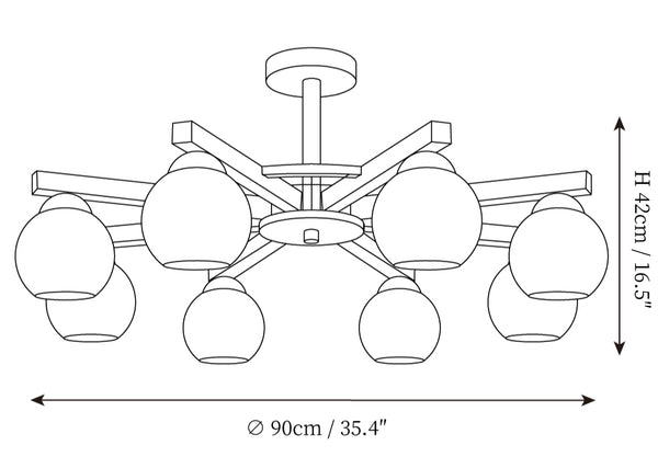 - 6Heads Size: Dia 80cm x H 42cm / ∅ 31.5″ x H 16.5″